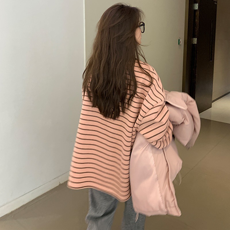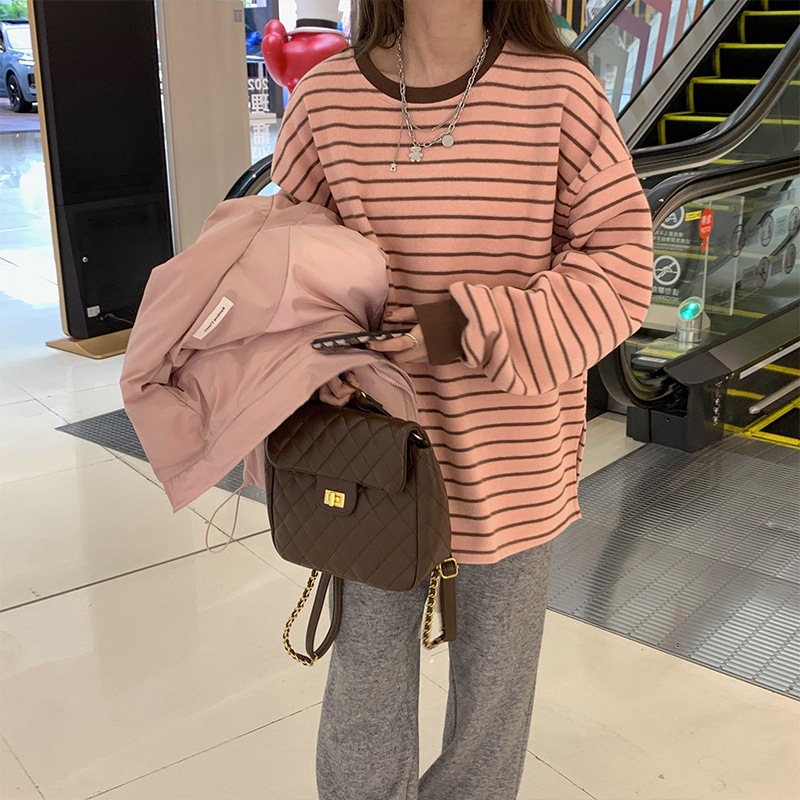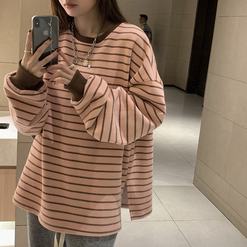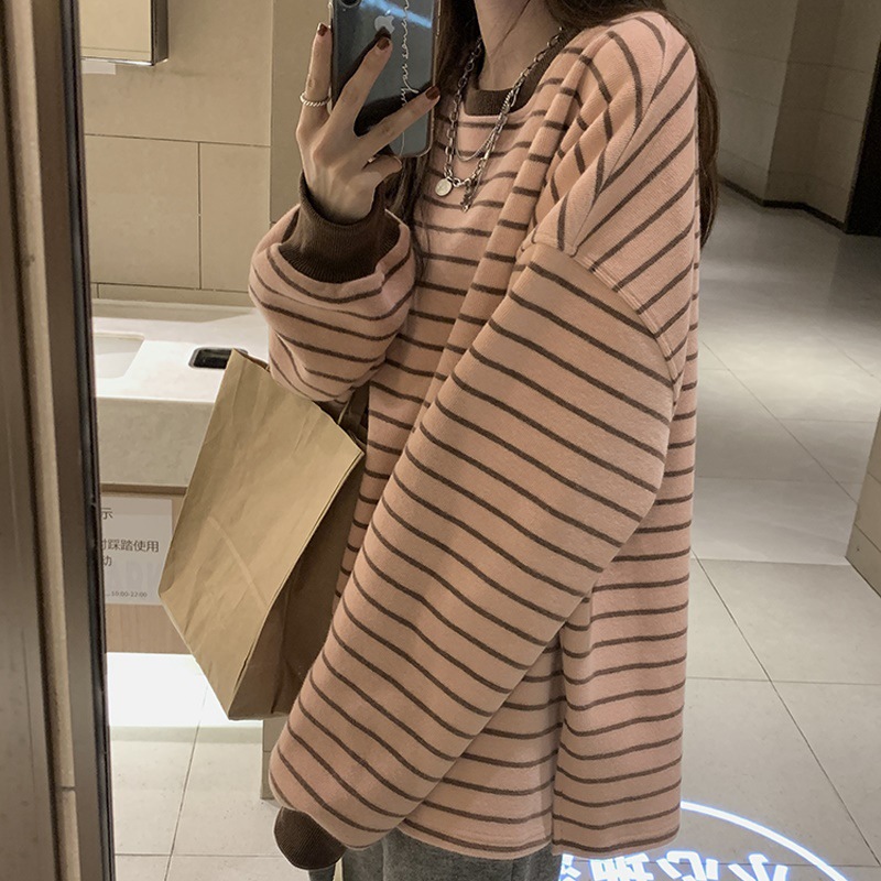 春秋季【休闲风套头 圆领长袖卫衣女款】韩版撞色条纹 宽松女装上衣