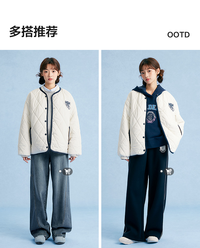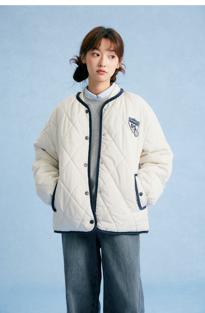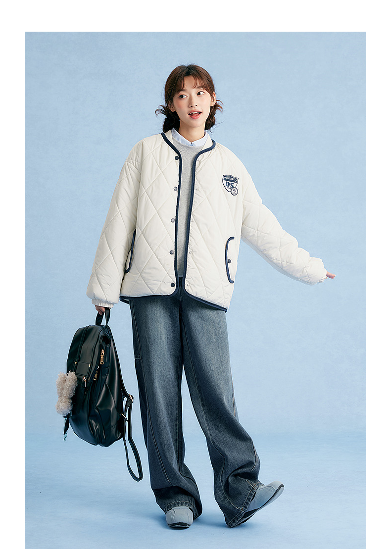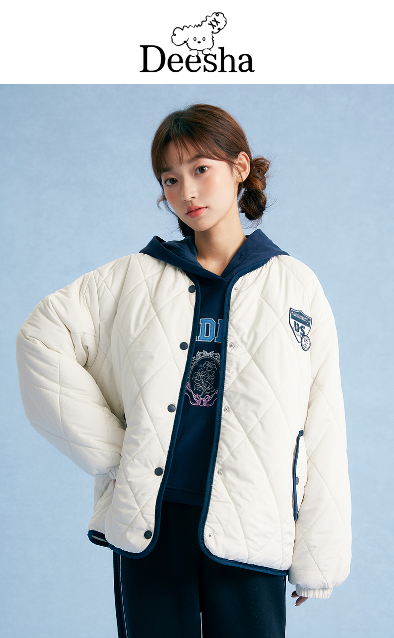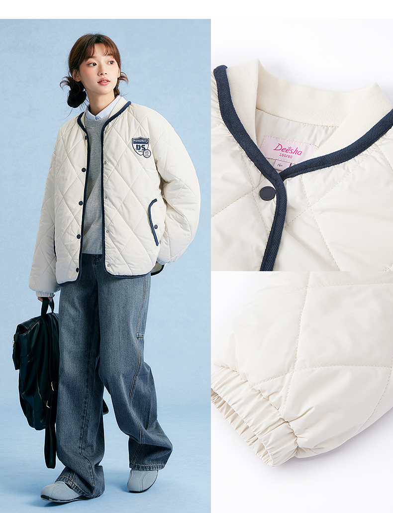 笛莎Deesha青少年女童外套2025秋季女童绗棉棒球领外套