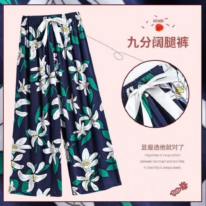 (49.9元两条秒杀,设满减拍2立减,超高性价比!)棉绸睡裤女2025夏季新款可外穿人造棉九分阔腿家居裤花长裤子