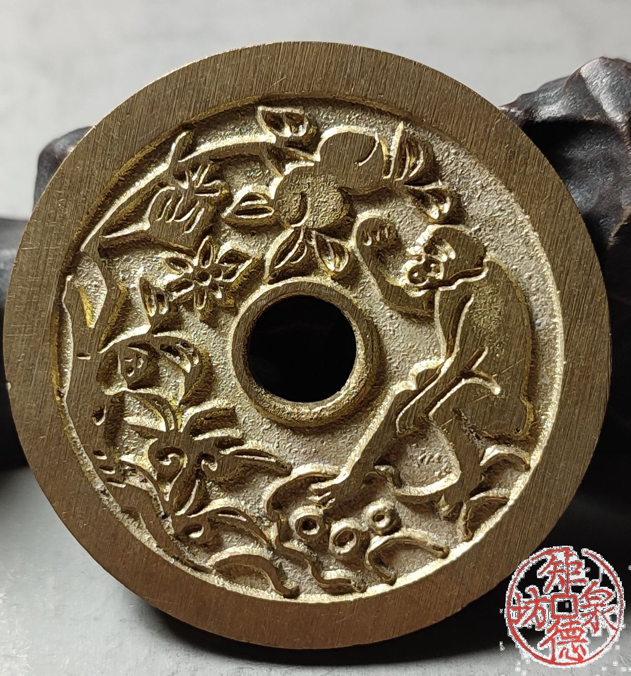 古法文创铸币 和合如意福寿双全背封猴图 文房铜镇 HYJ29