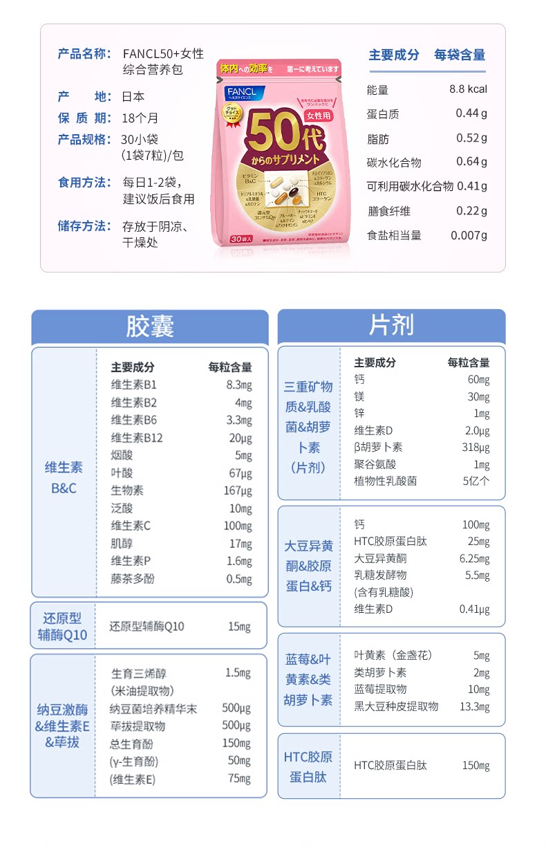 FANCL 50+女性综合营养包30袋/包 (效期27-7) A-3925