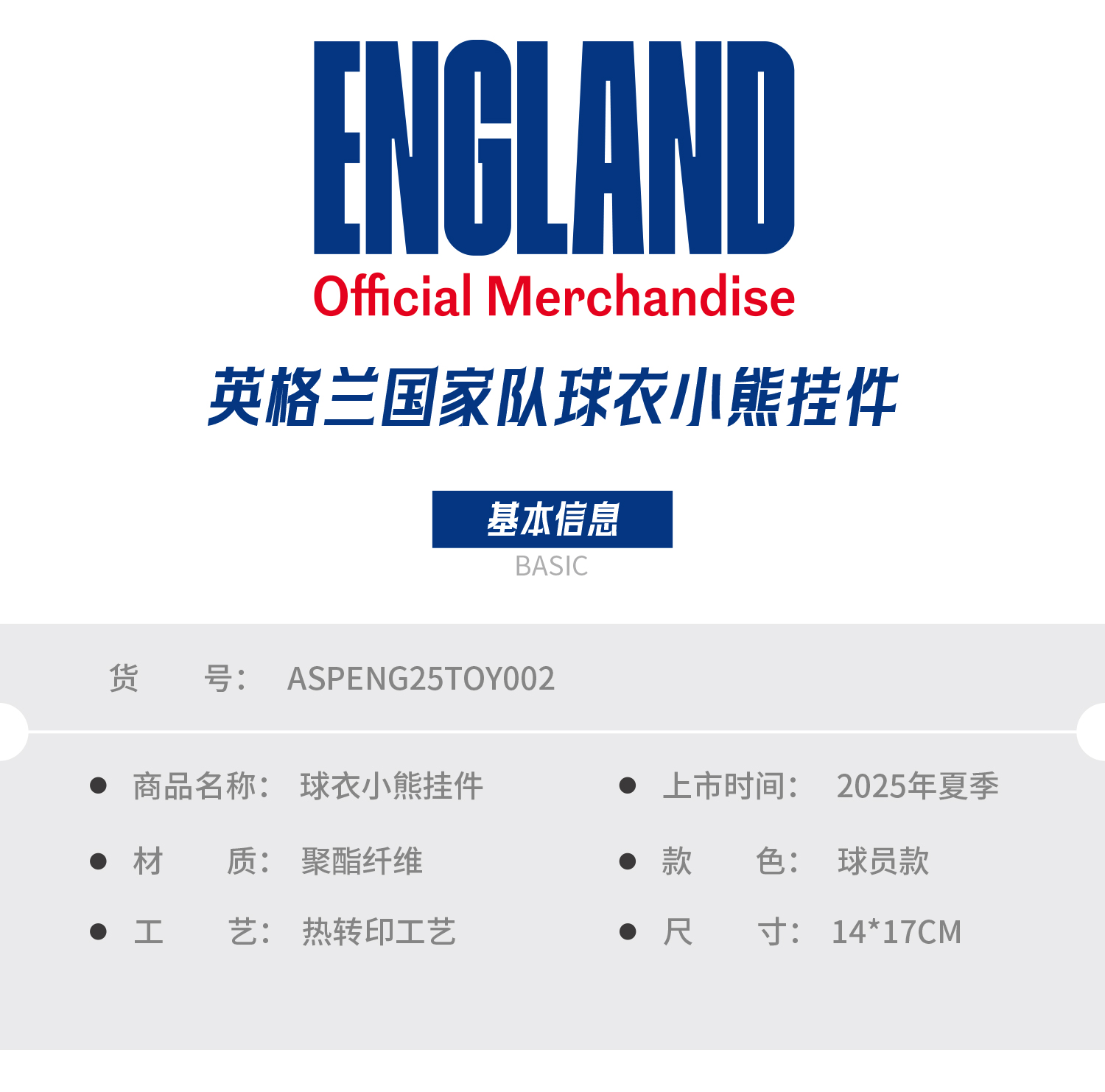 【官方正版】英格兰国 家队 | 毛绒小熊钥匙扣可爱挂件球迷周边