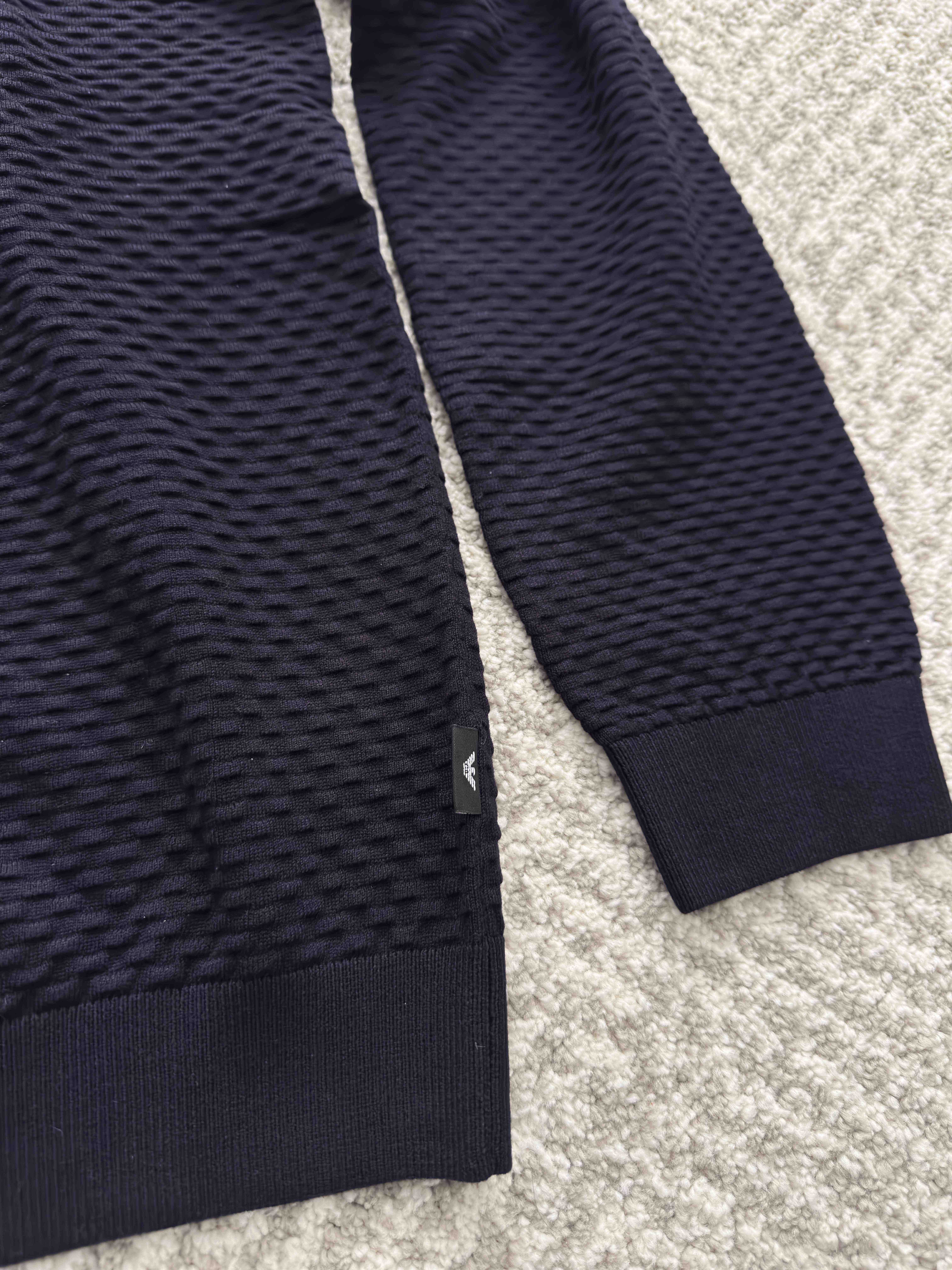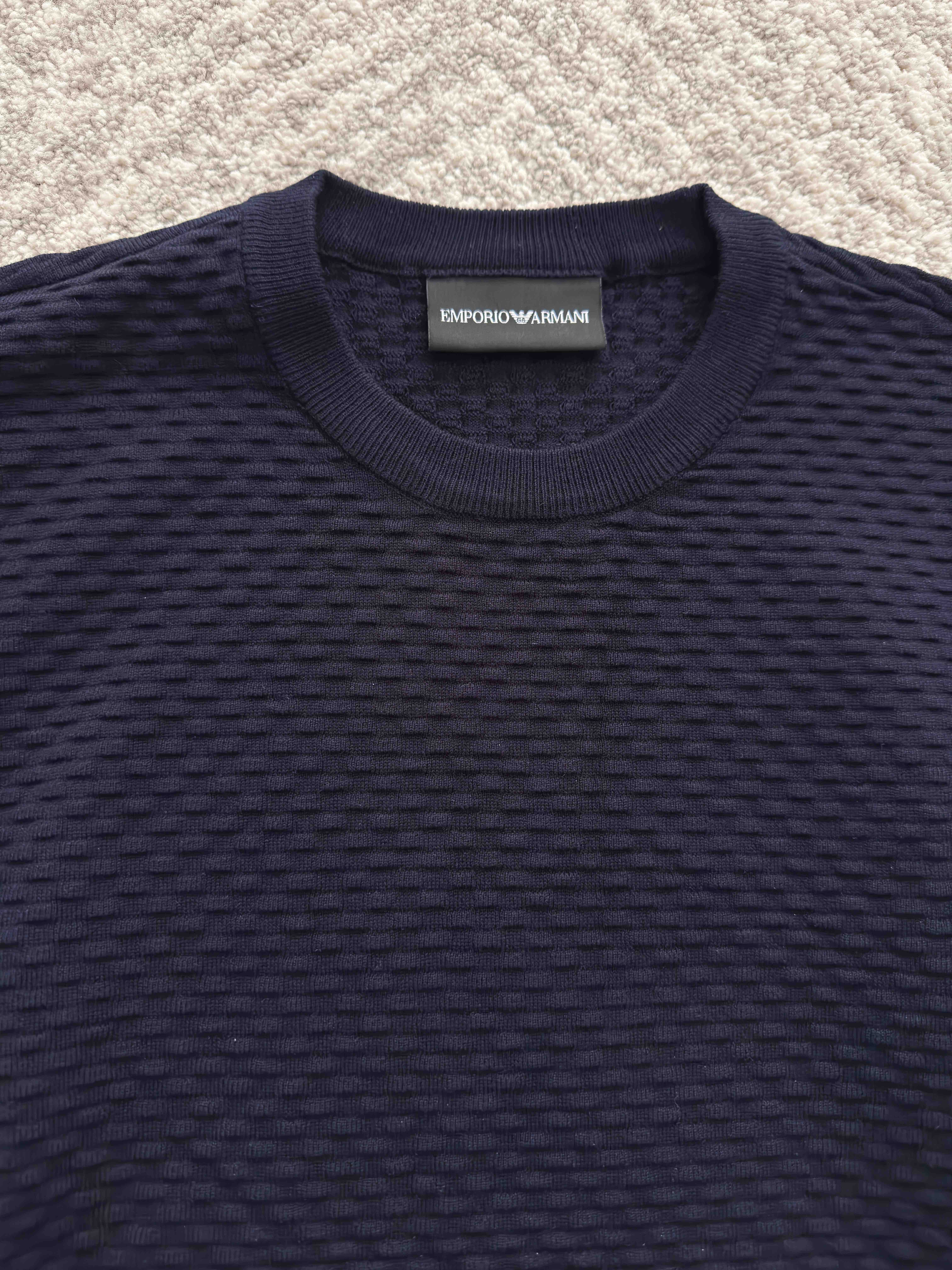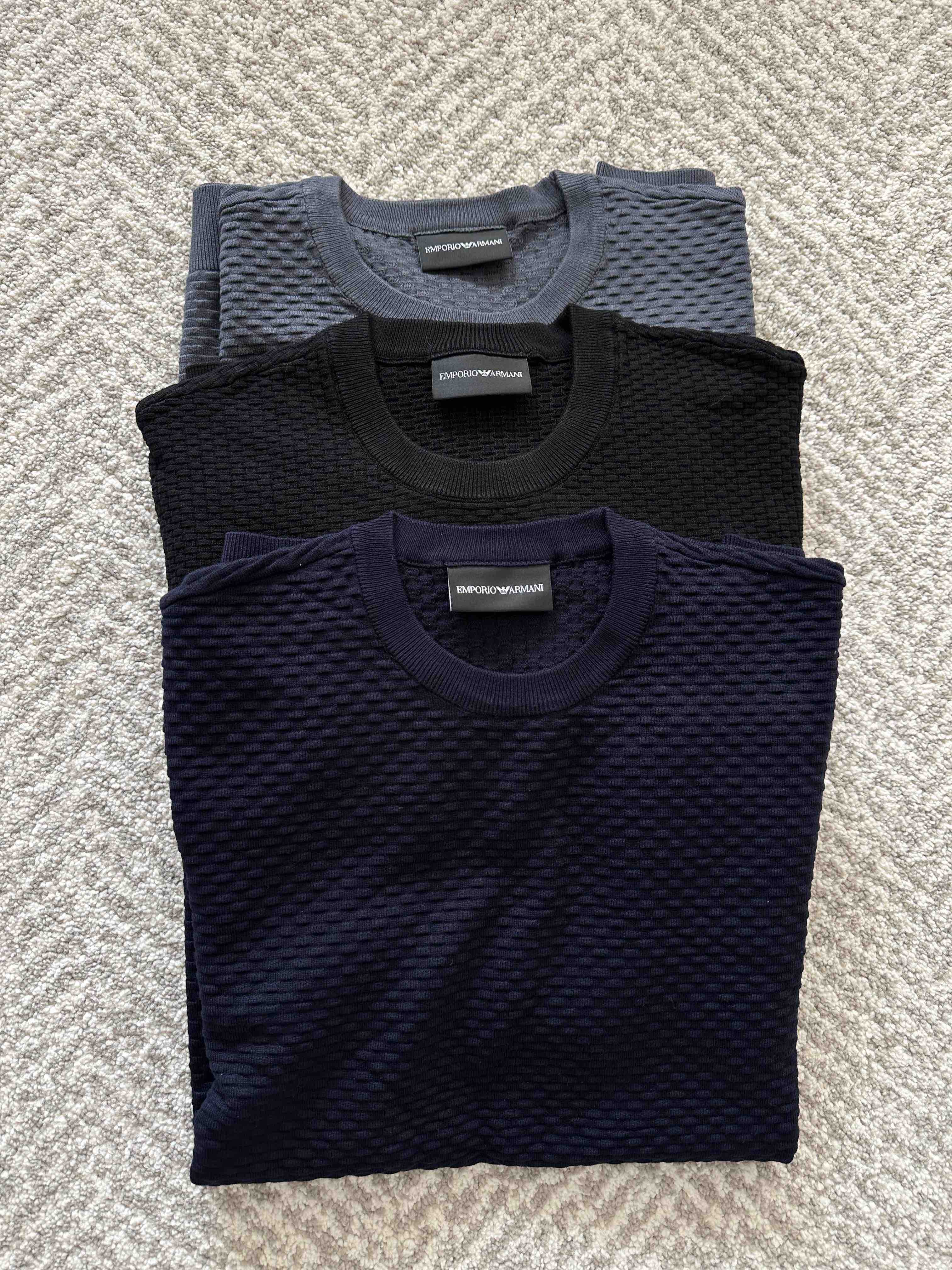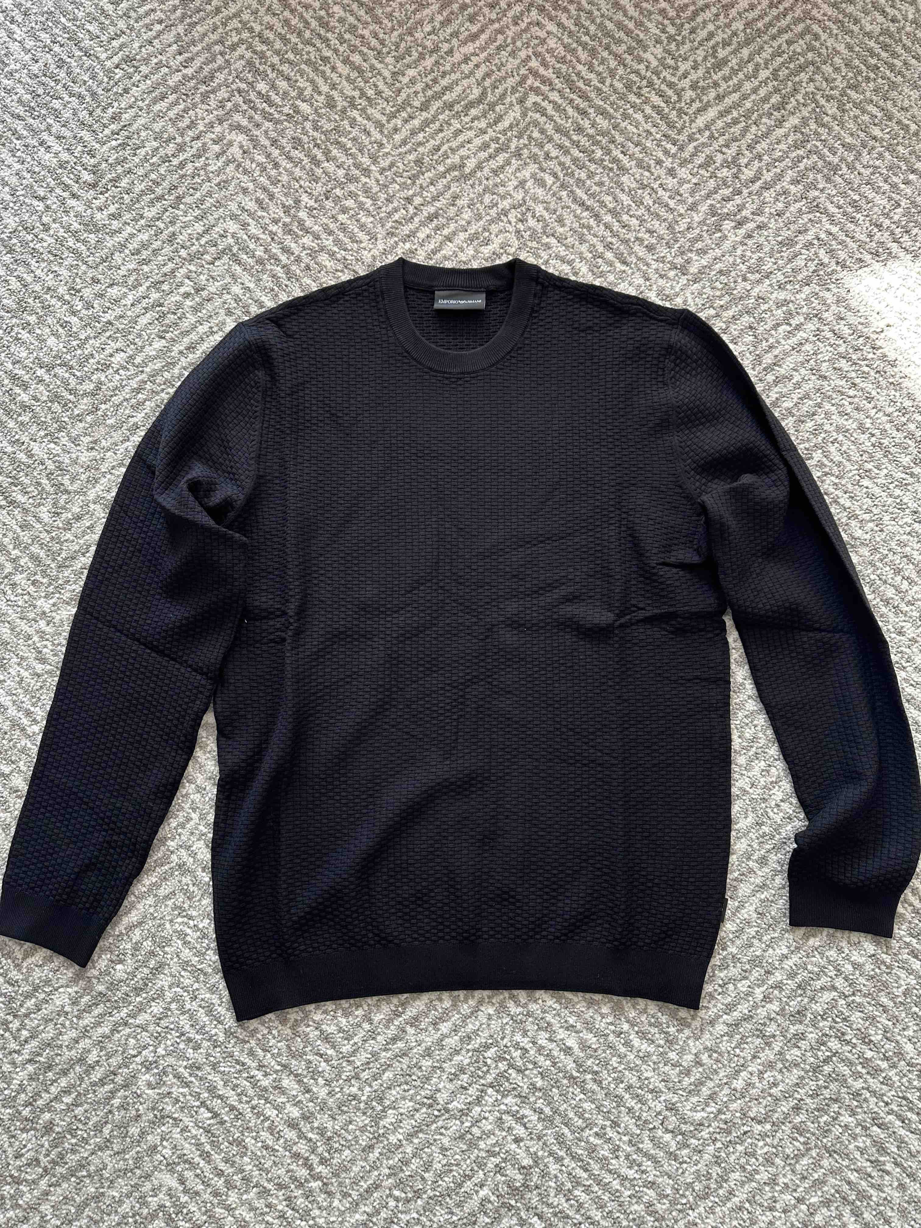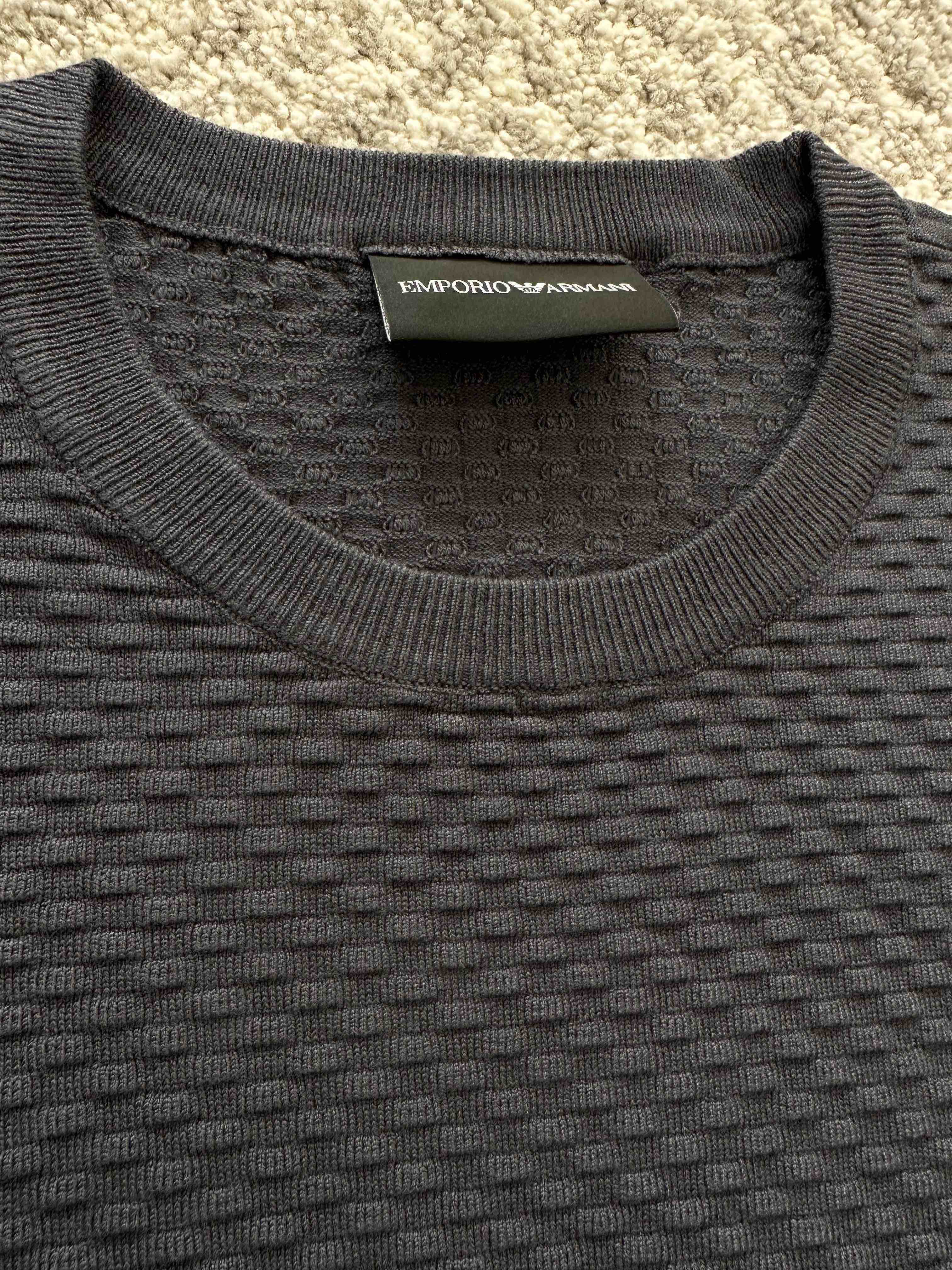 说明:Emporio Armani提花针织衫,满身提花凹凸质感,正是这两年大热的老钱风。混纺面料质感很棒,单穿,搭衬衫,打底,都帅。正价两千多。一折不到的价格,商场都买不到件正经T恤。。主标有,洗标无。正品保真。