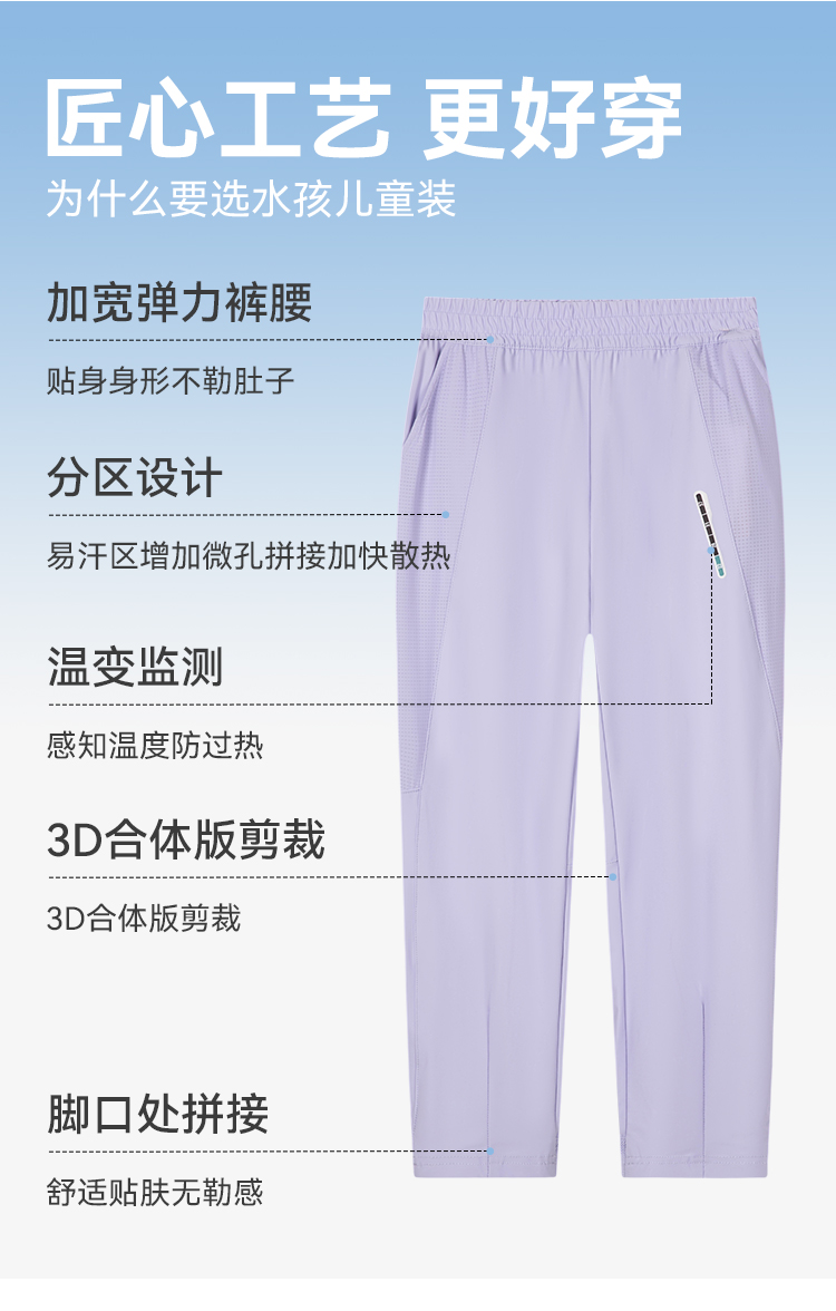 水孩儿童装2025夏季女童裤子男童长裤防晒凉感透气薄款宽松弹力