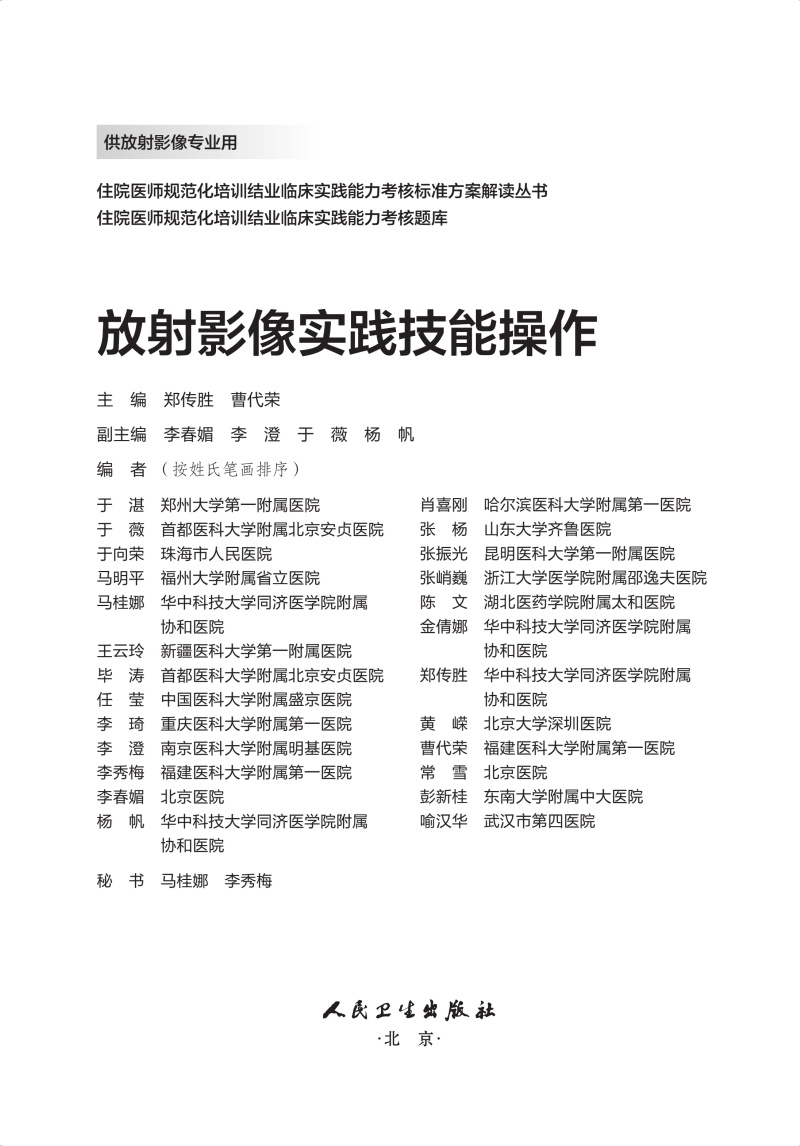 放射影像实践技能操作 住院医师规范化培训结业临床实践能力考核标准方案解读丛书 郑传胜 曹代荣 供放射影像专业用人民卫生出版社