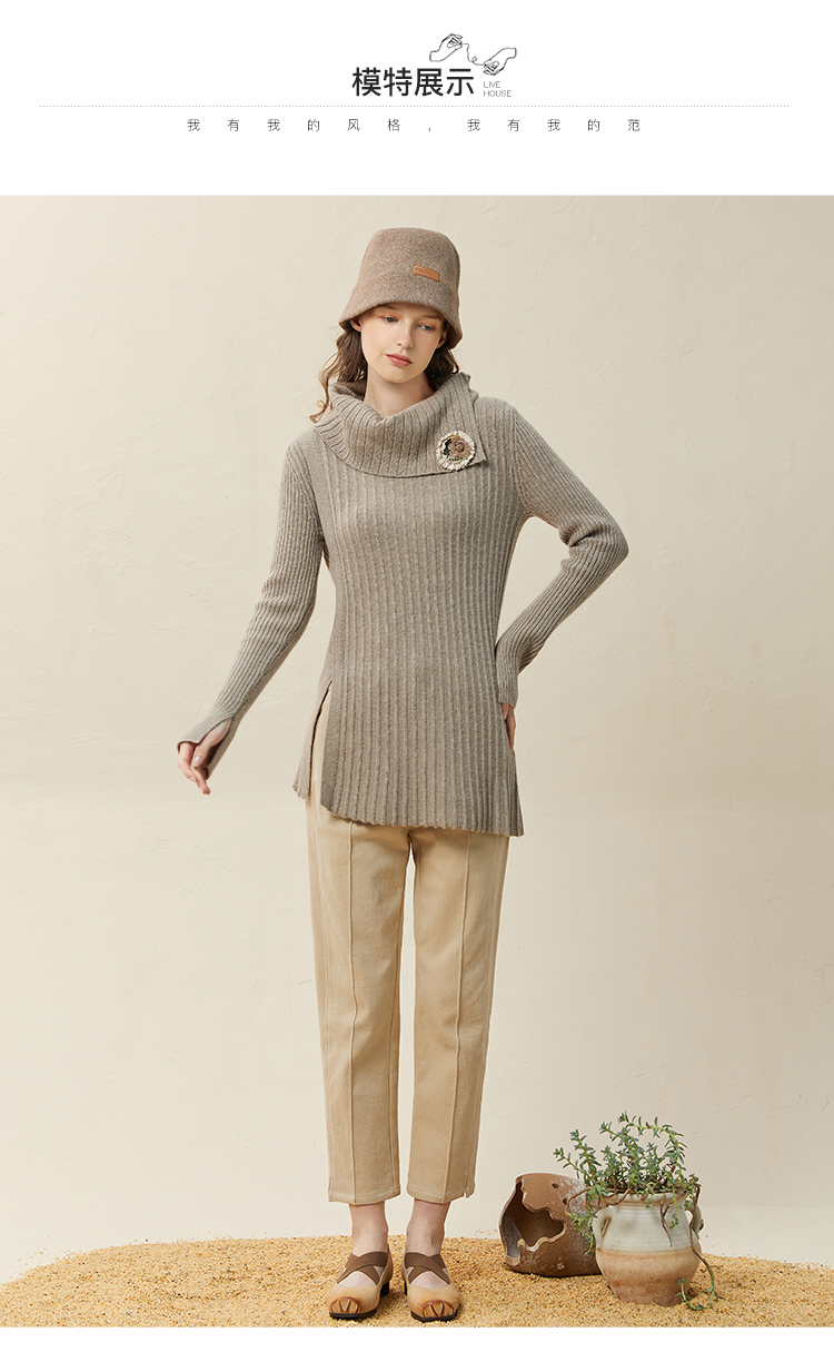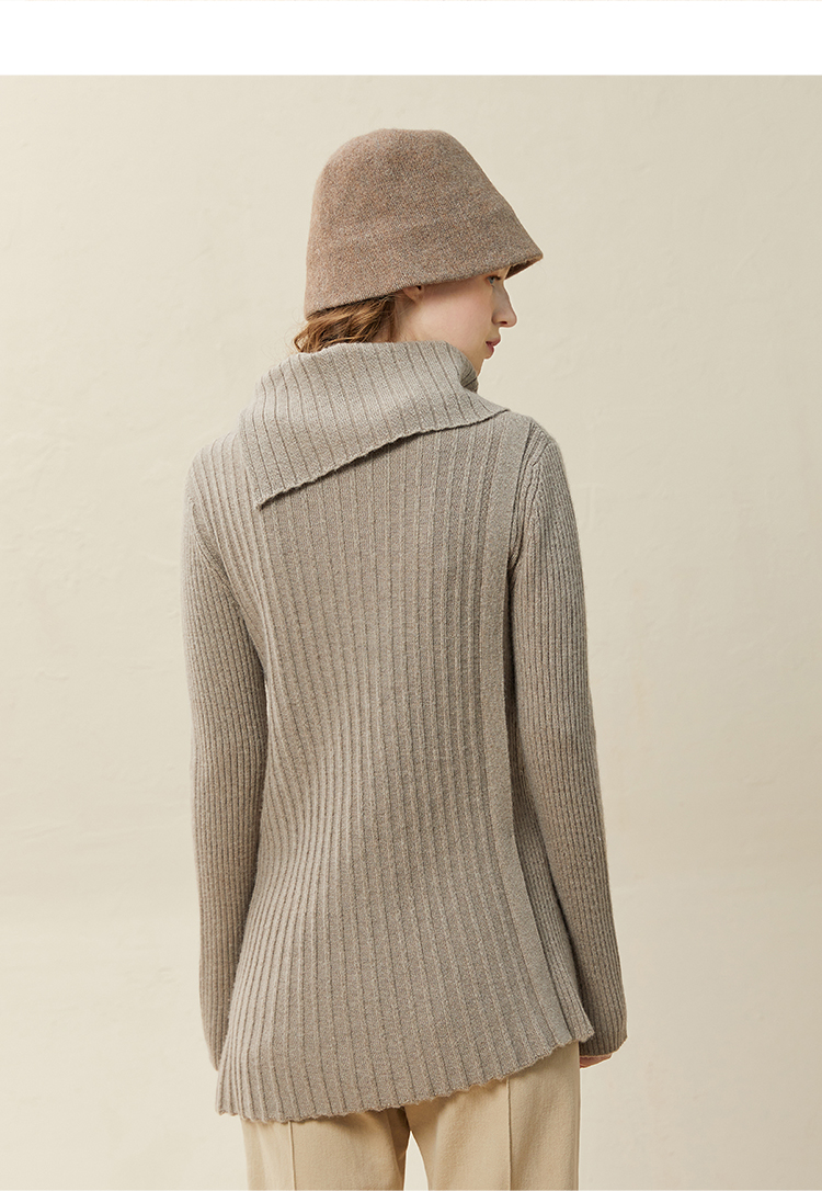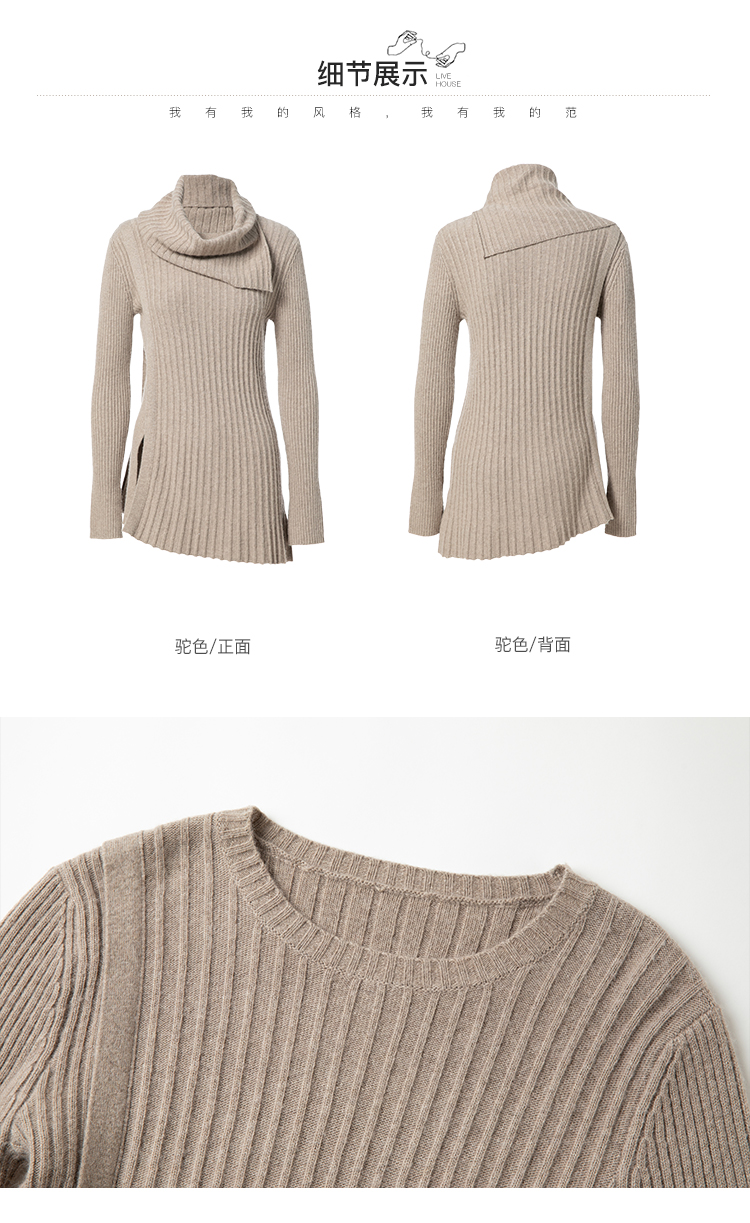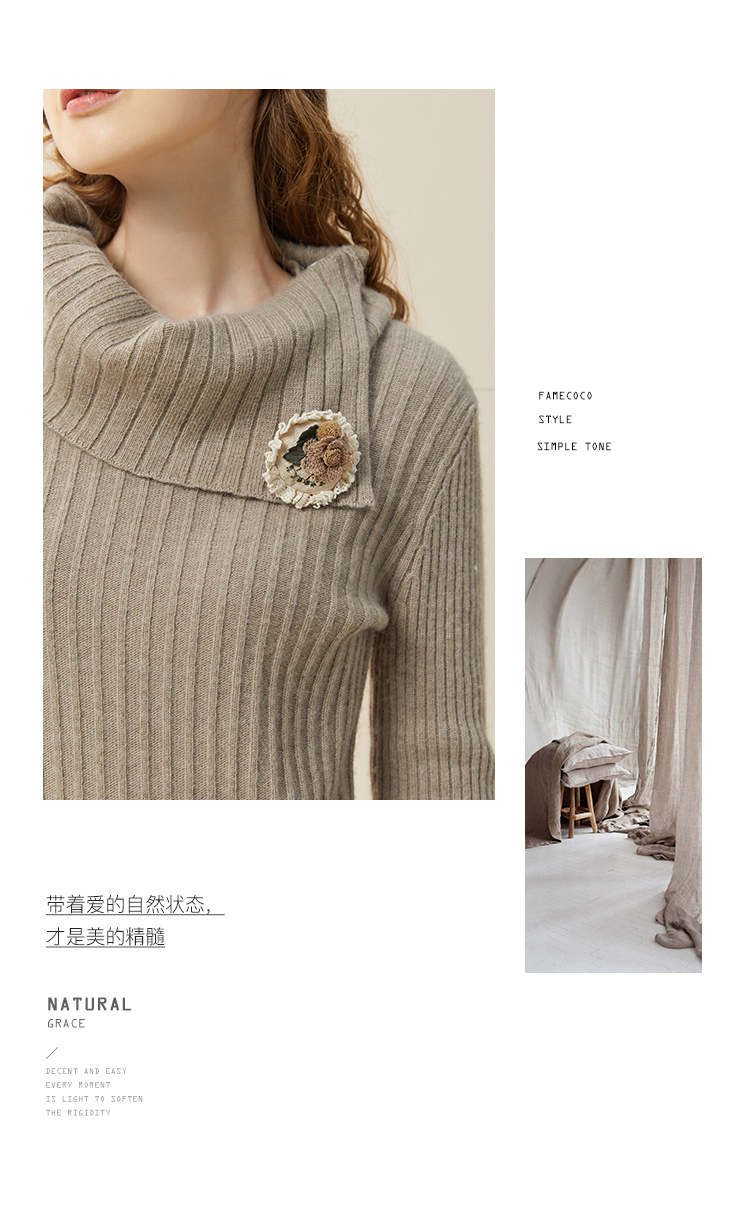 Famecoco范可儿坑条针织衫秋冬款小众原创设计围脖可拆毛衣F228DB010