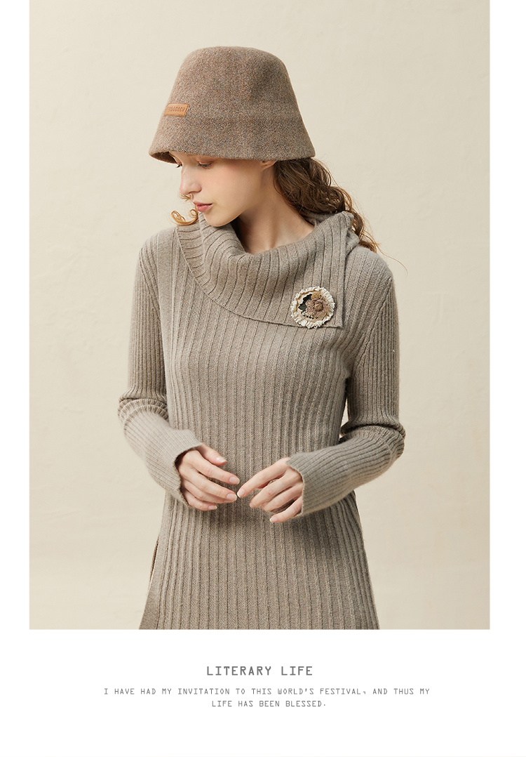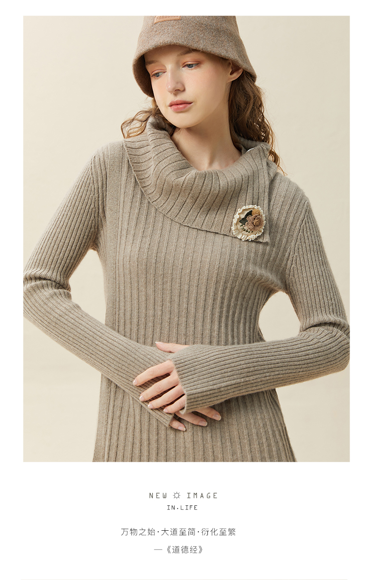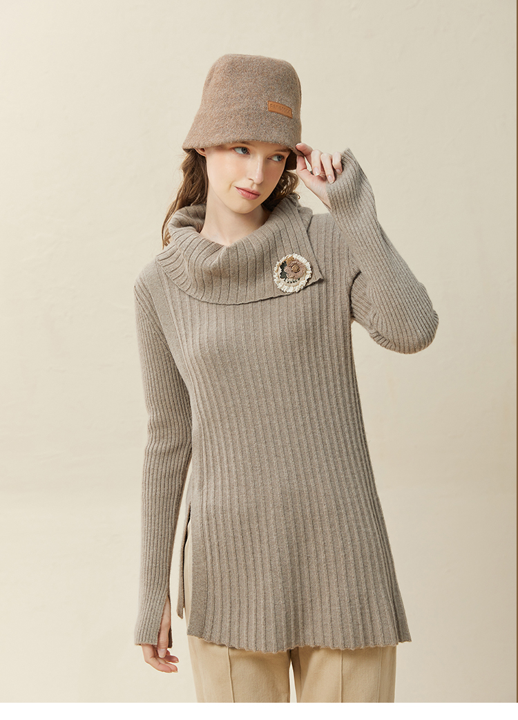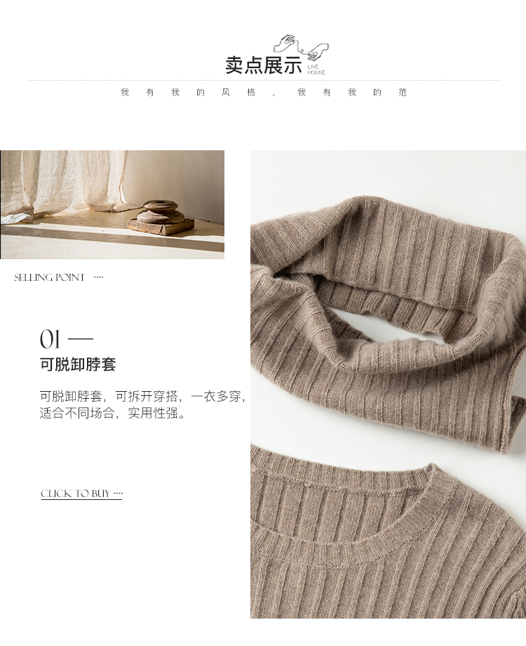 Famecoco范可儿坑条针织衫秋冬款小众原创设计围脖可拆毛衣F228DB010