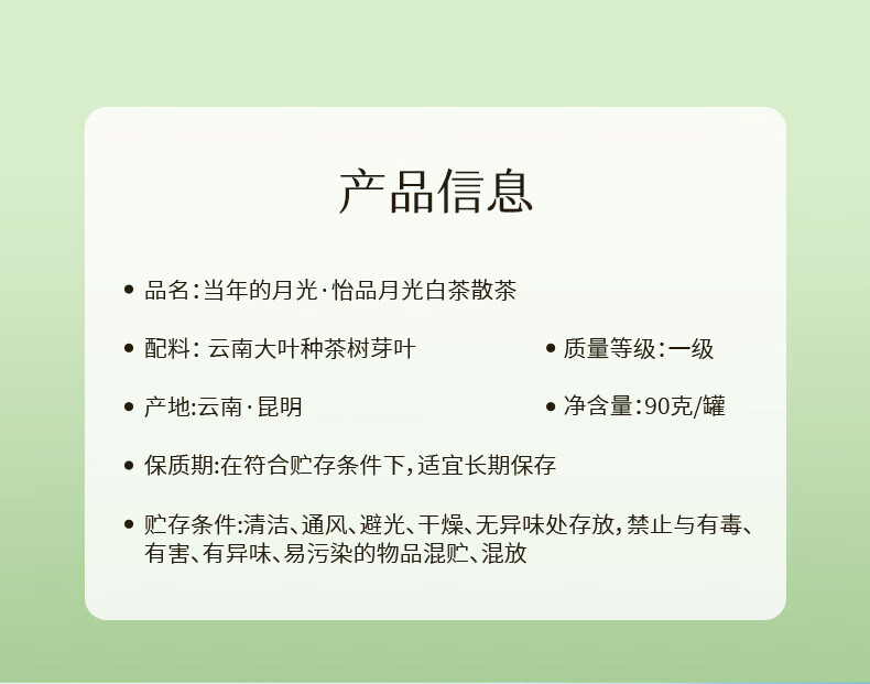 【官方正品】当年的月光·怡品老树白茶90g散茶年货大叶种白茶送礼自用口粮茶云南白药天颐茶品