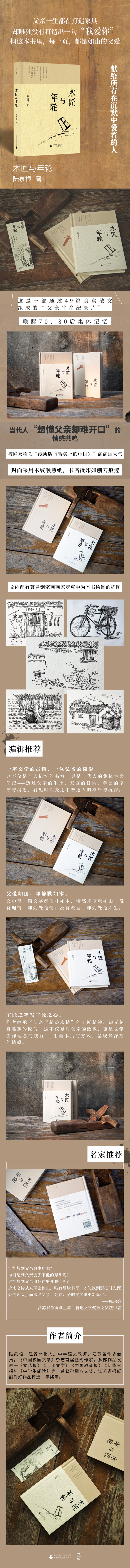《木匠与年轮》是中国现当代作家陆泉根近几年创作的关于父亲以及古镇旧物风貌的的系列散文集。