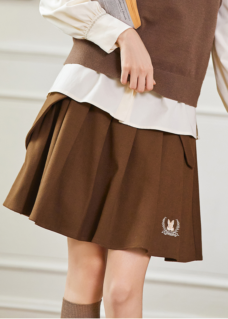 Famecoco范可儿秋冬卡通兔子刺绣半身短裙FAB8HA009