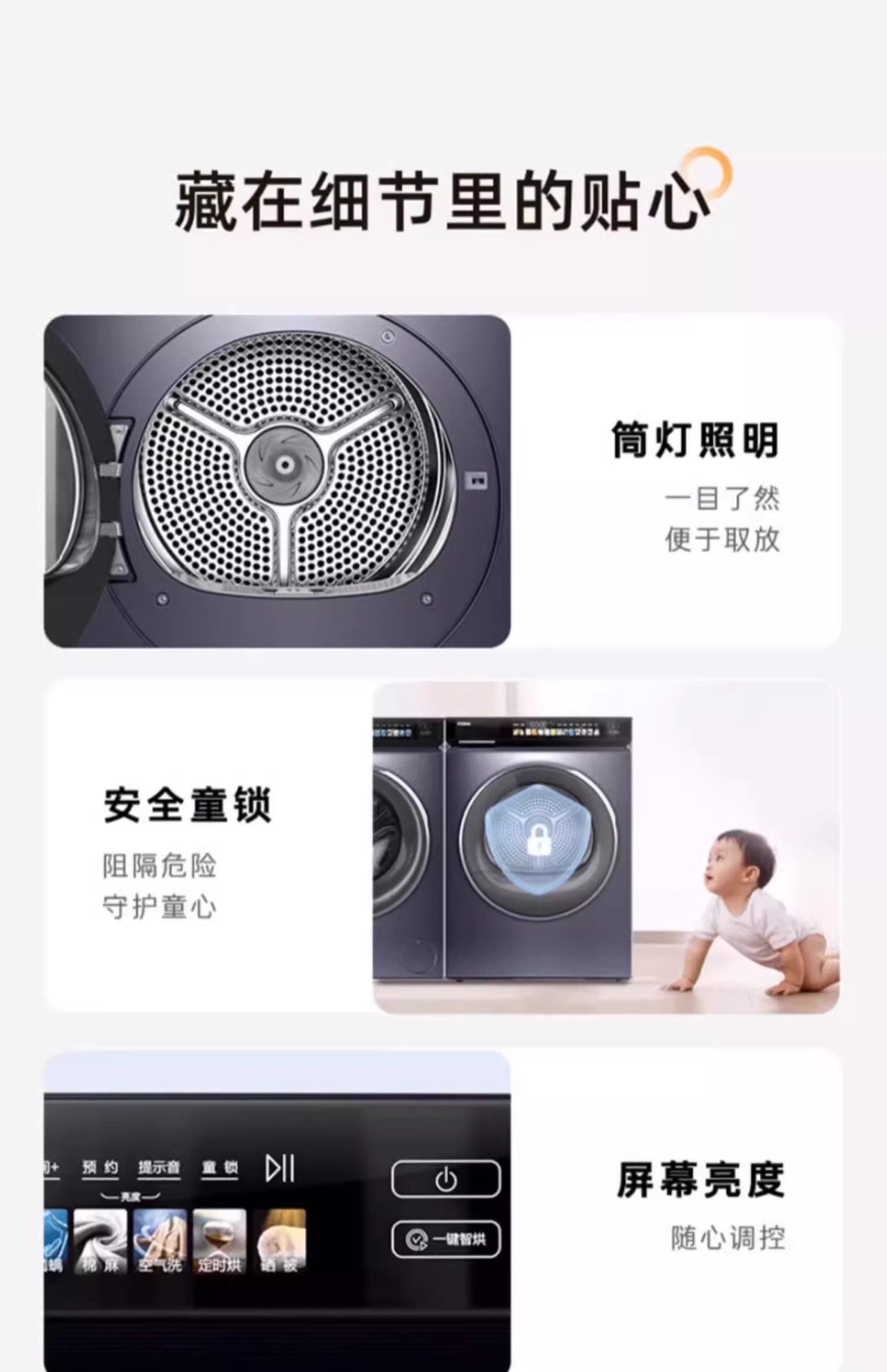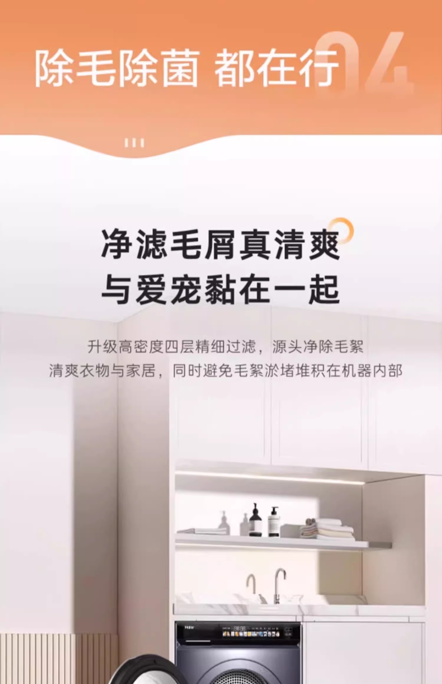 以旧换新-【精华洗】海尔精华洗滚筒洗衣机全自动家用 10公斤洗烘一体机 直驱超薄大筒径 UVC紫外除菌XQG100-HBD176PLUSLU1