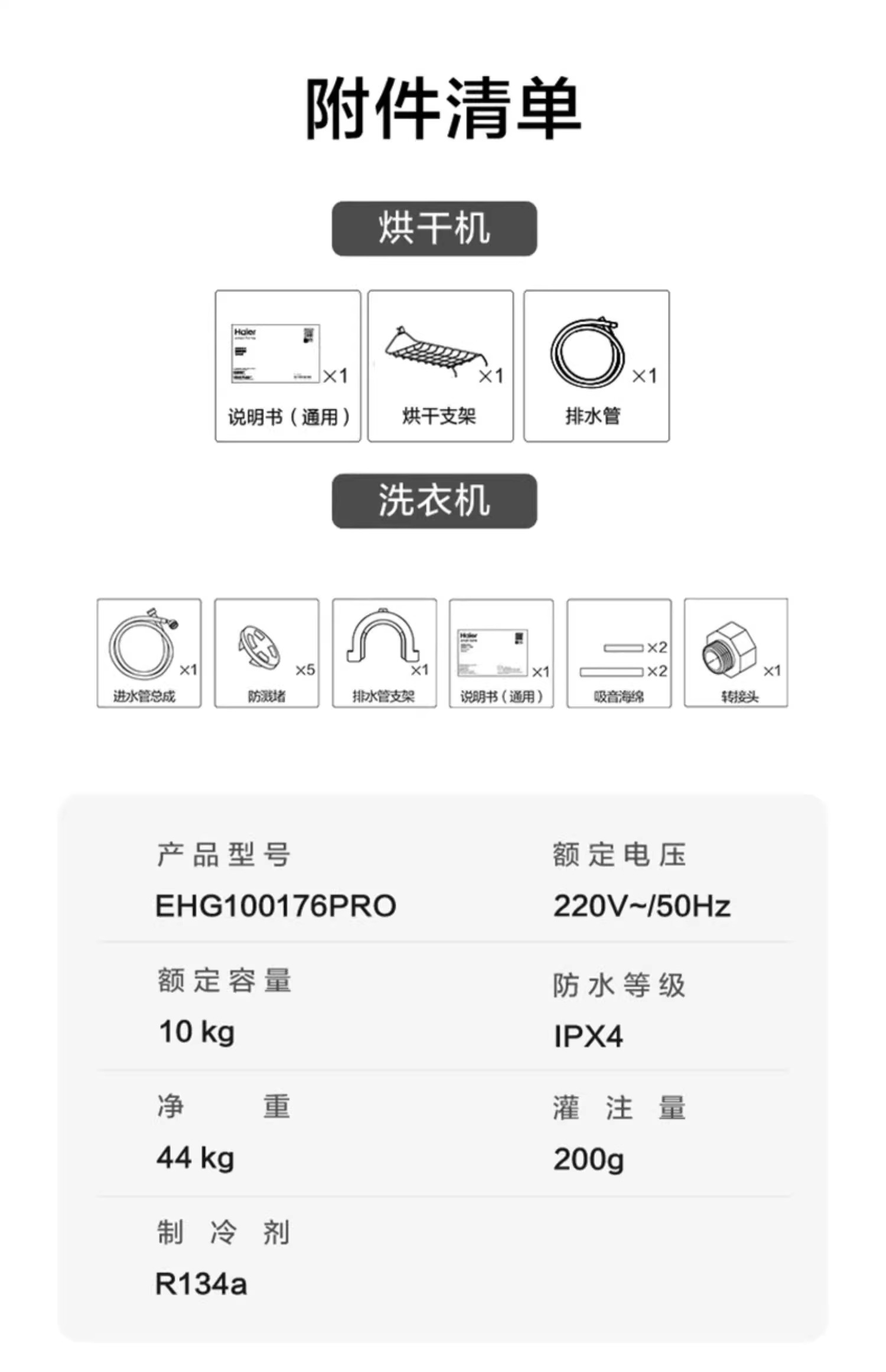 【追光】海尔洗烘套装10kg直驱精华洗滚筒洗衣机热泵烘干机176pro