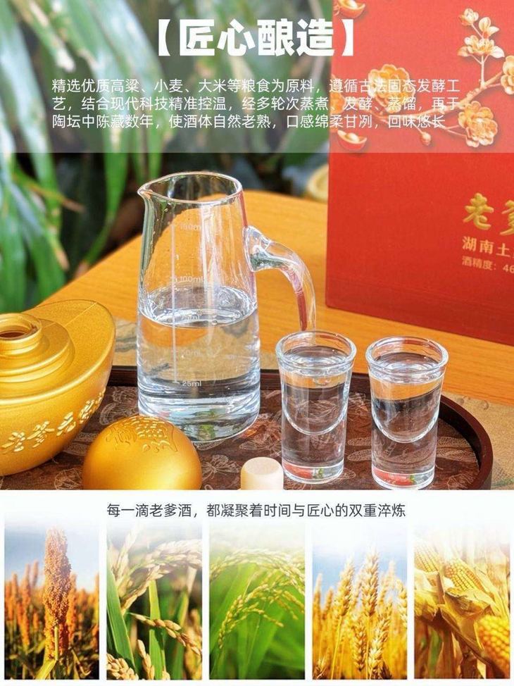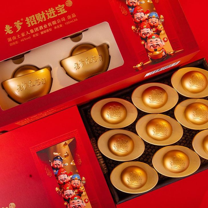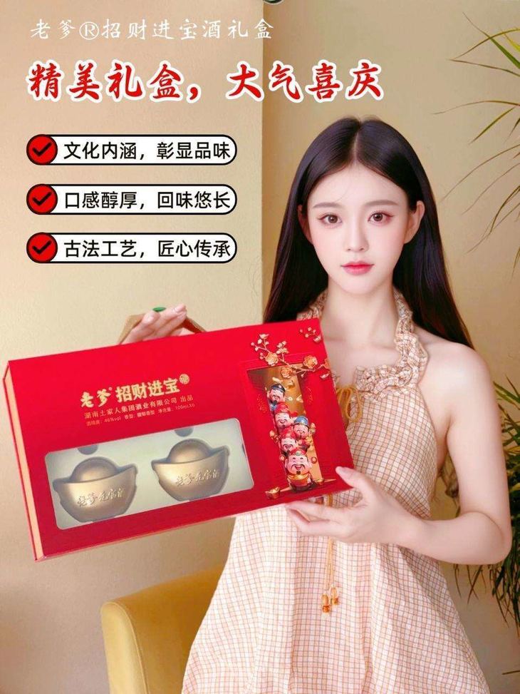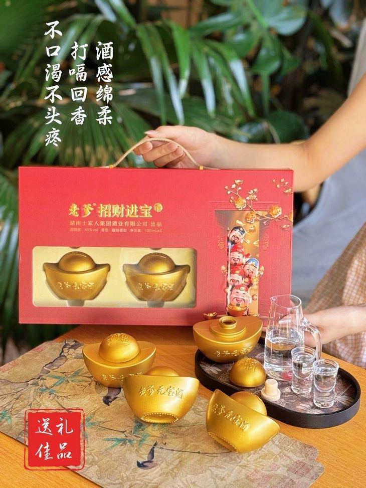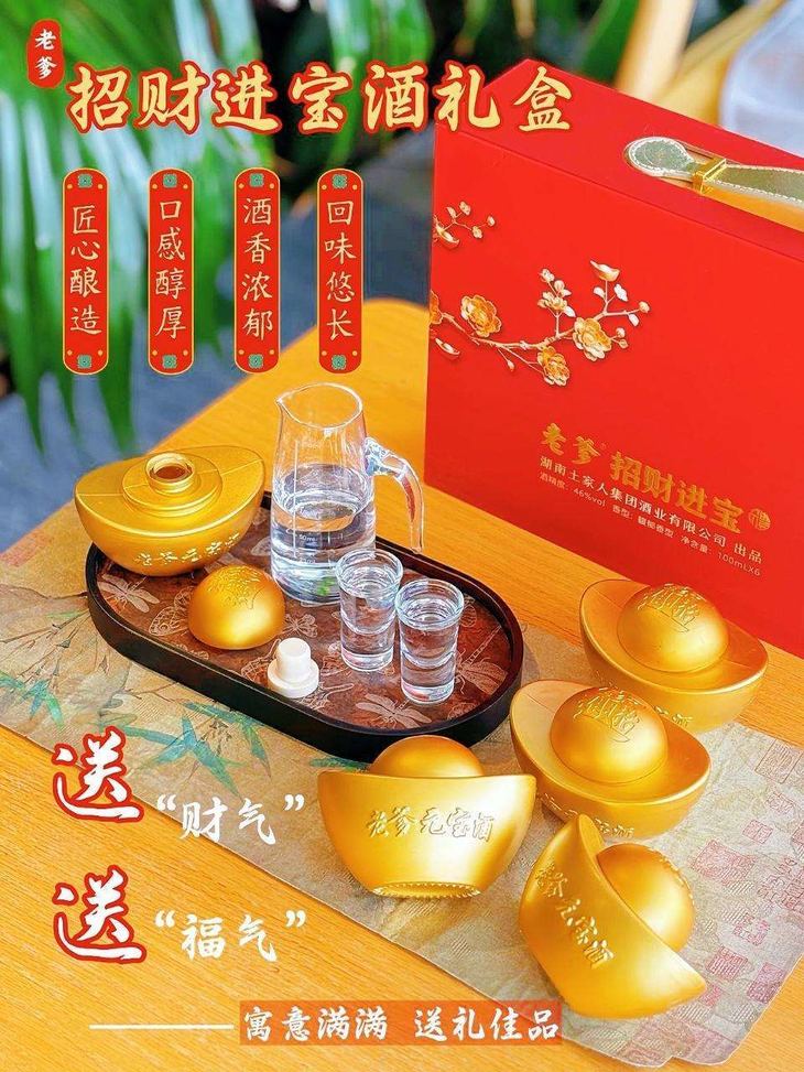 ✨礼盒包装:红色主调,象征着吉祥与热情 搭配金色元素,更显高级与大气!💎 🌸设计精美:盒面点缀着金色花枝 寓意花开富贵,财源滚滚来~ 💰财神爷图案更是增添了无限喜庆与祝福!🎈 🍶酒质上乘:由湖南土家人集团酒业有限公司出品 酒精度46%vol,馥郁香型,口感醇厚,回味无穷!