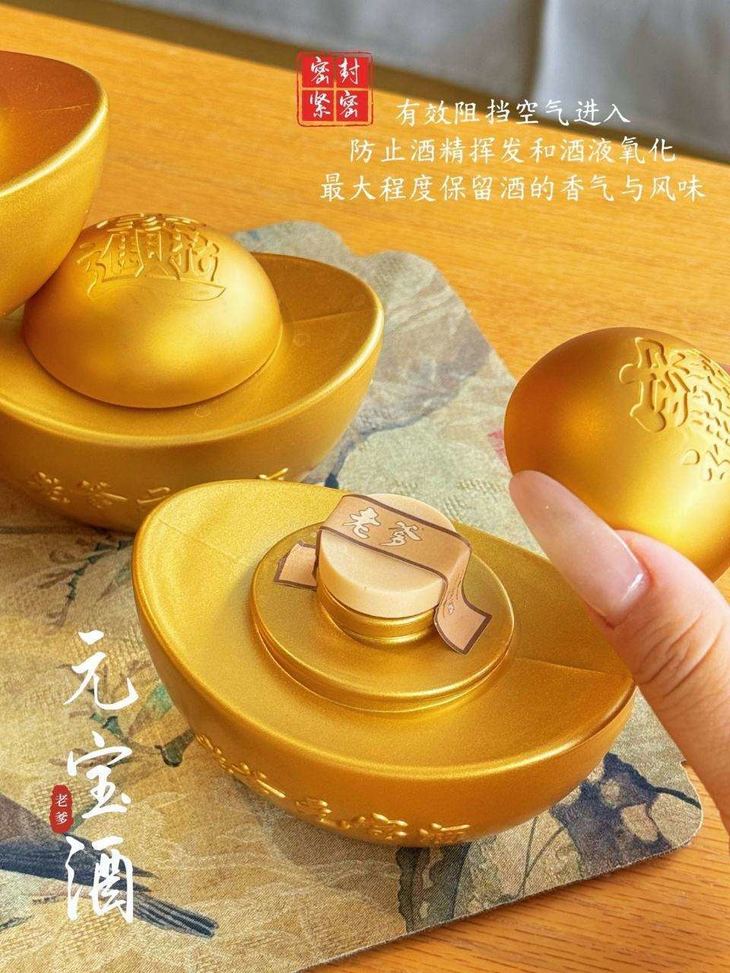 🌈在欢聚的时刻,总有一款酒能点亮氛围,让情谊更加深厚 🎊它就是【老爹招财进宝酒】一款专为宴请聚会打造的佳酿!🎁 👀看这金色元宝造型的酒杯 寓意着财源广进,好运连连! 💸每一杯都盛满了祝福与喜悦 让宾客们举杯共饮,欢笑连连。🥂
