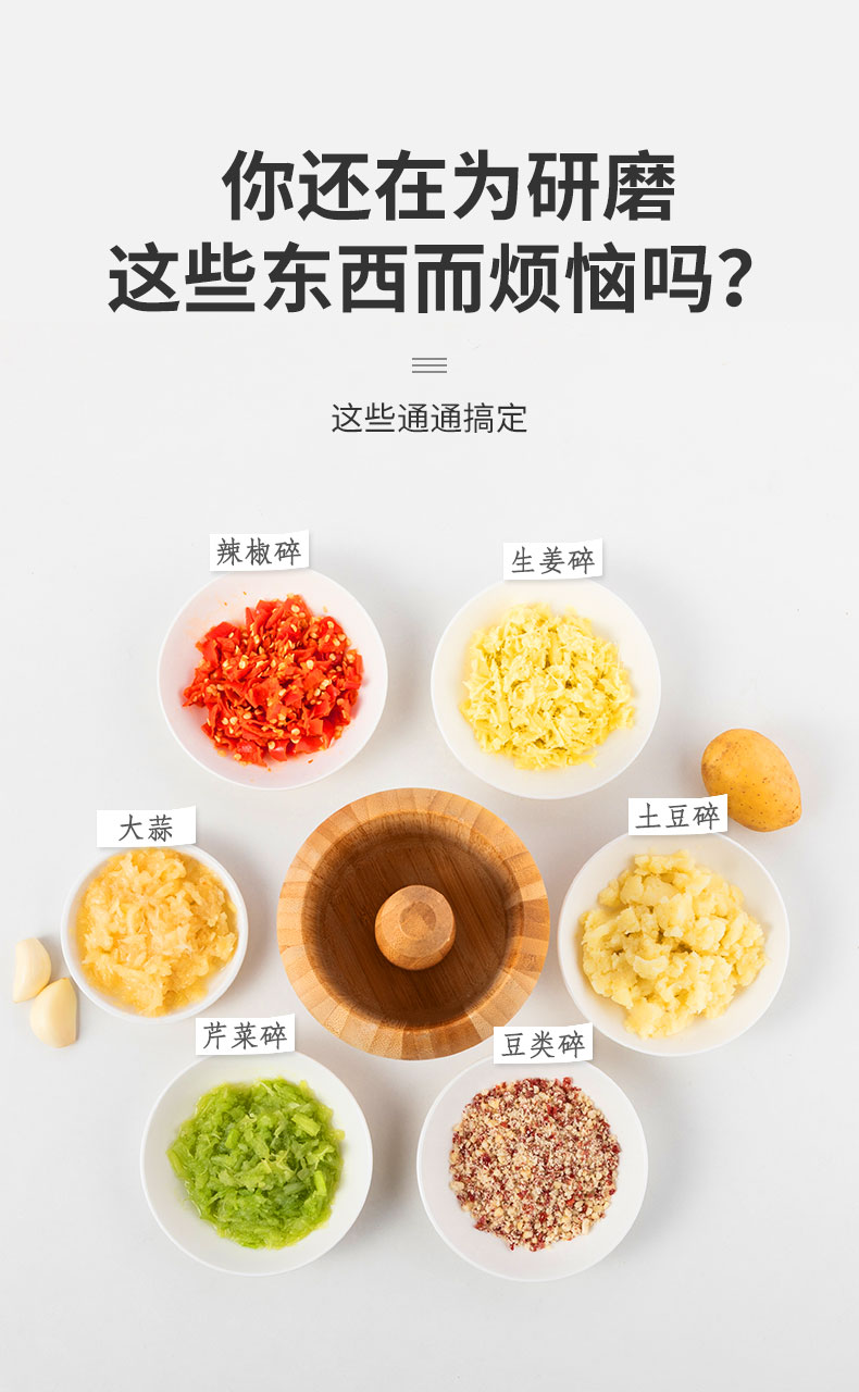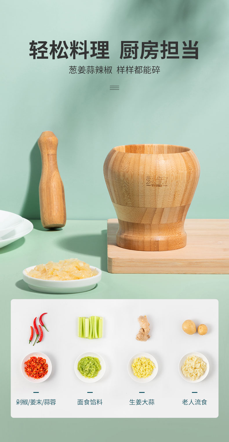 天竹蒜臼子家用手动实木捣蒜器竹捣碎罐