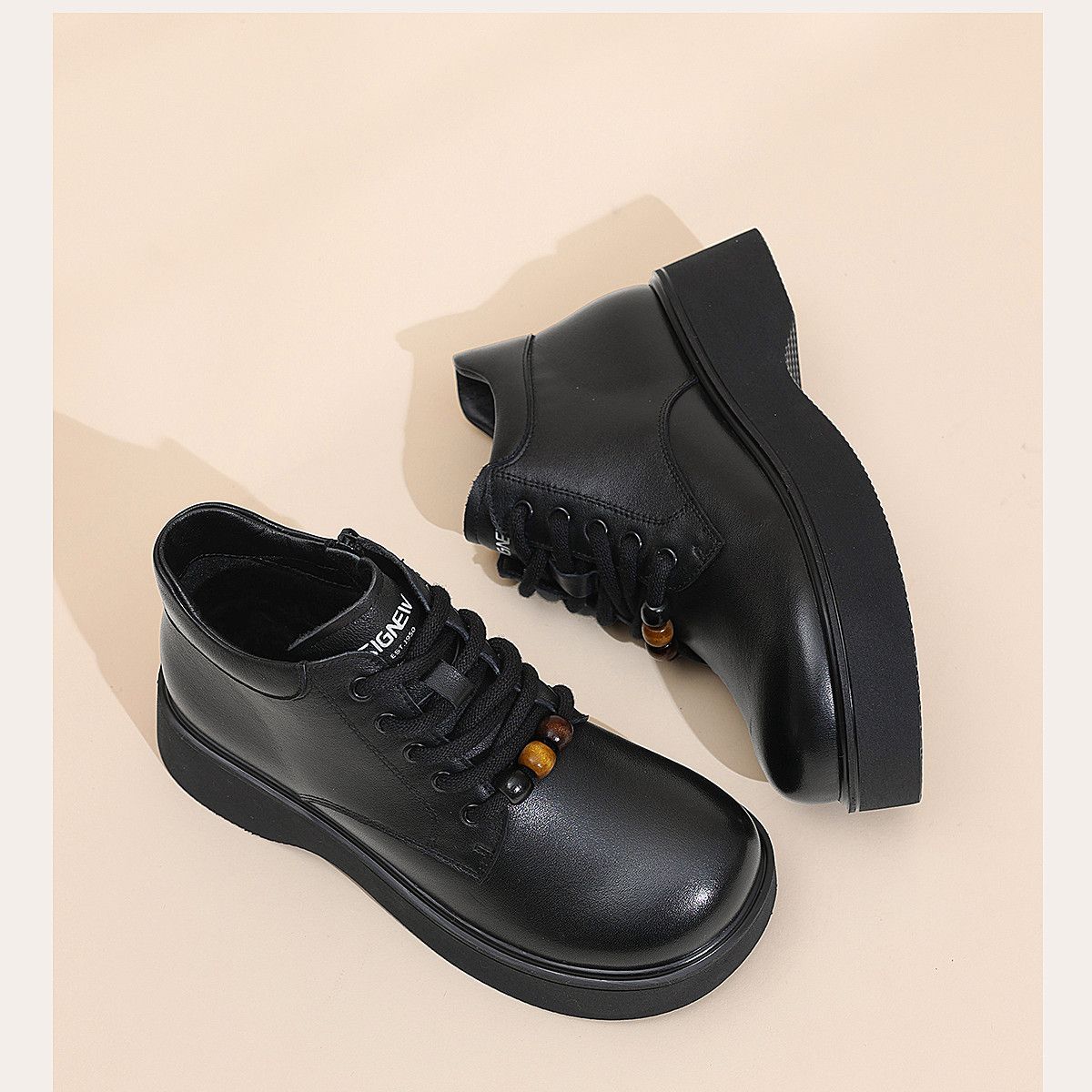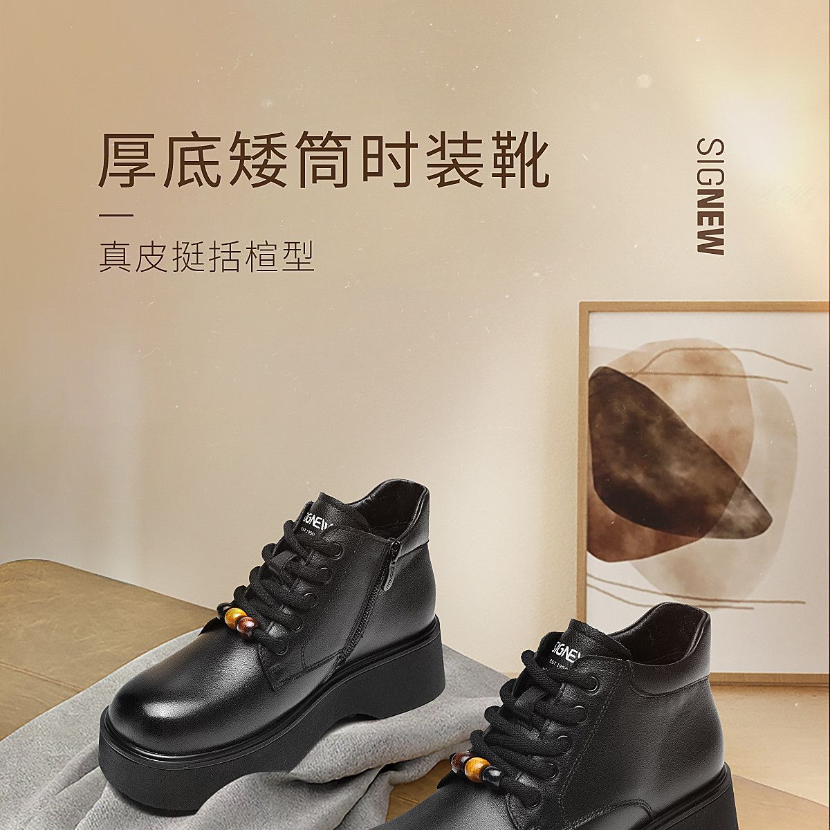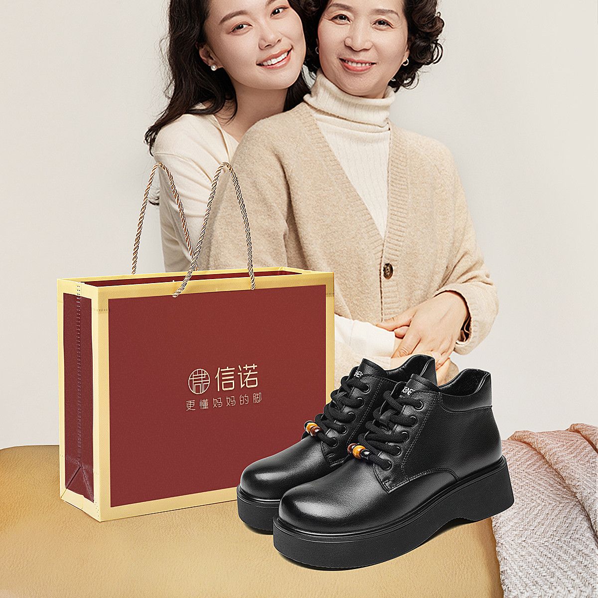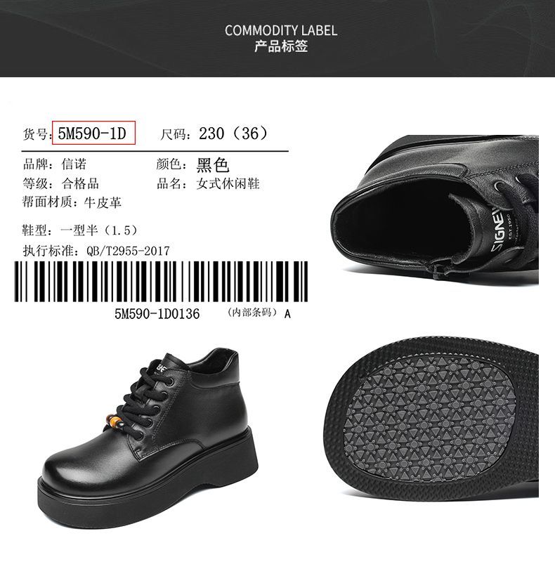信诺厚底妈妈棉鞋真皮软底舒适短靴女款2025新款冬季加绒保暖皮鞋5M590-1D