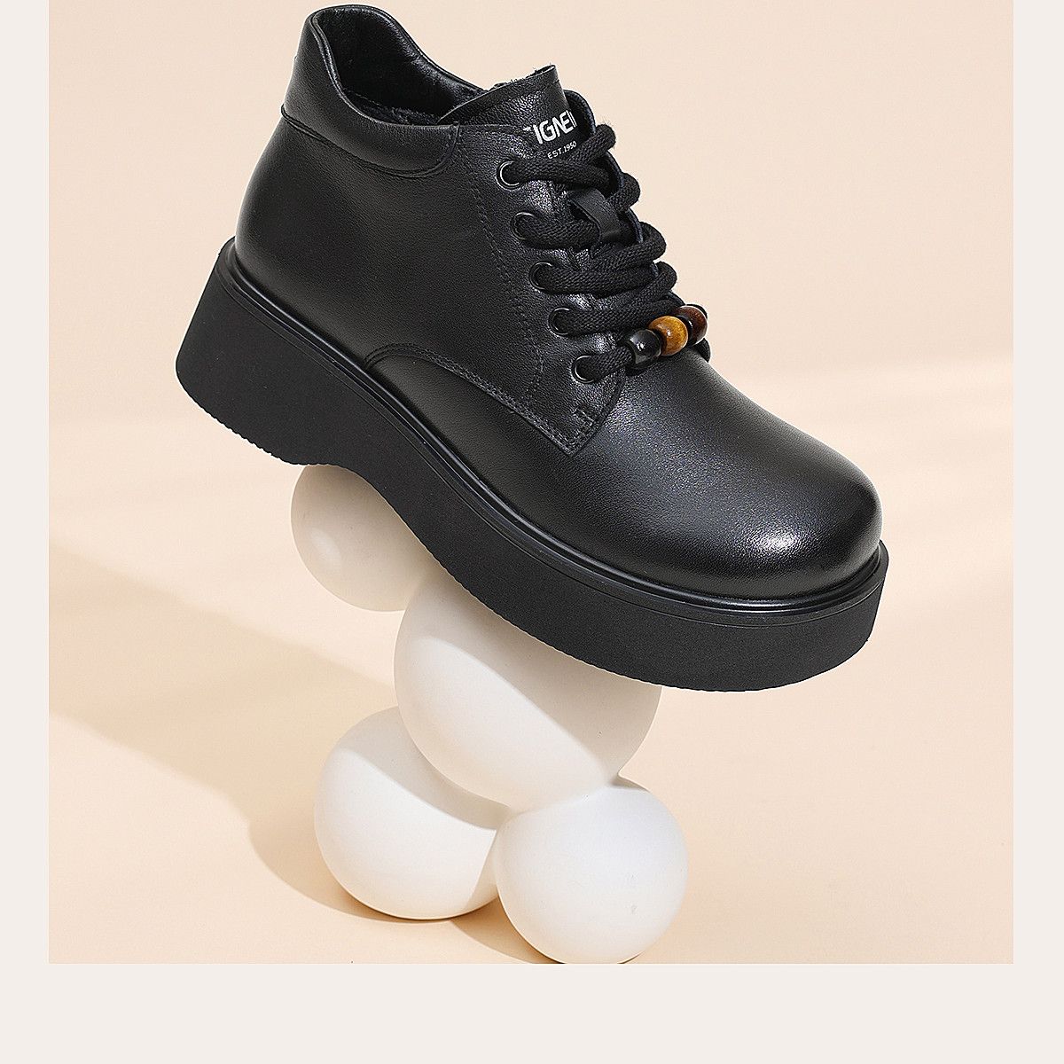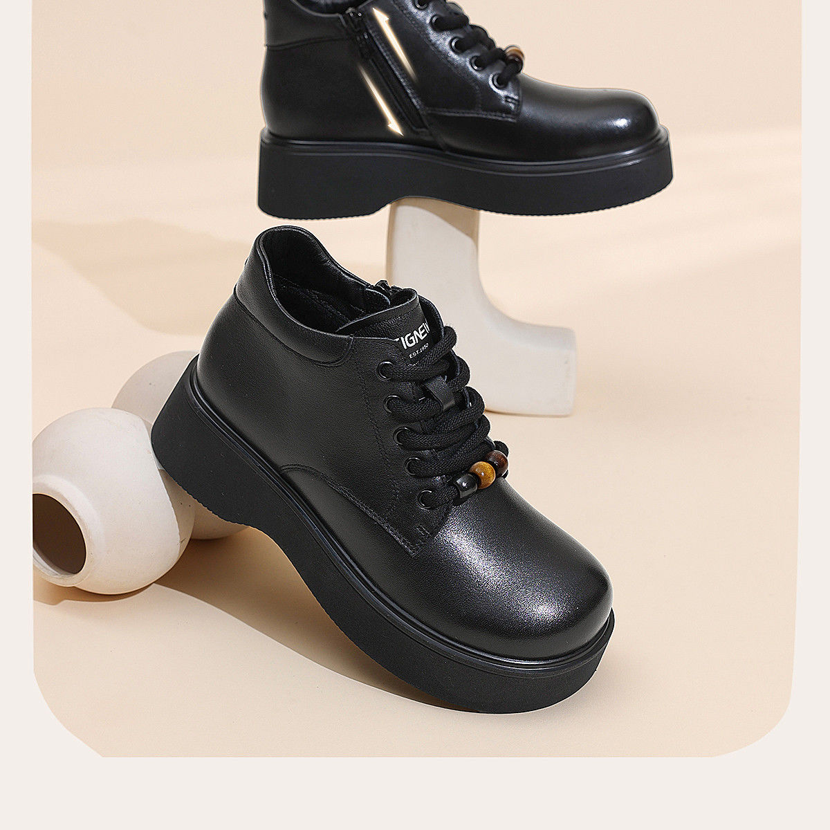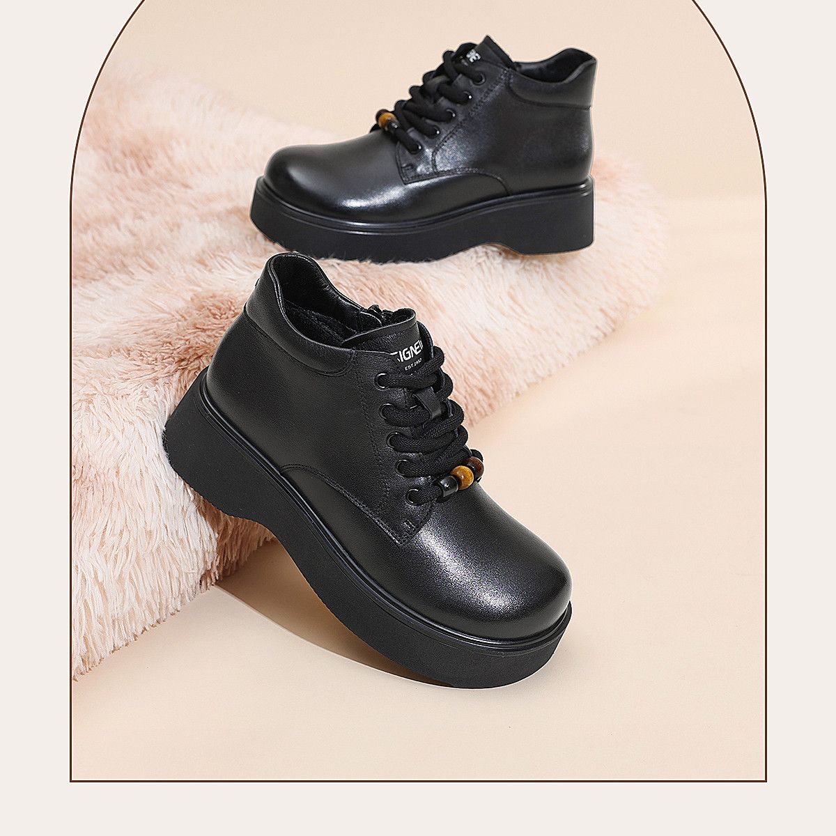信诺厚底妈妈棉鞋真皮软底舒适短靴女款2025新款冬季加绒保暖皮鞋5M590-1D