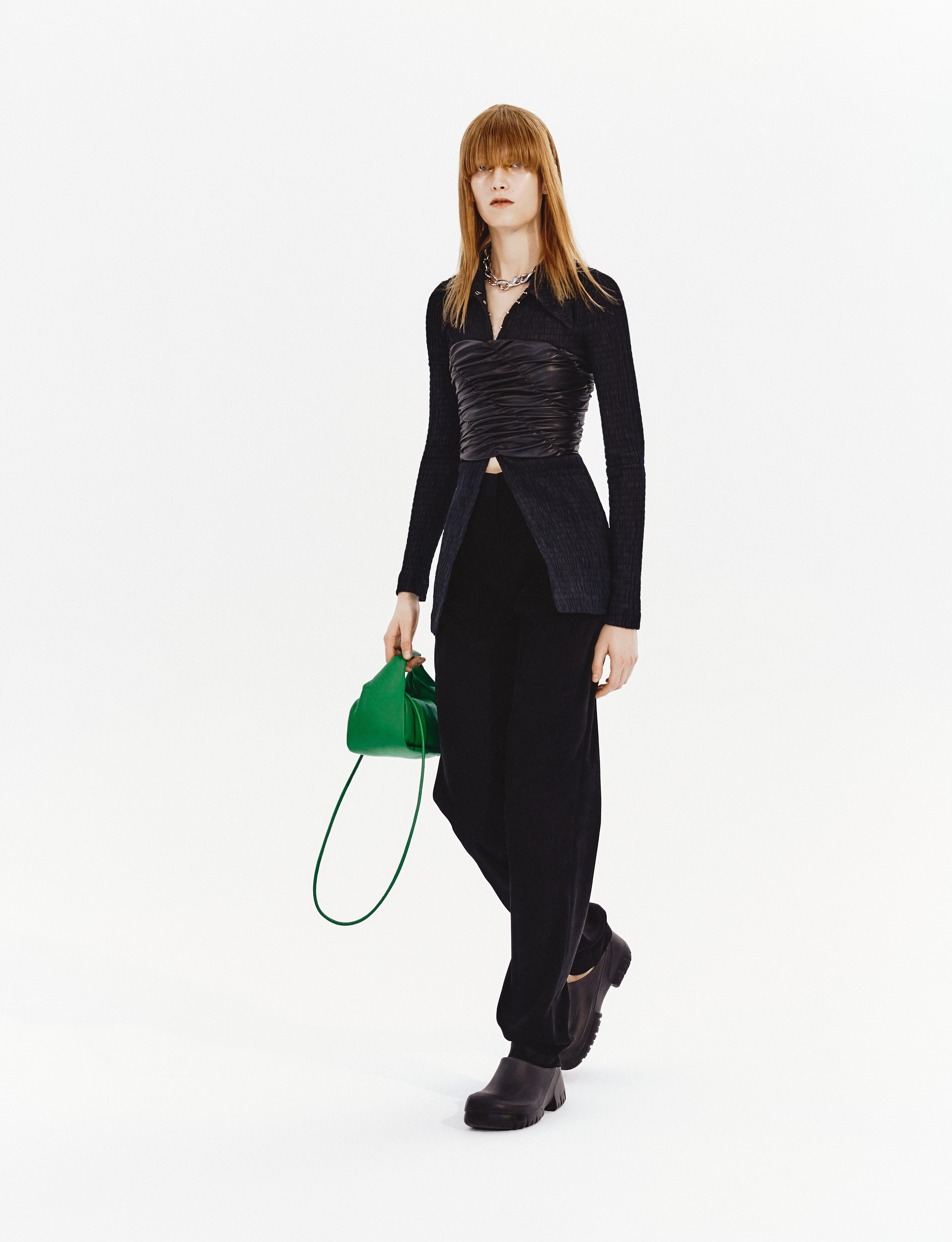 EVENING 褶皱皮质胸衣 黑色【可口系列】