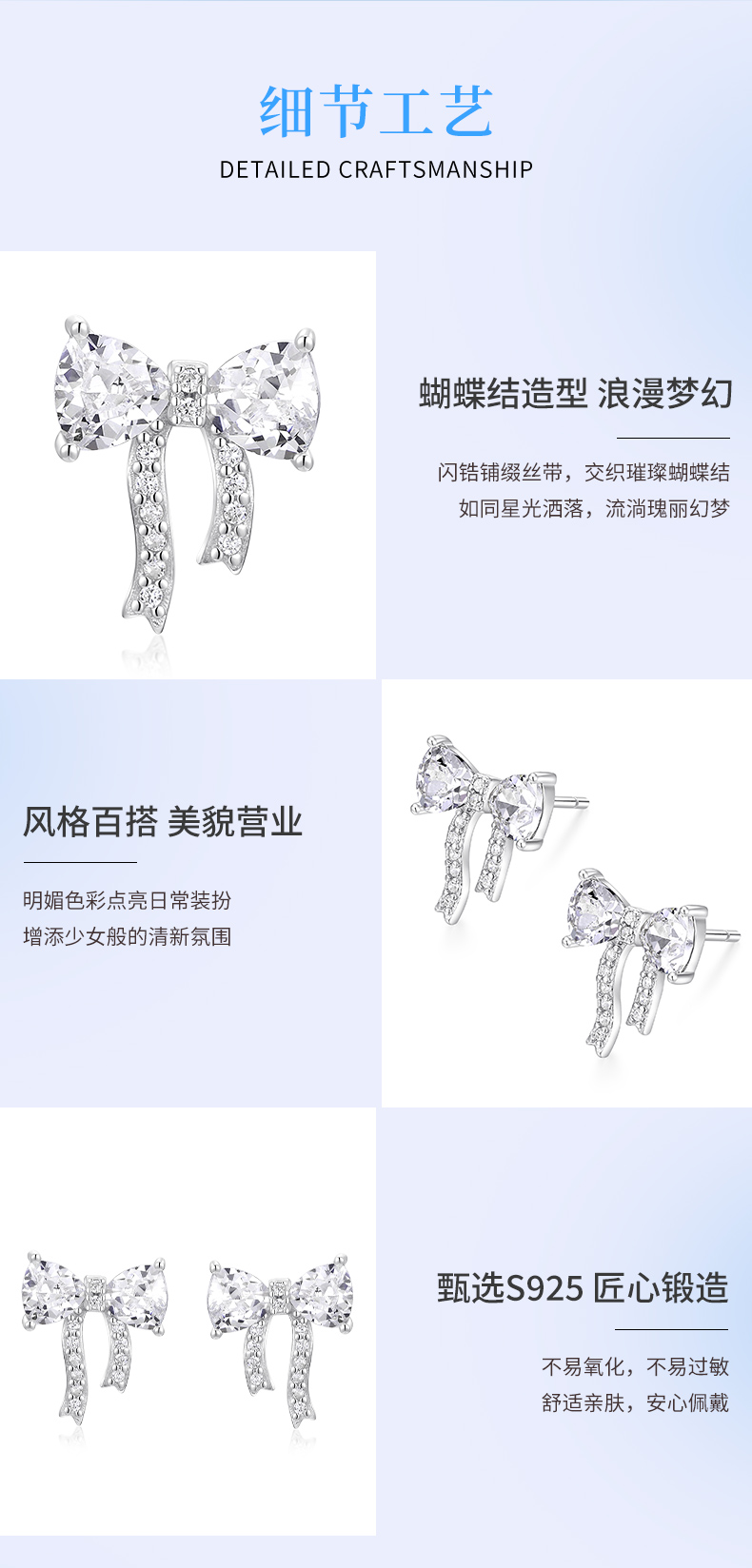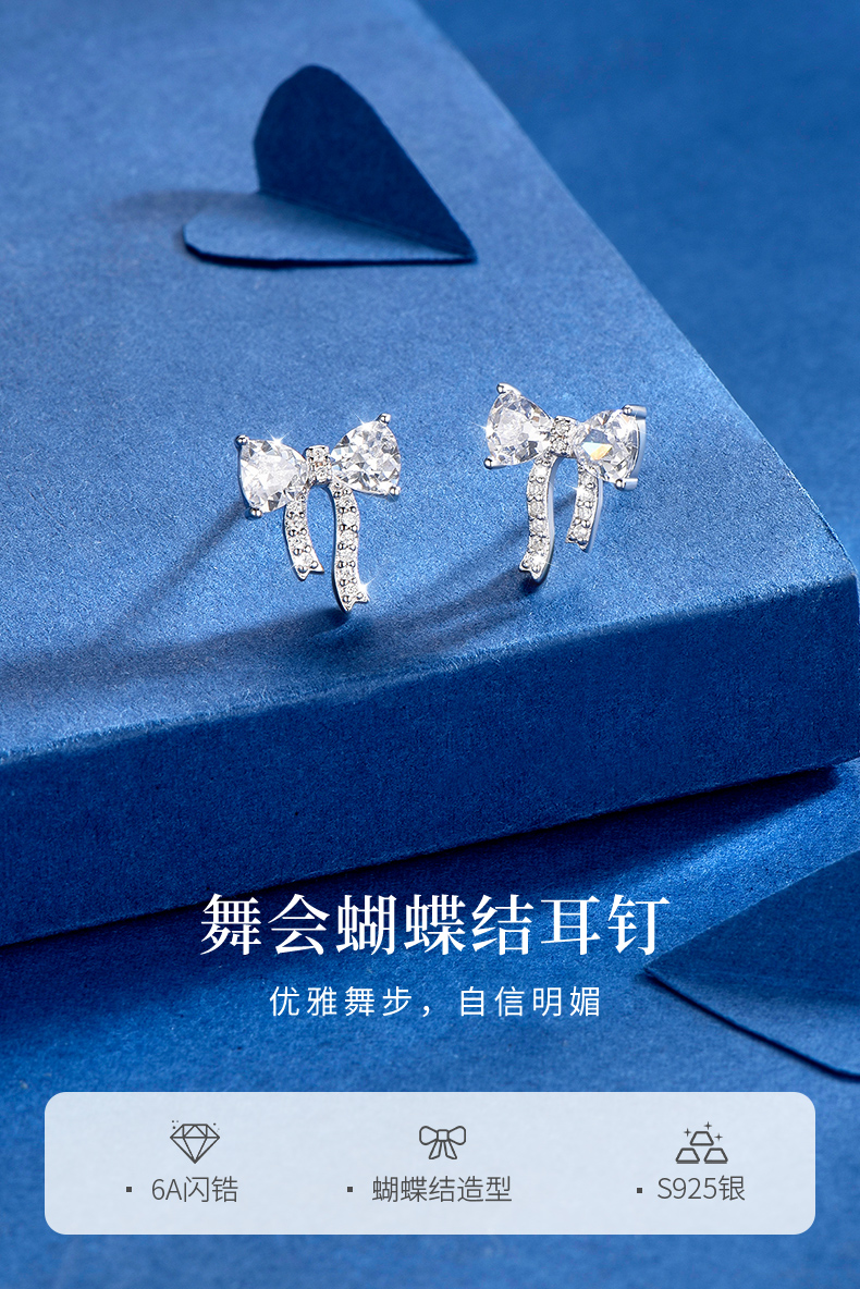 卡蒂罗/KADER 灵动结系列 舞会蝴蝶结耳钉 在逃公主甜美可爱丝带结设计纯银耳饰 精致闪耀小众轻奢养耳洞不装款#好运