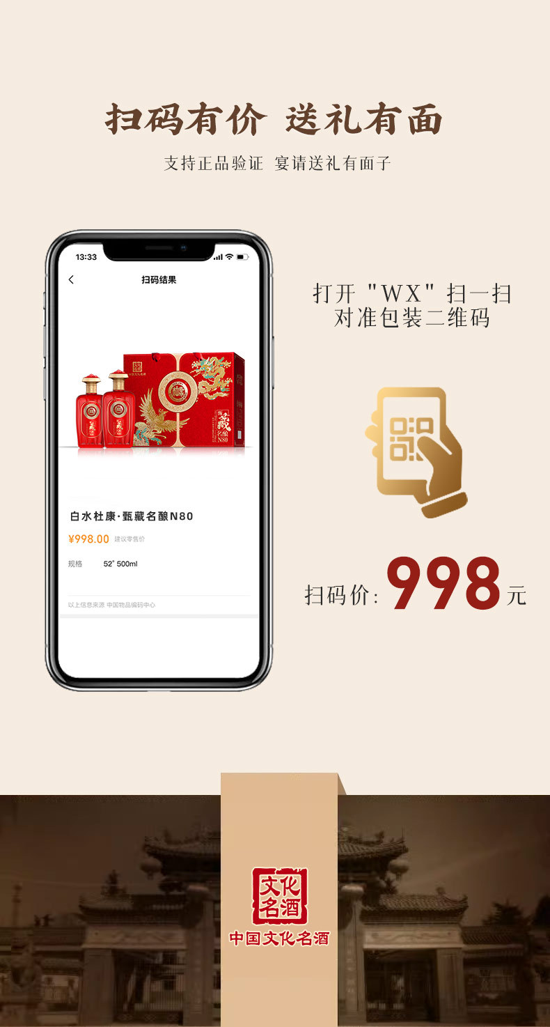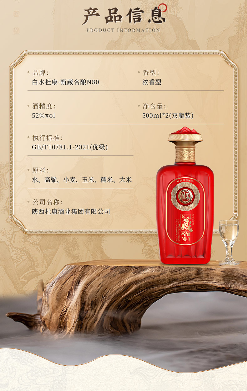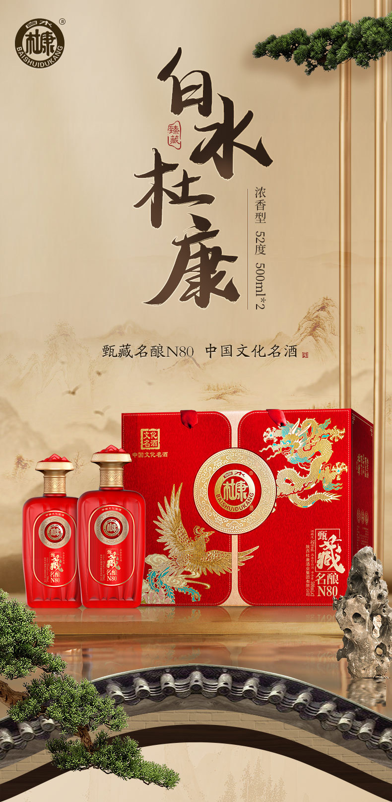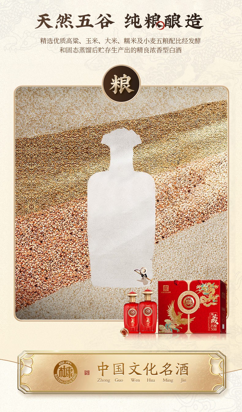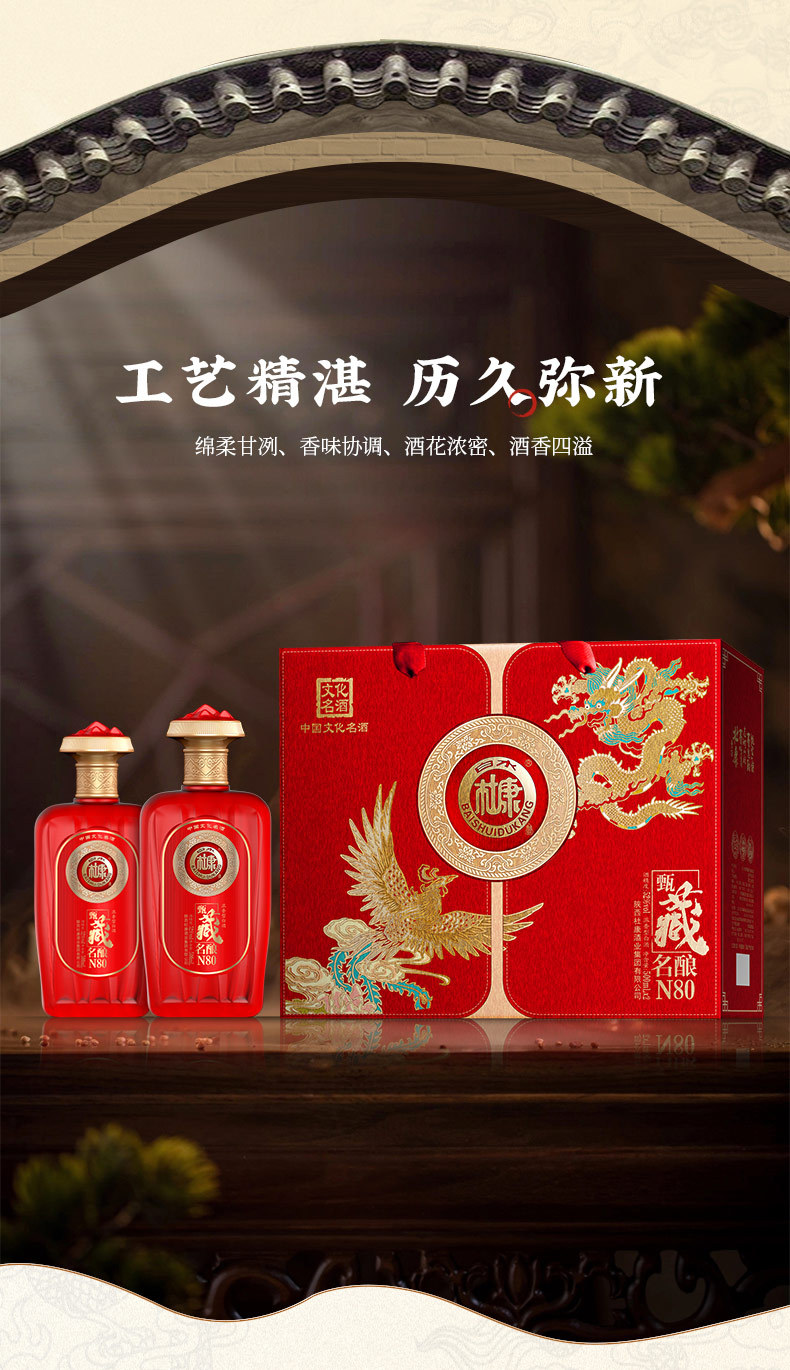 【甄选好酒❗️白水杜康甄藏名酿白酒礼盒】中华文化名酒,天然五谷,纯粮酿造!传统古法手工酿造,酒体丰满且柔和,N80浓香型白酒52度500ml*2瓶,白酒纯粮酿造喜宴酒礼盒L