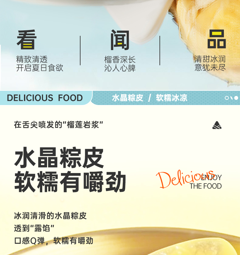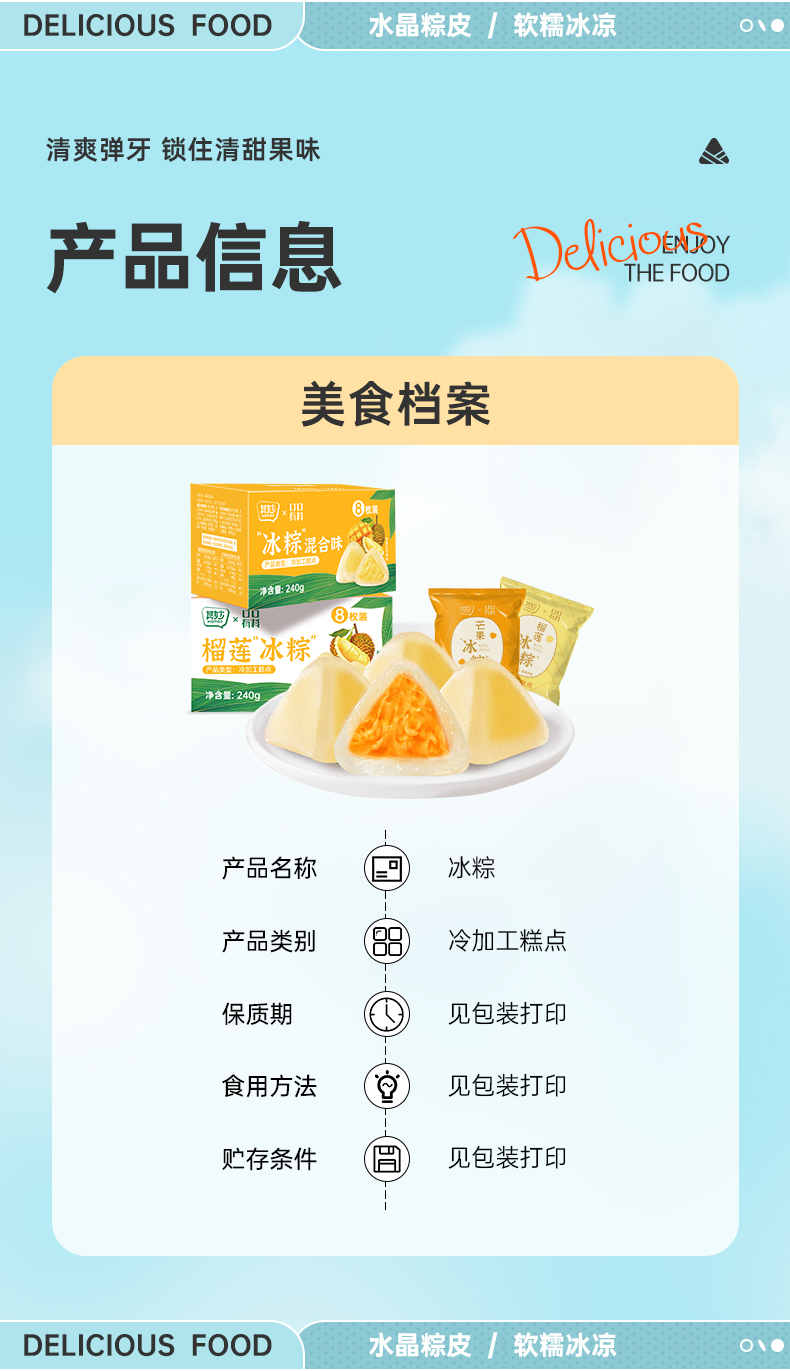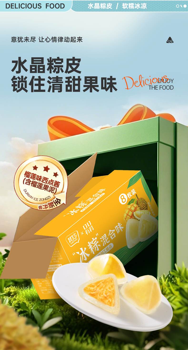 【超满足❗️榴莲芒果冰粽240g/盒】清甜冰润,爆浆+浓香,软糯Q弹,开启夏日食欲!网红榴莲味甜粽即食Q弹冰皮粽子中式糕点端午节送礼-d