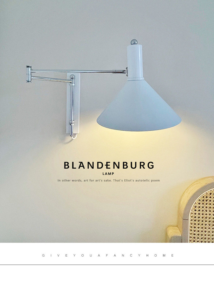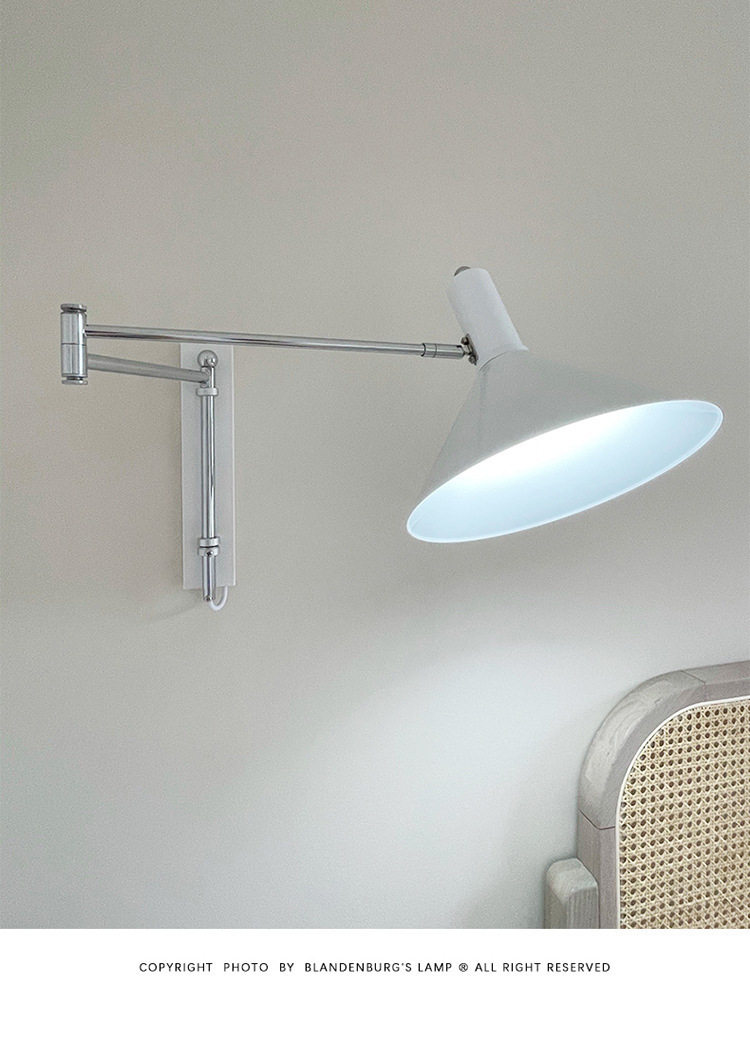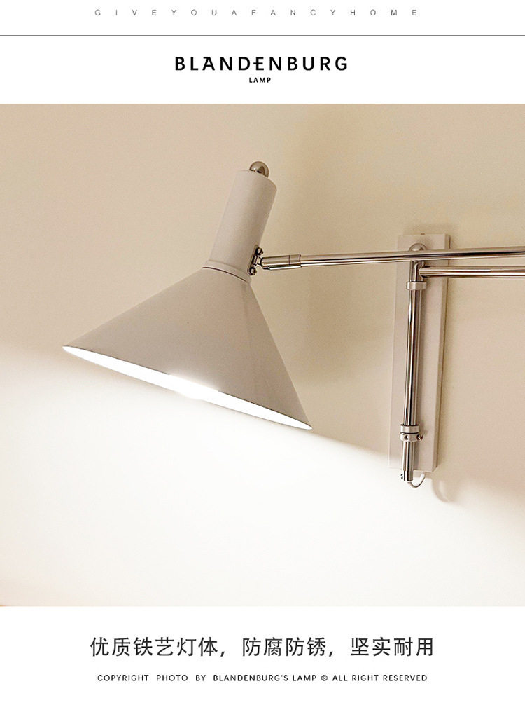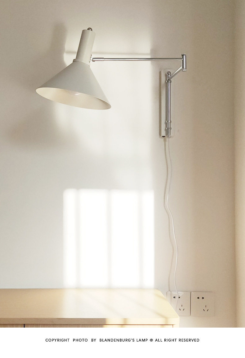 布线可折叠墙壁书房墙灯免壁灯床头红色包豪斯壁灯中古长臂摇臂