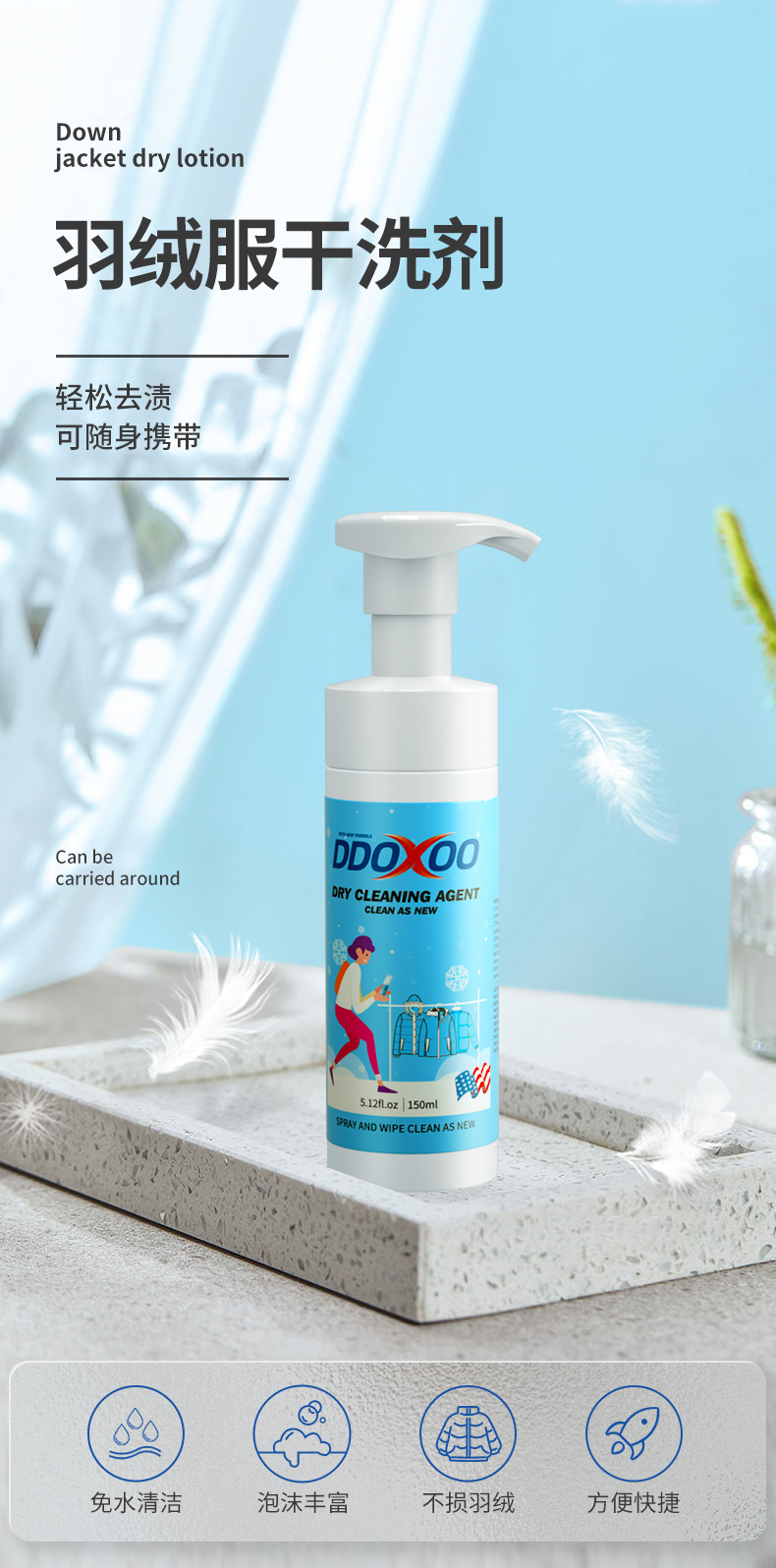 【一擦既净】DDOXOO 羽绒服干洗剂 清除顽固污渍 不伤手无残留 淡雅清香味道 小身材大容量