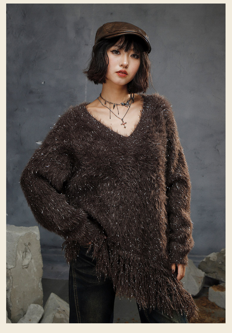纯色不规则流苏毛衣-纪念日百货门店同款165043295
