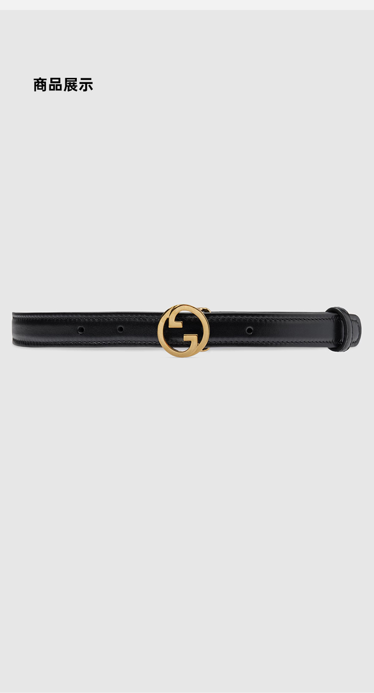 GUCCI 古驰 女士 Blondie系列 窄版皮革腰带 黑色 723073 US10G 1000