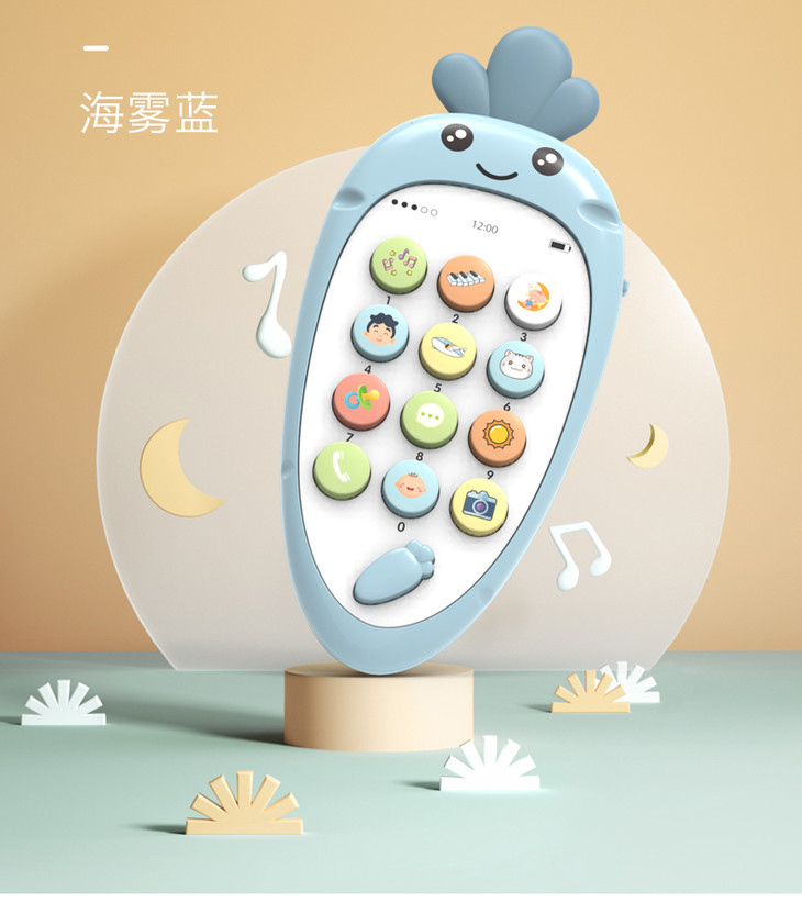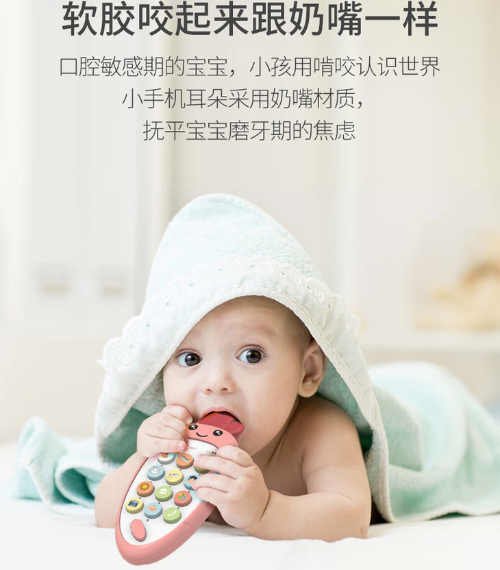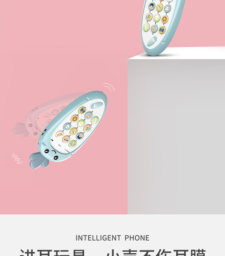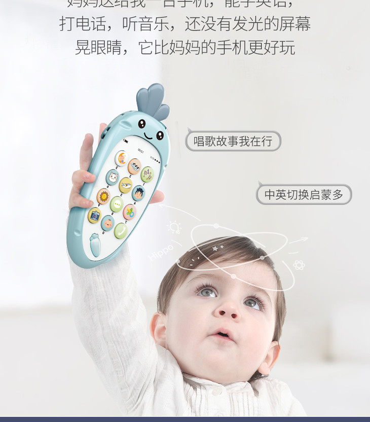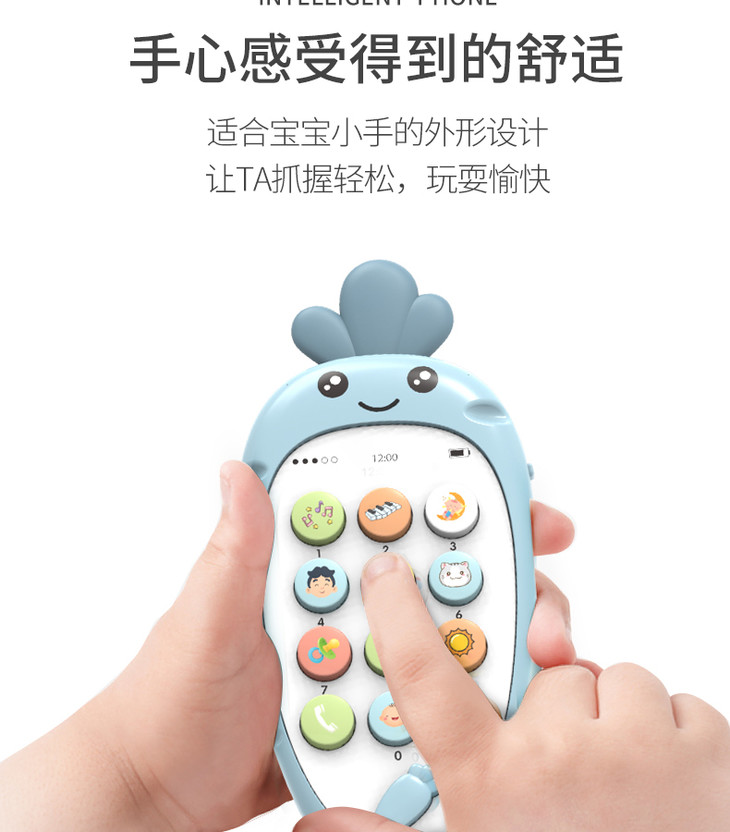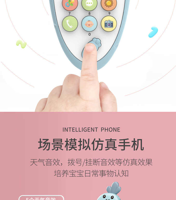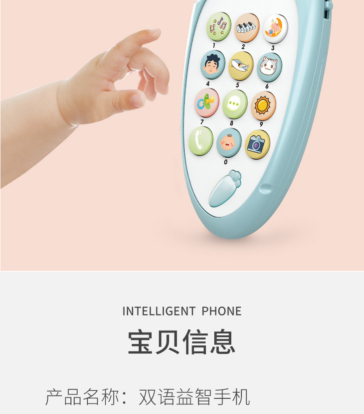 智恩堡宝宝益智早教机音乐可咬仿真电话0-1岁女孩男孩玩具 蓝色JPY带授权招加盟代理
