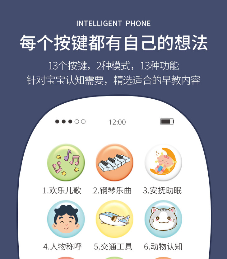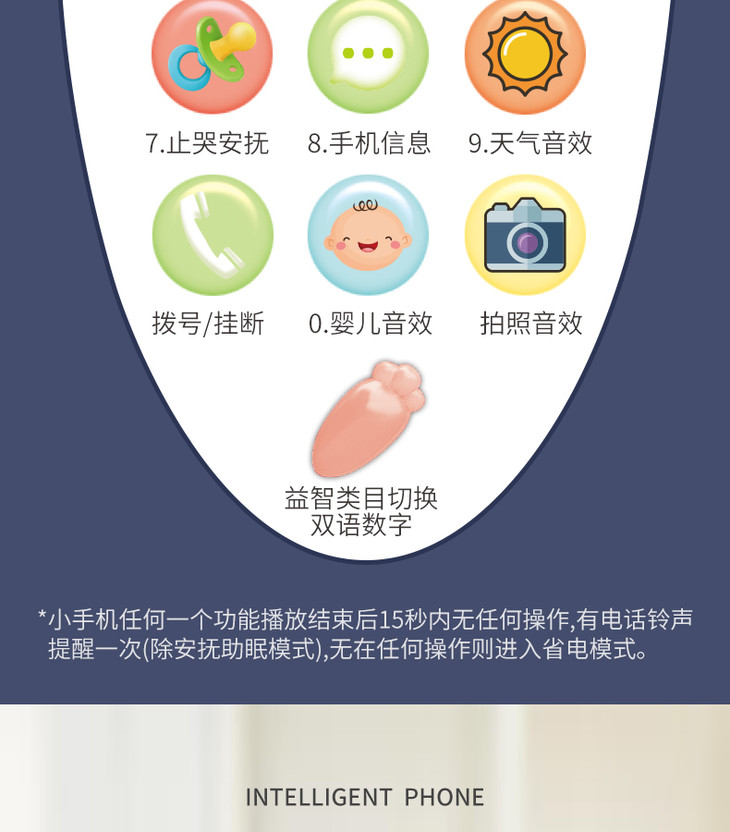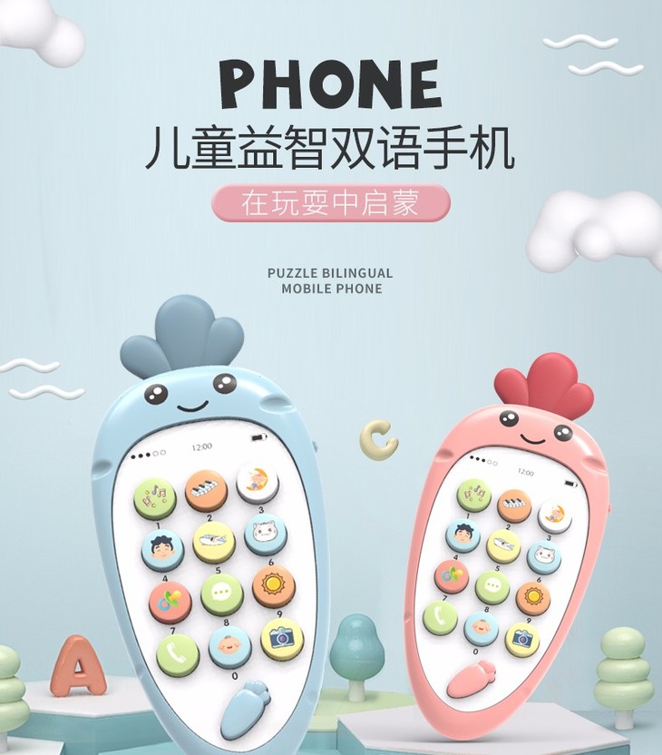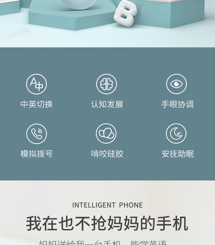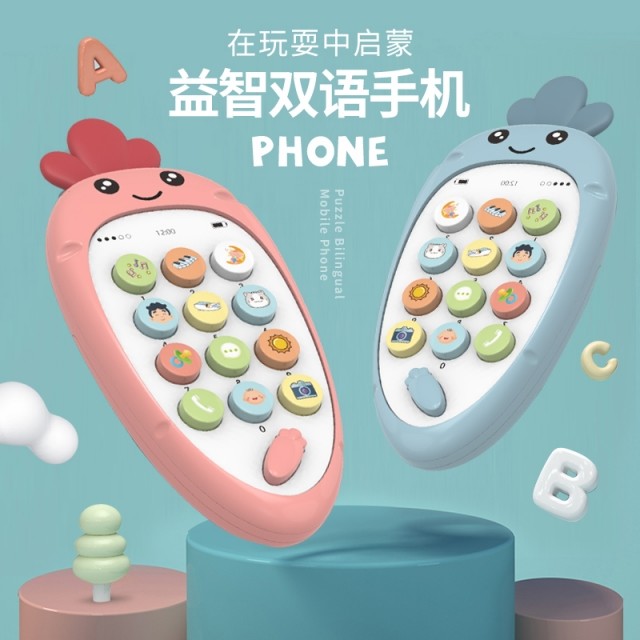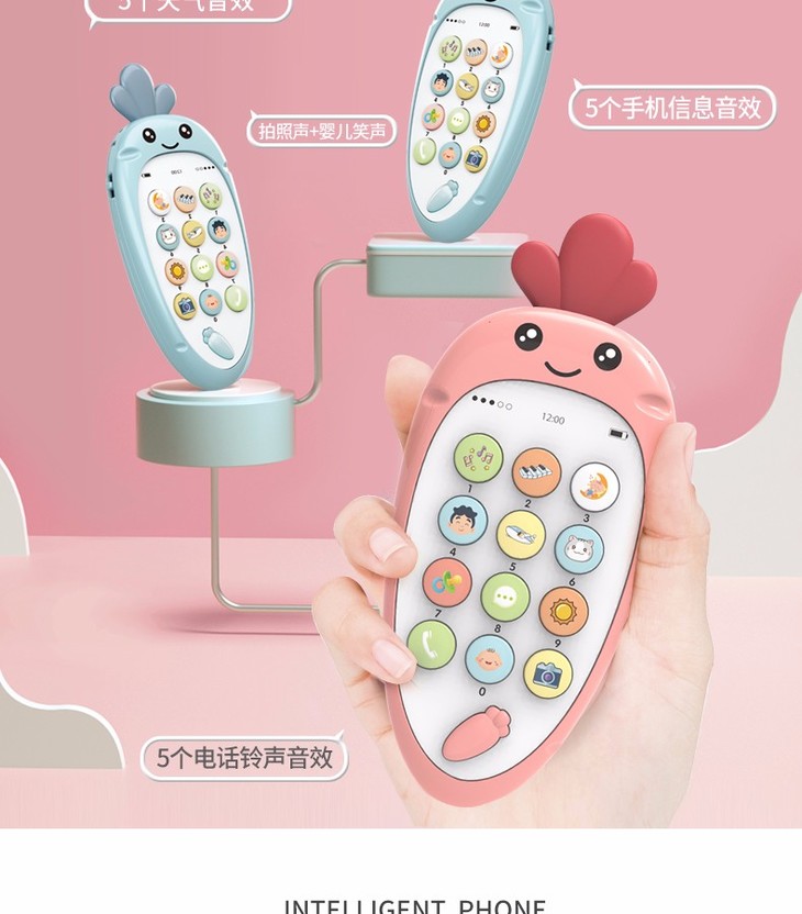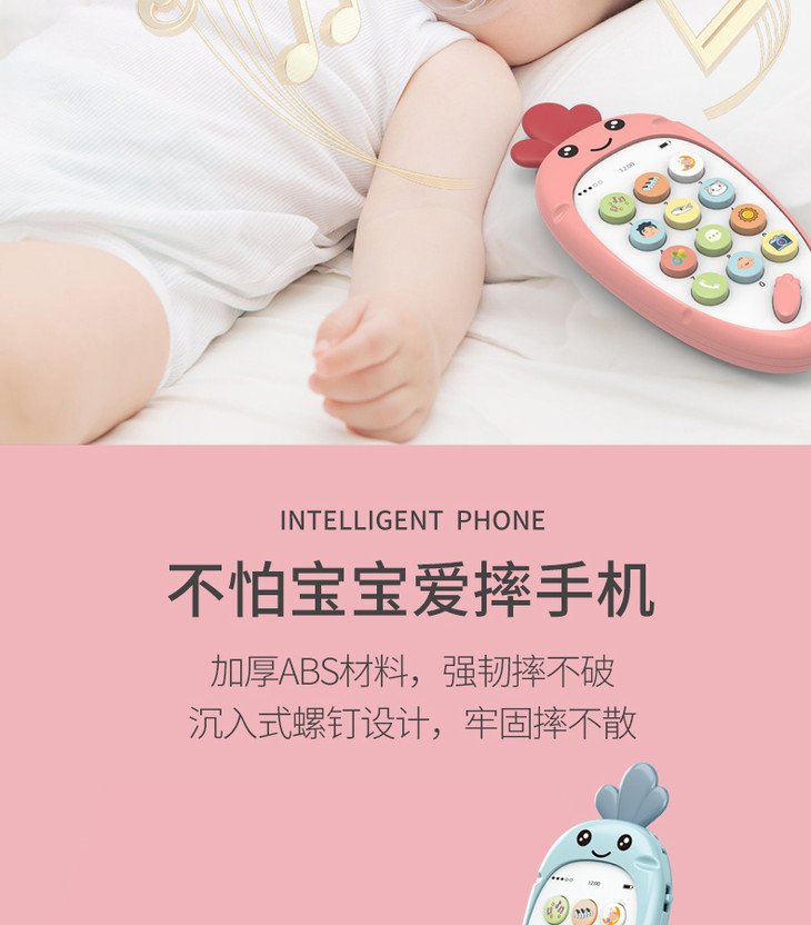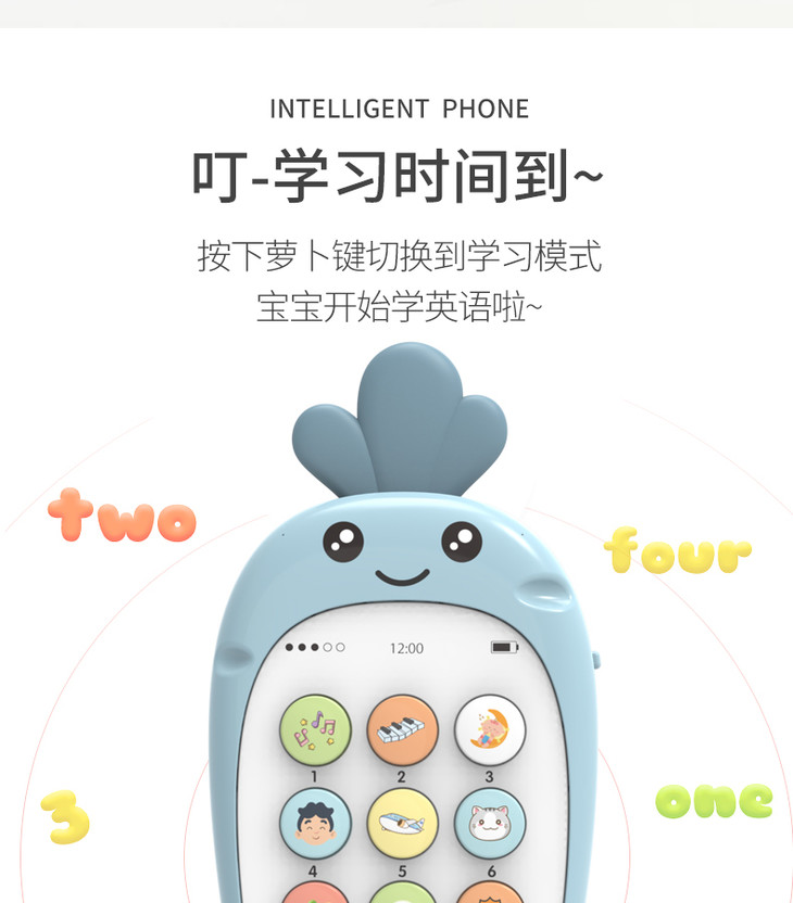 智恩堡宝宝益智早教机音乐可咬仿真电话0-1岁女孩男孩玩具 蓝色JPY带授权招加盟代理