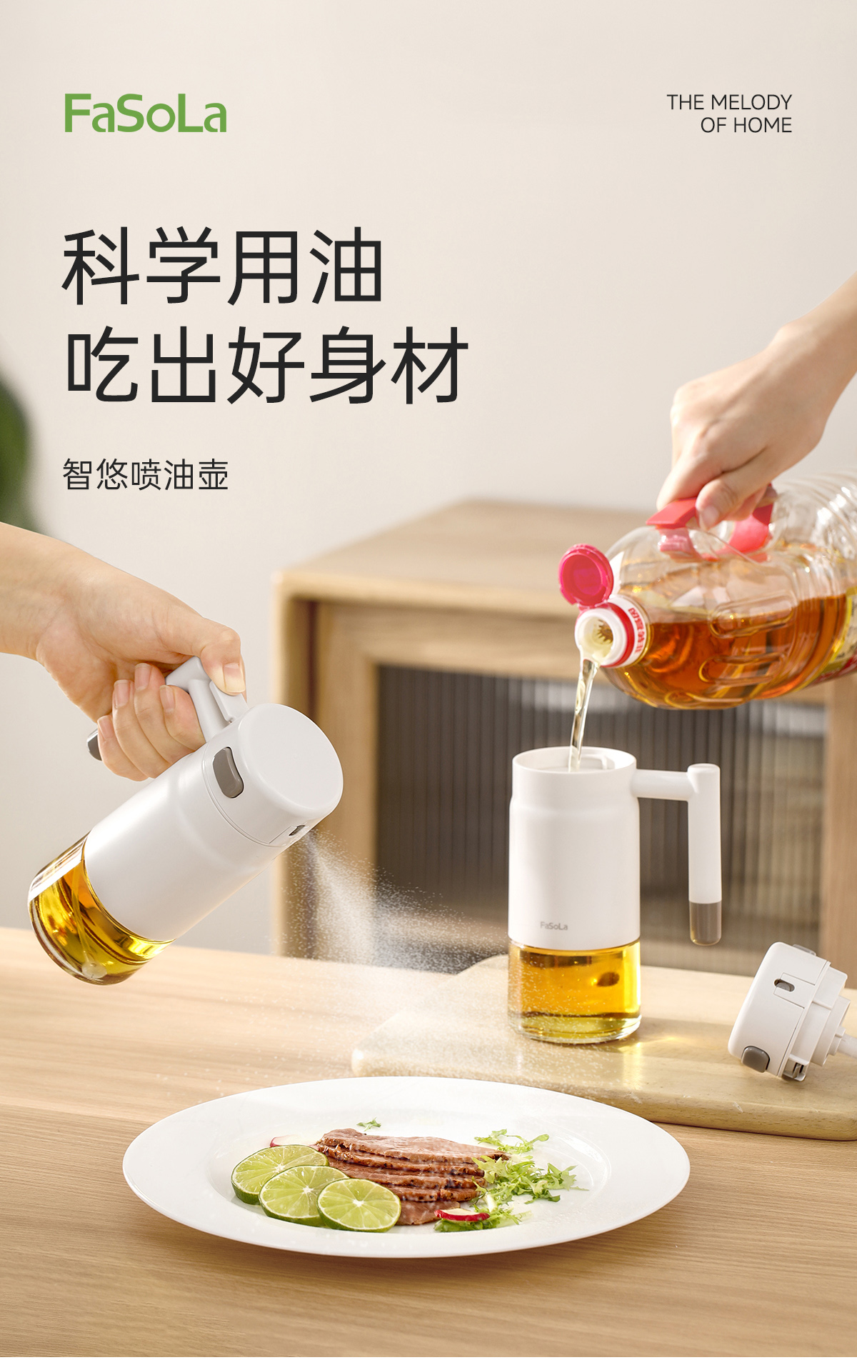 FaSoLa雾化喷壶空气炸锅油瓶玻璃瓶家用厨房食品级不挂油智悠喷油壶