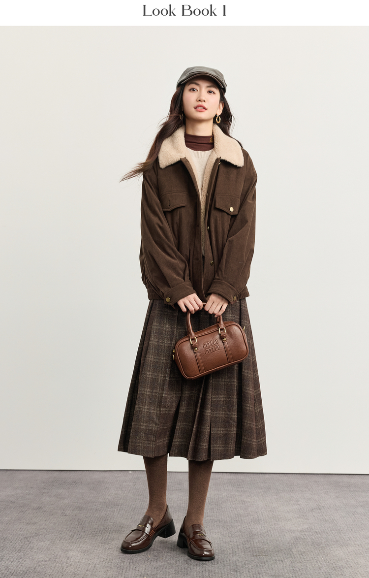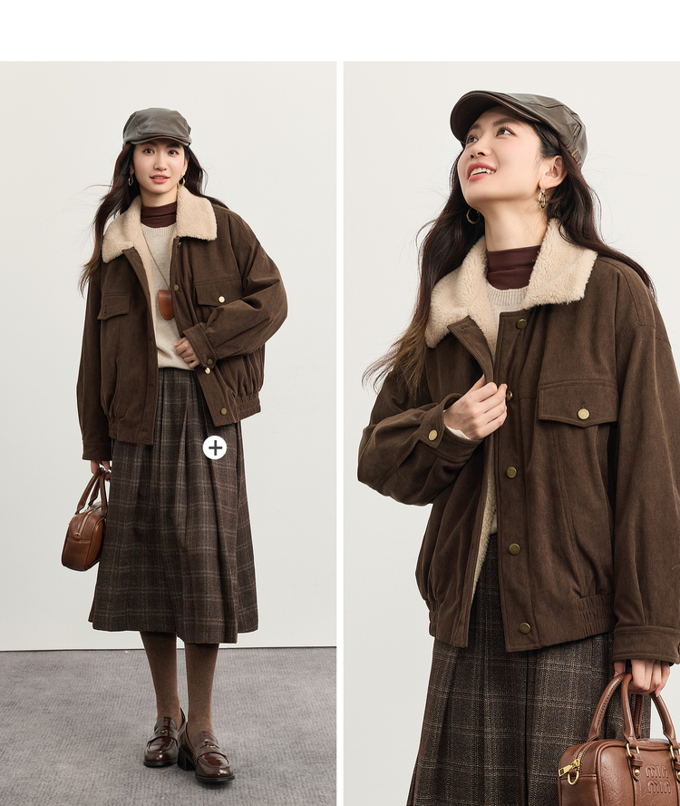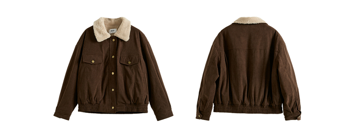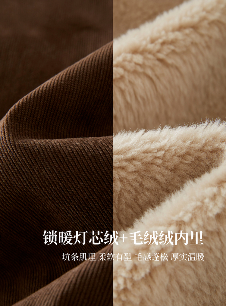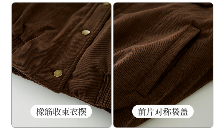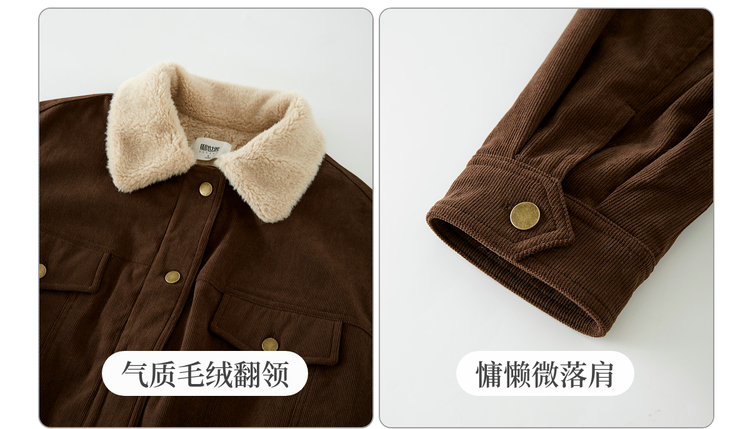 【11/5新品】熙世界灯芯绒毛领短外套女加绒加厚复古美拉德风夹克上衣2025冬季