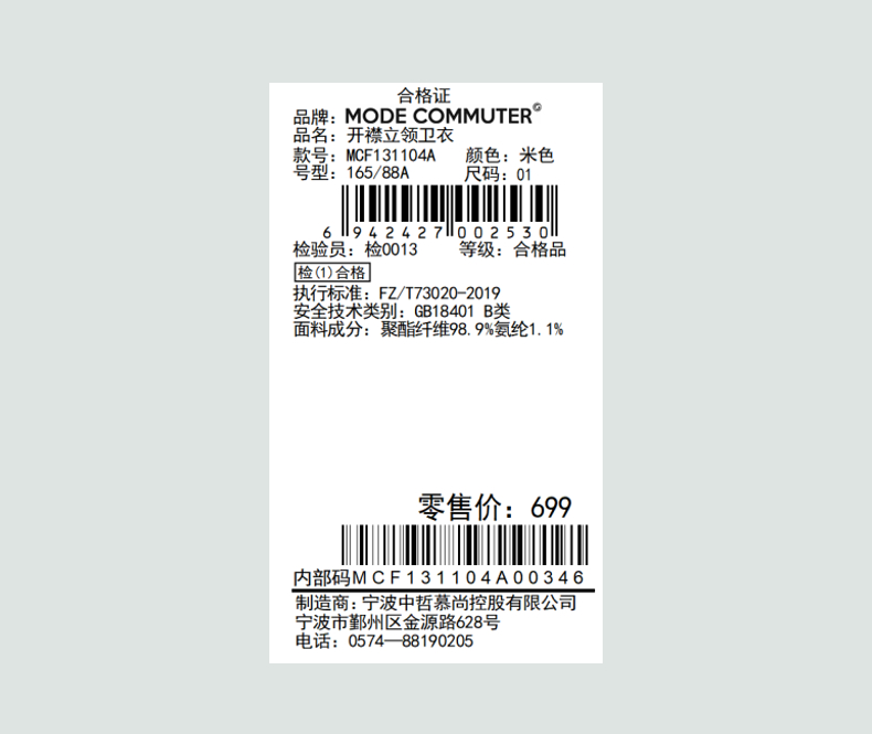 MODE COMMUTER | MC欧棉绒开襟立领卫衣MCF131104A