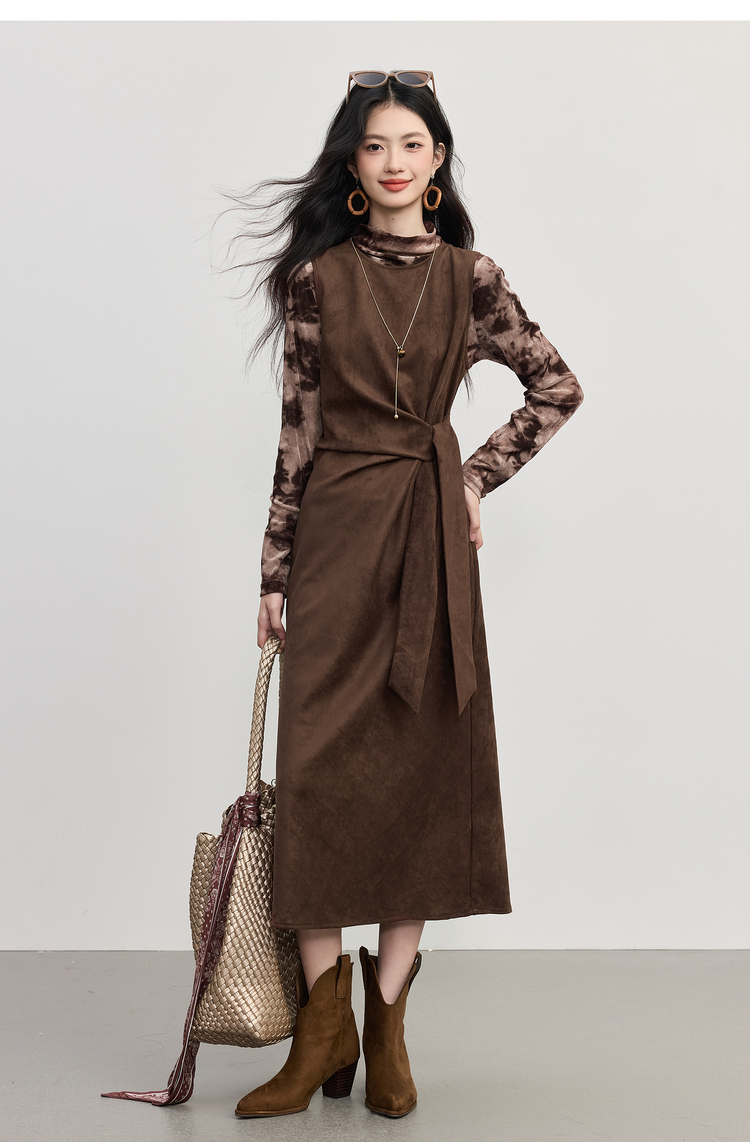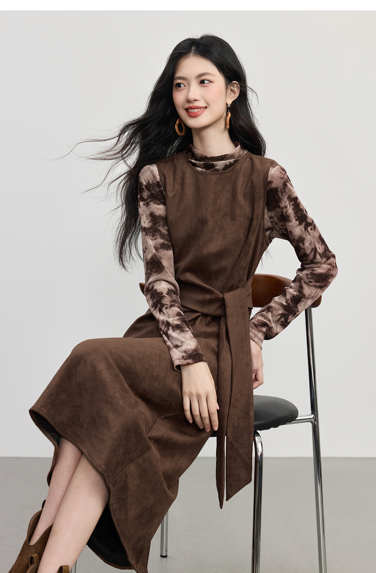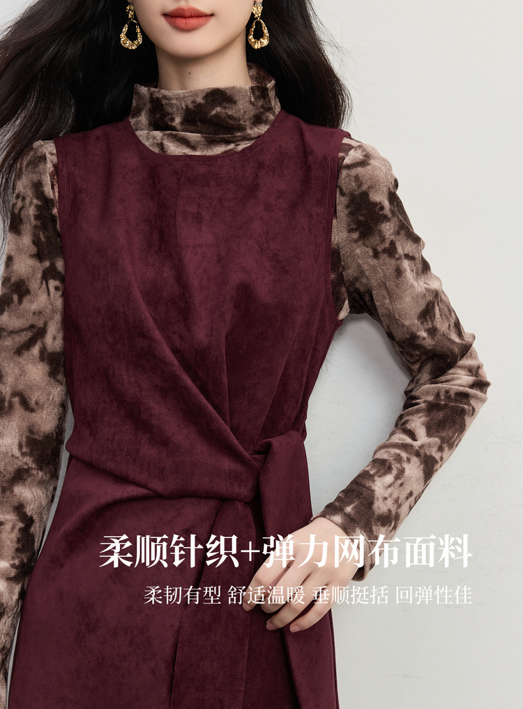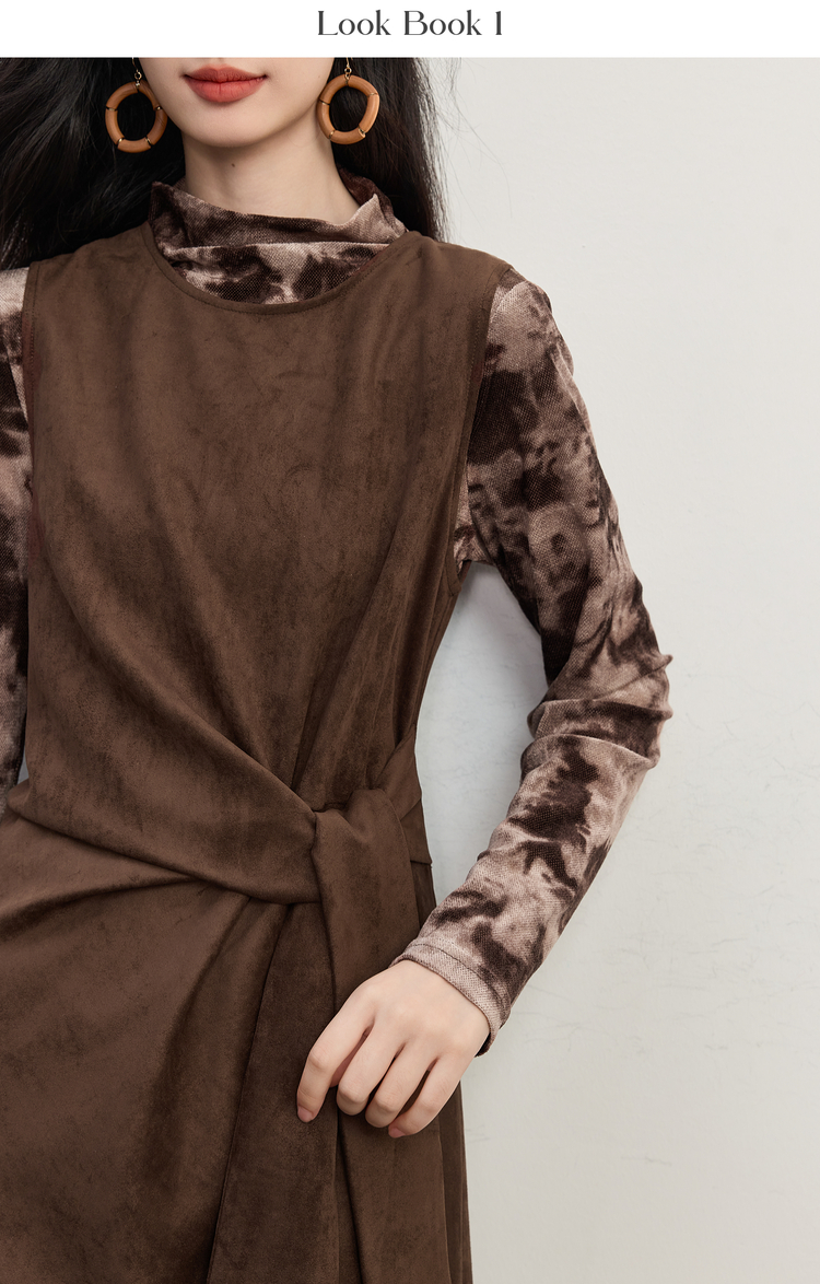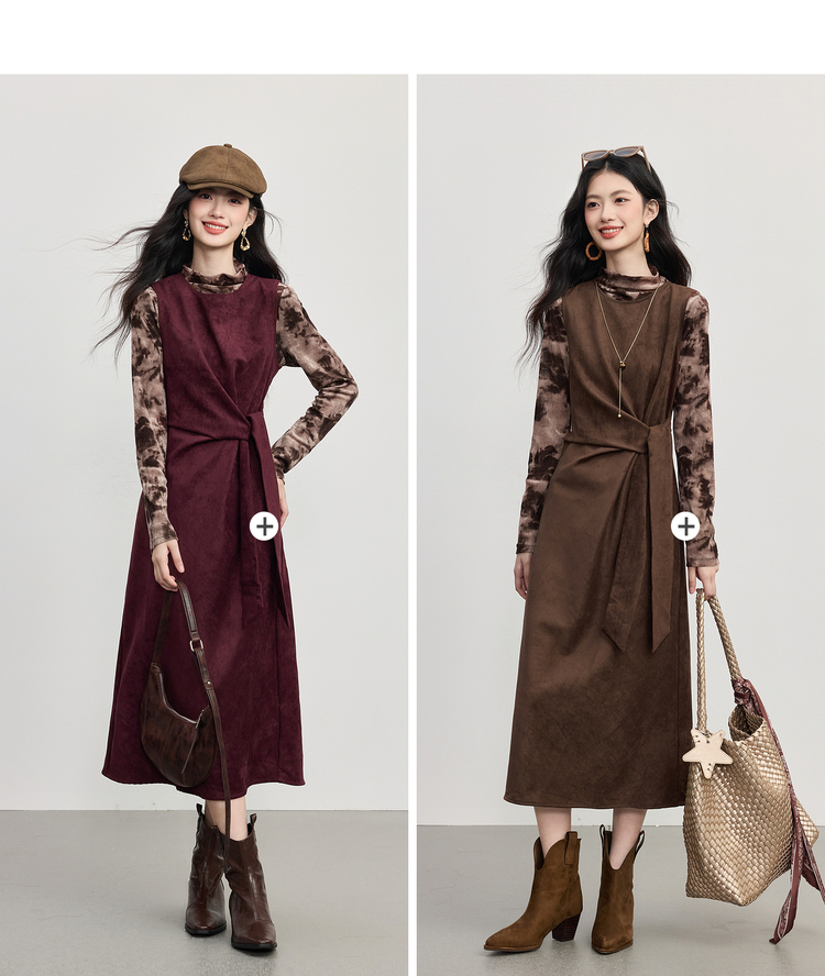 【10/29新品】熙世界轻熟风晕染打底衫无袖背心连衣裙套装女2025秋天一整套穿搭