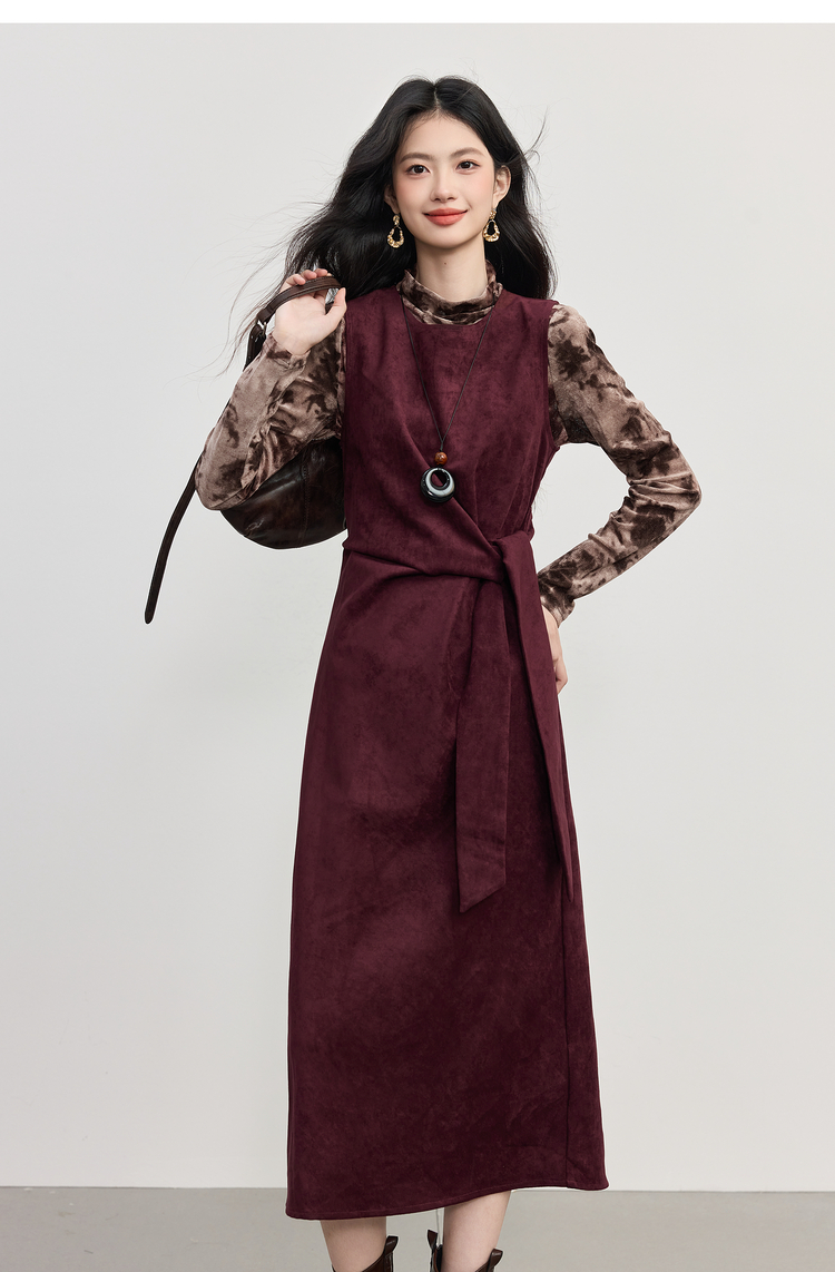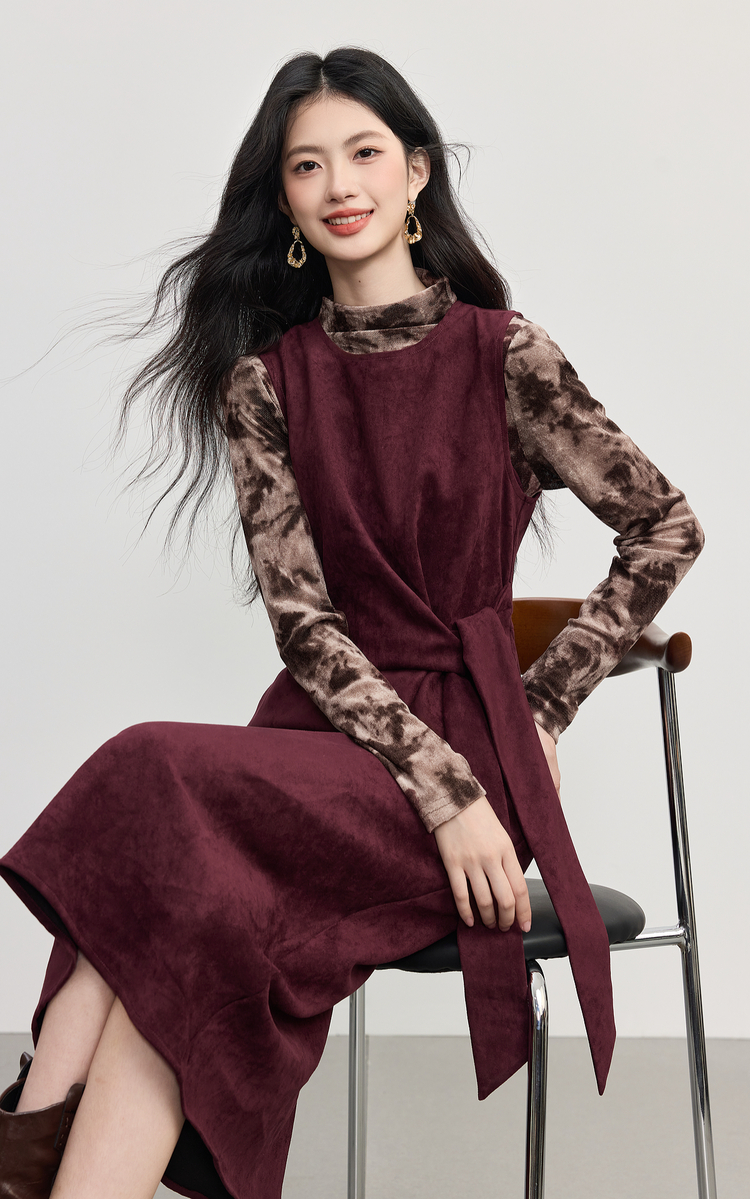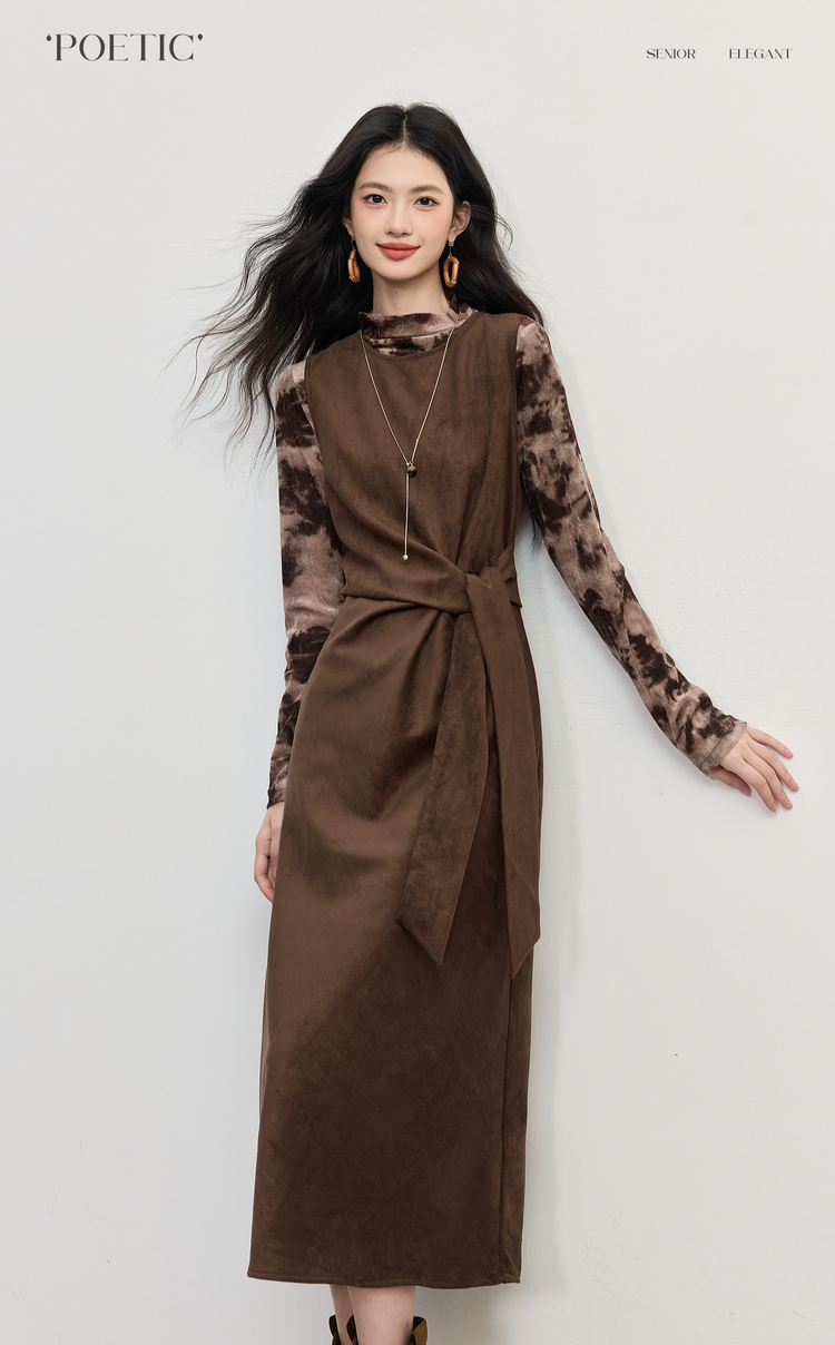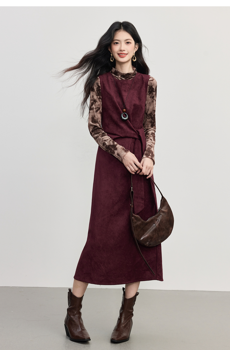 【10/29新品】熙世界轻熟风晕染打底衫无袖背心连衣裙套装女2025秋天一整套穿搭