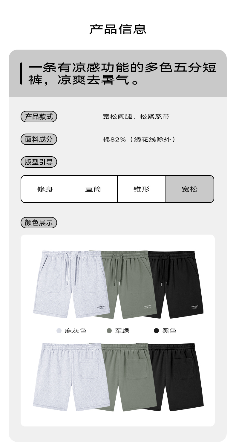 GXG男装 短裤男凉感舒适宽松字母绣花 夏季热卖短裤