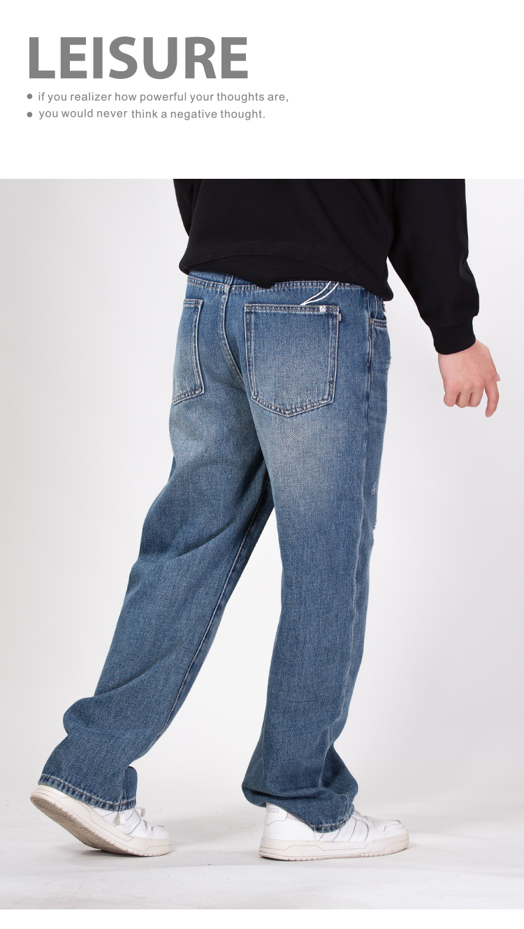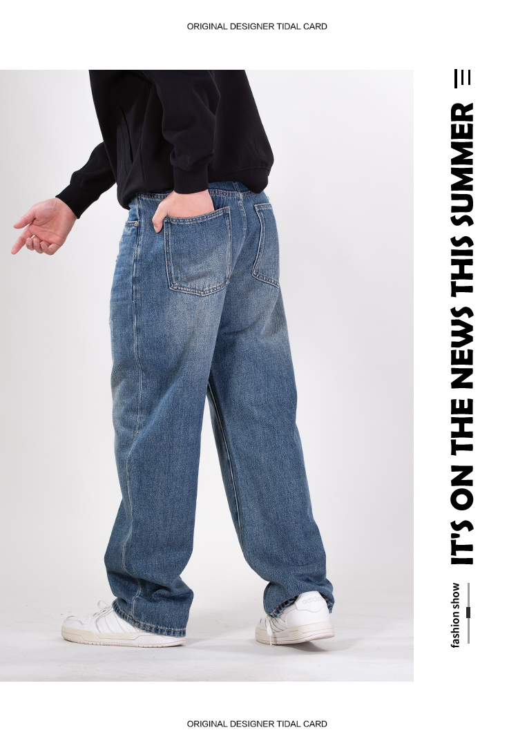 DRONKOO 2025 半松紧腰表袋压角钉扣织唛中厚牛仔长裤