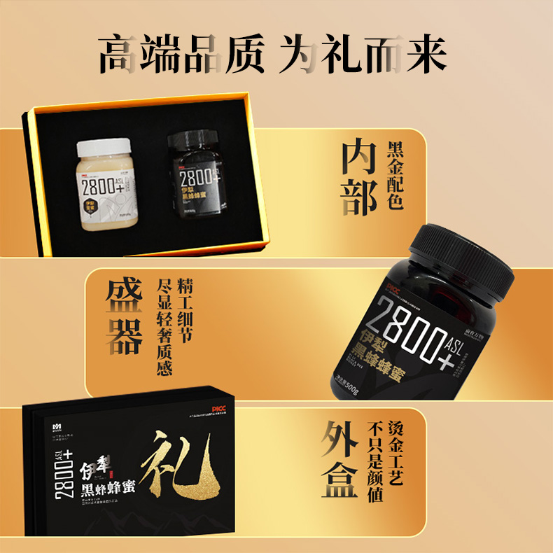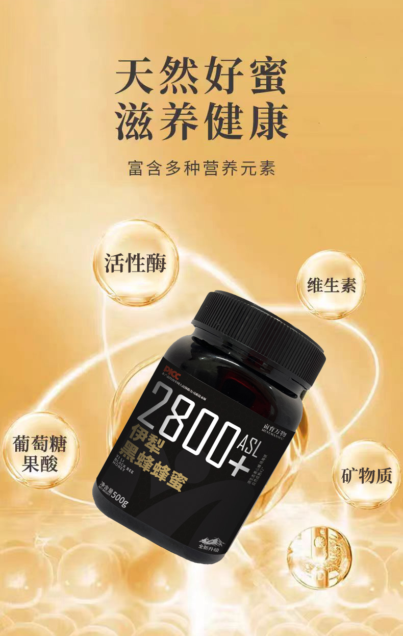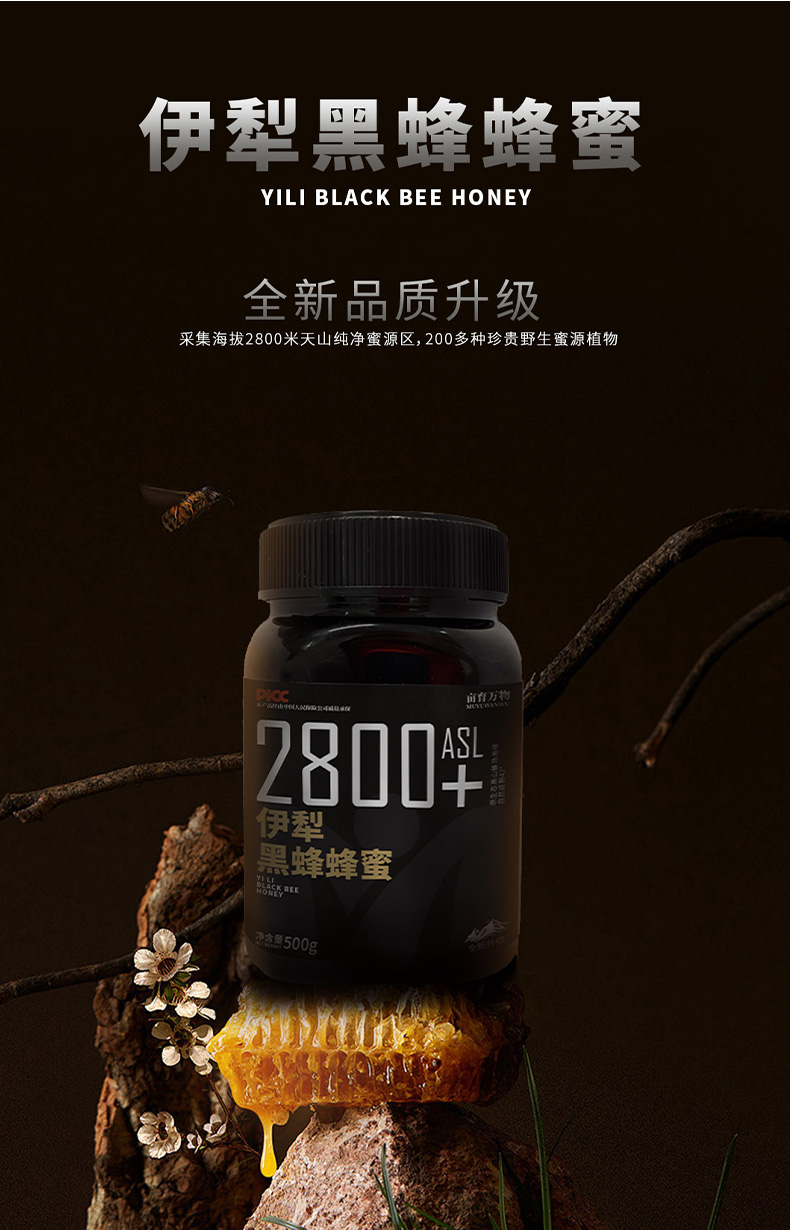 新疆伊犁蜂蜜礼盒 黑蜂蜂蜜500g雪蜜500g原生态 0添加0污染 自然成熟原蜜 助农扶贫产品 亩育万物