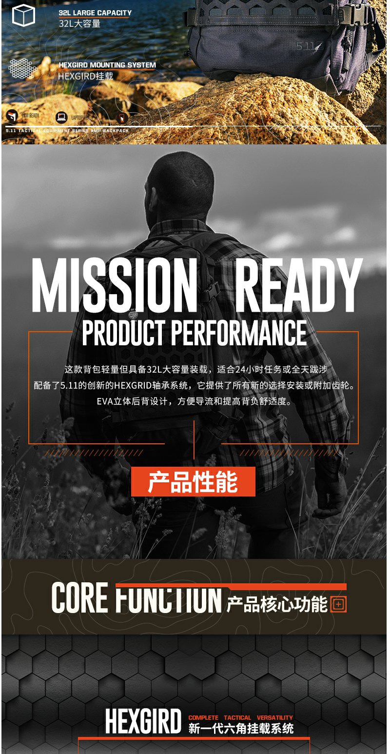 5.11军迷背包 511新品AMP24小时背包户外战术双肩包作训包 56393