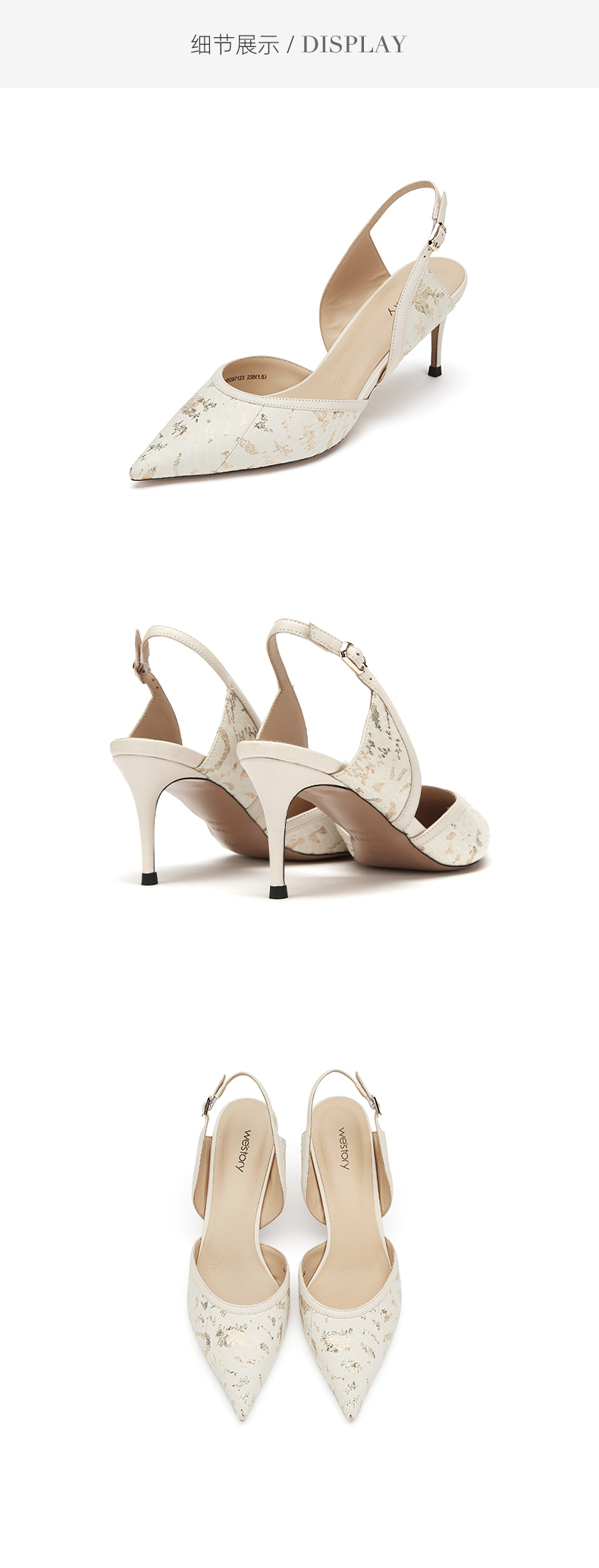 westory女鞋2021夏季新款漆皮尖头高跟鞋细跟包头凉鞋W21AH52971