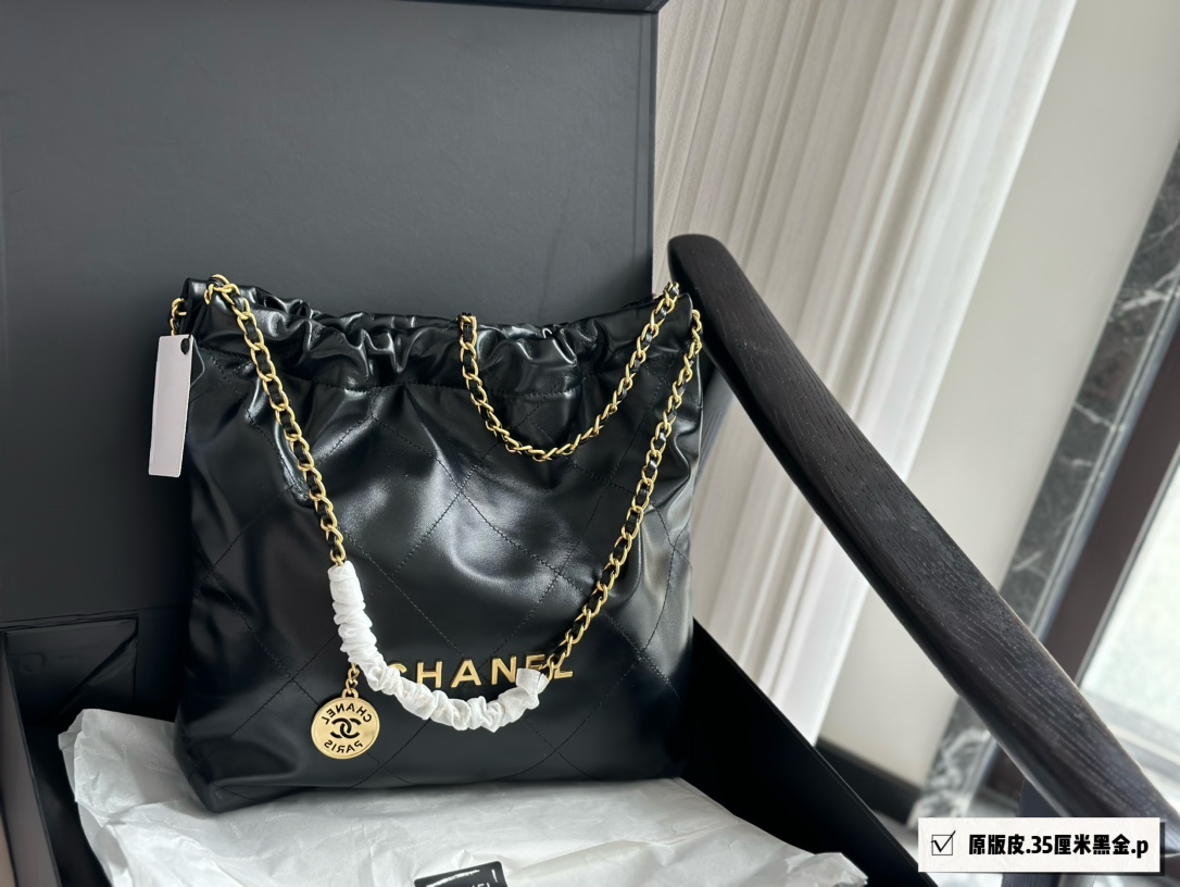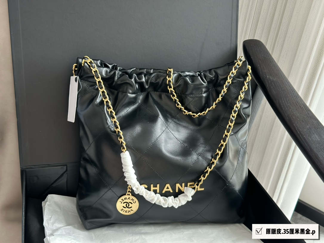 顶级免税版 VIP专柜体验 收到即官网同样 CHANEL 22 bag手袋 黑金小号 满满的复古情怀,松松垮垮的慵懒感 很爱很爱!!