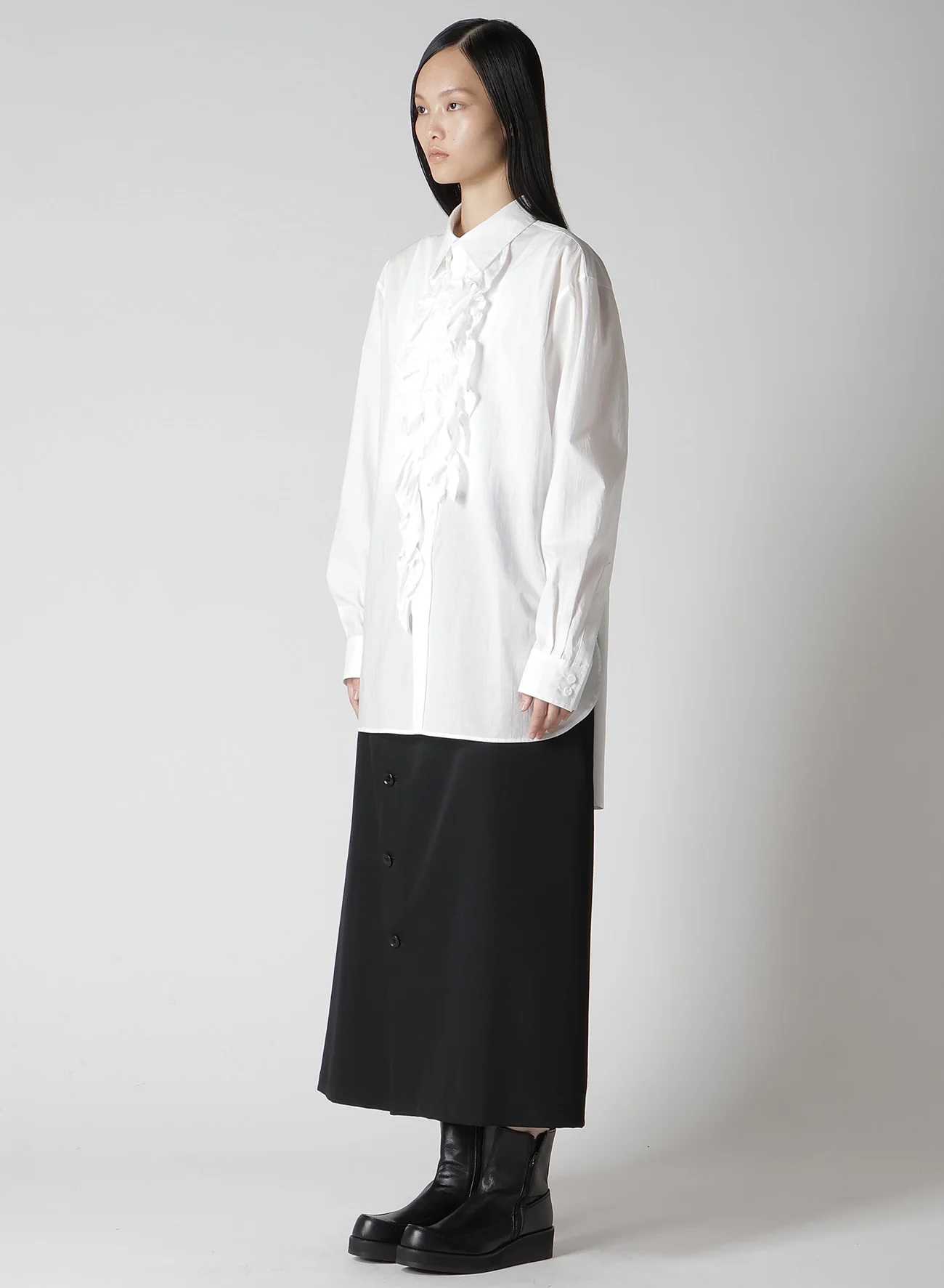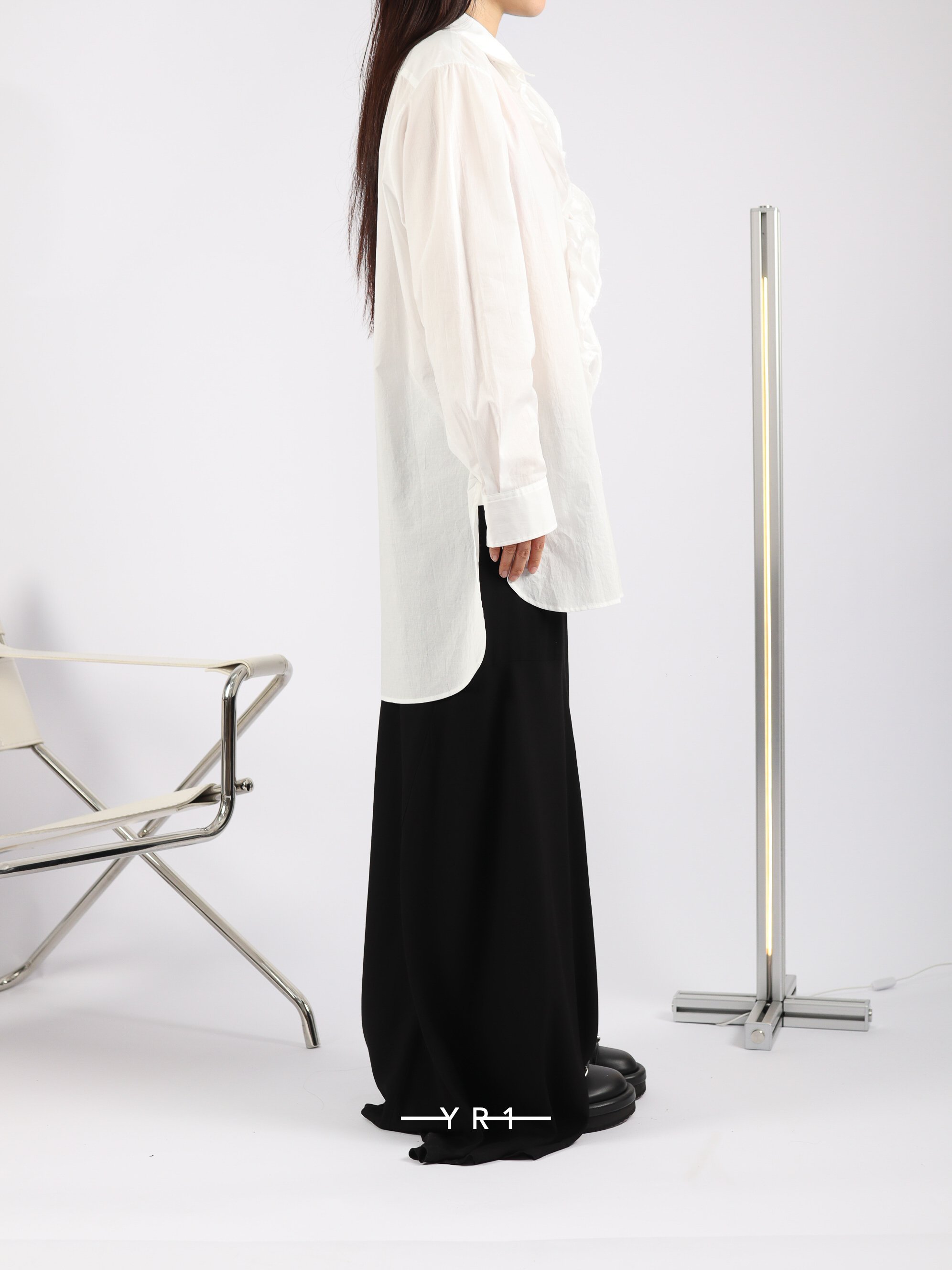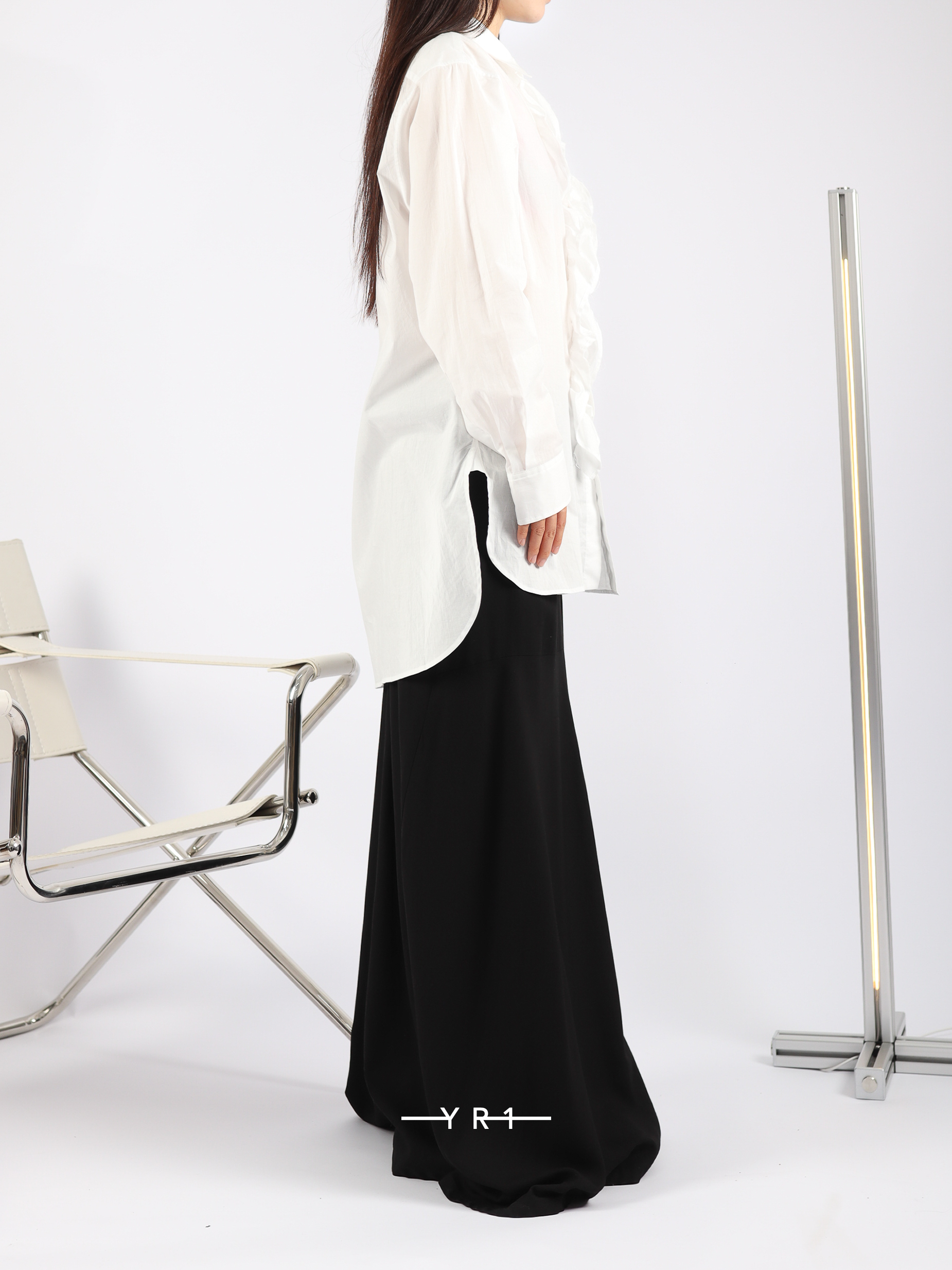 这款衬衫胸前饰有醒目的荷叶边,采用珍稀的超长埃及棉精制而成,质地柔软细腻。它与夹克完美搭配,使荷叶边优雅地凸显出来。面料的微妙光泽确保了其高档的外观,却又不会显得过于休闲,适合各种风格。