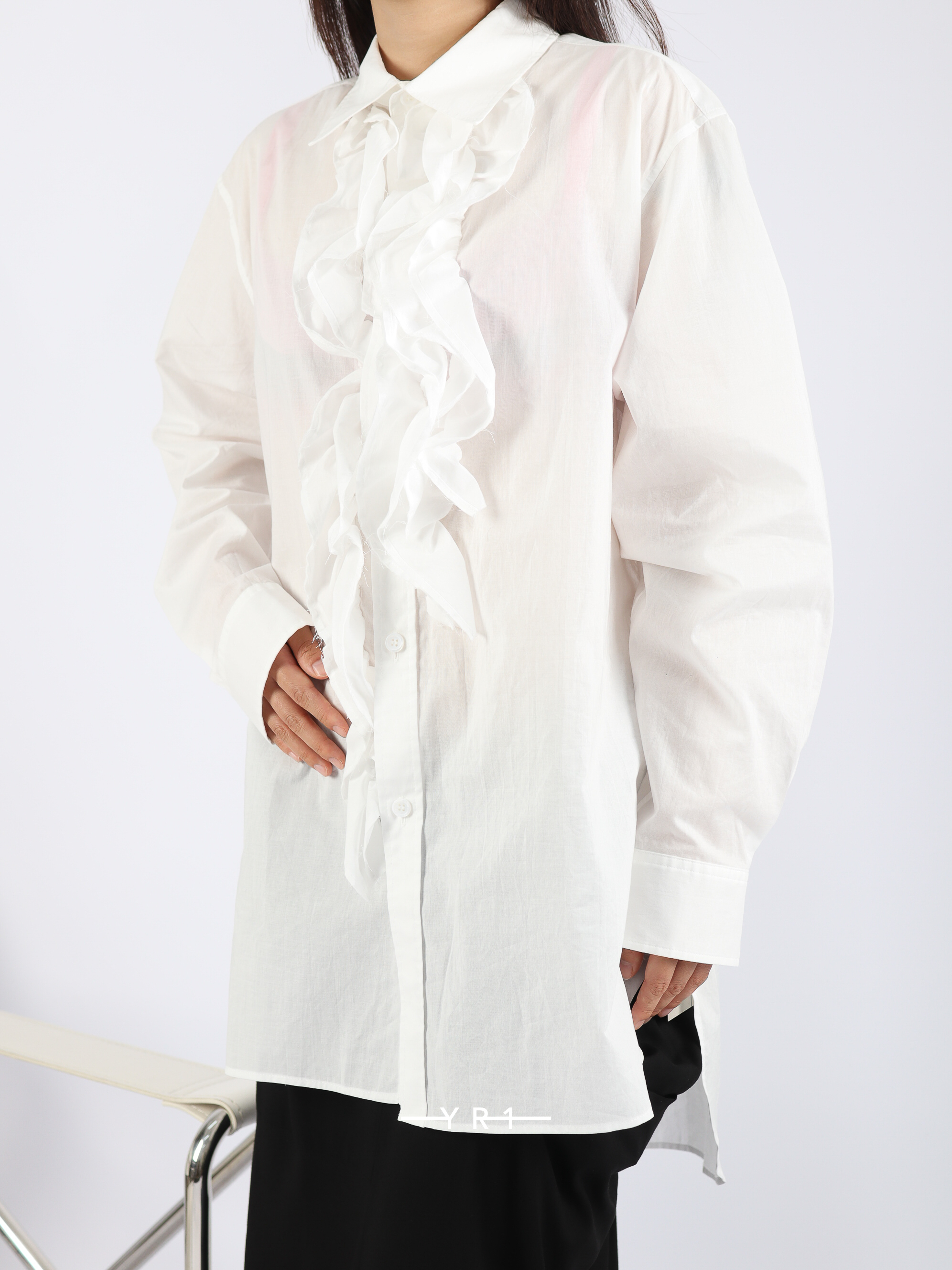 纯棉毛边荷叶边衬衫