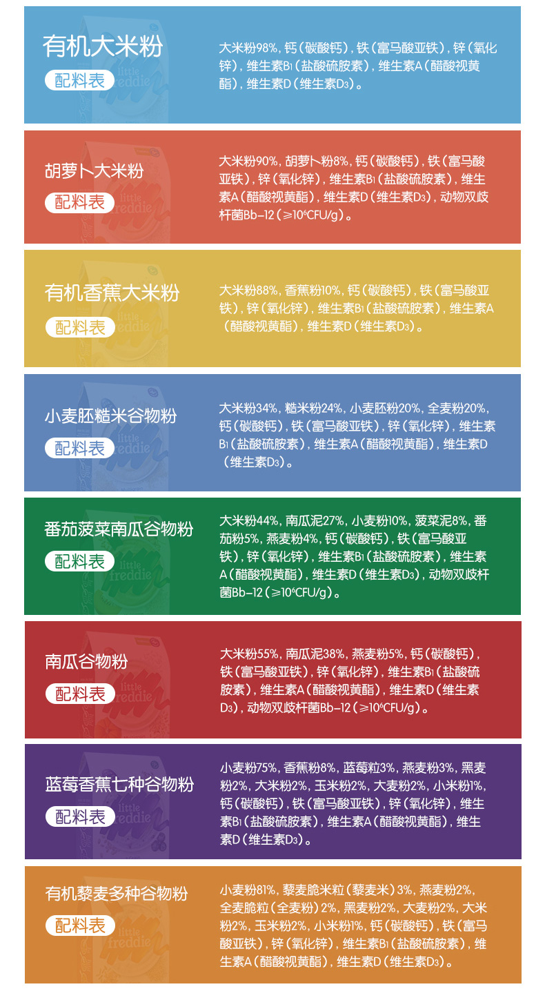 英国Little Freddie小皮 婴幼儿大米粉160g 小麦胡萝卜番茄香蕉藜麦谷物粉宝宝辅食婴儿米糊