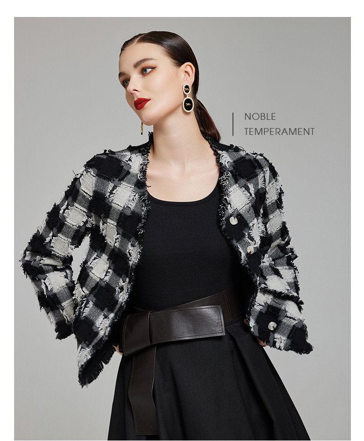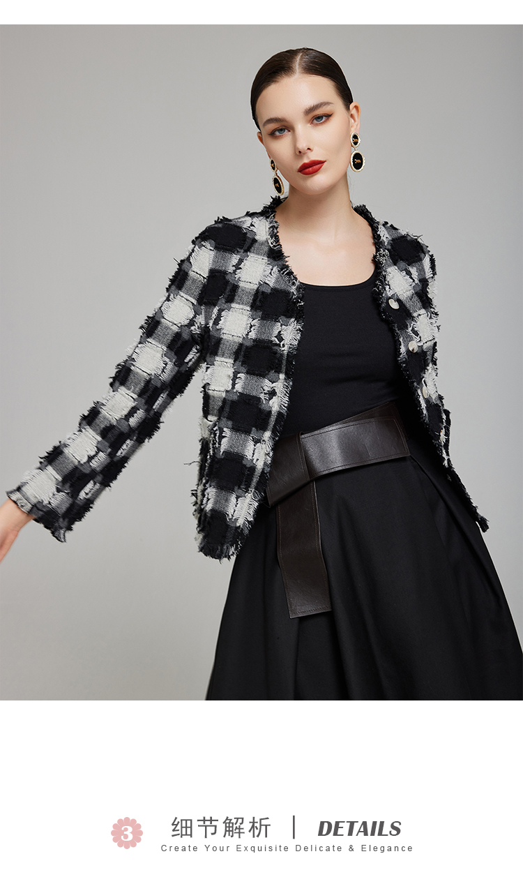 NH905斯尔丽2023秋冬新款宽松设计感圆领单排小个子上衣羊毛大衣