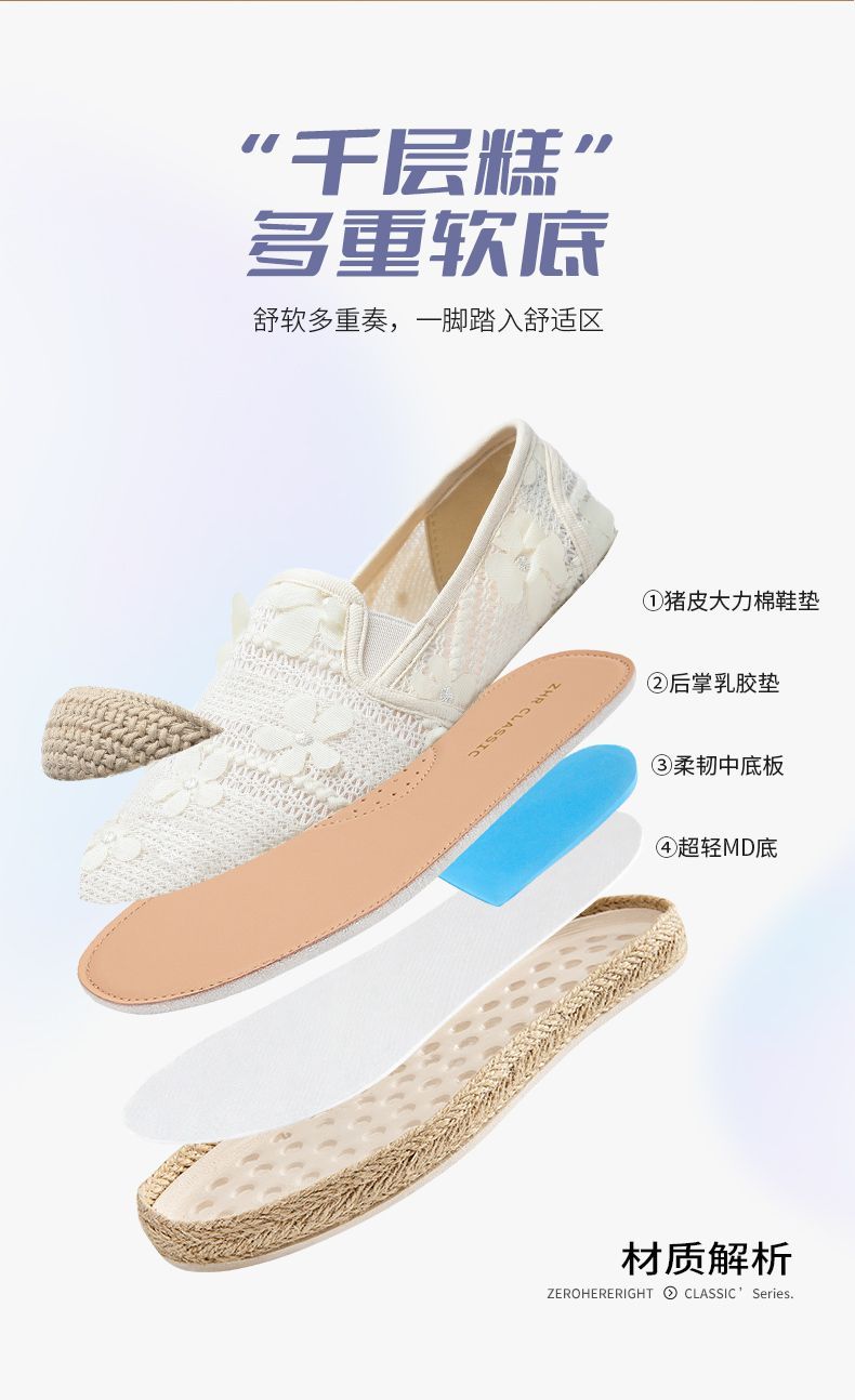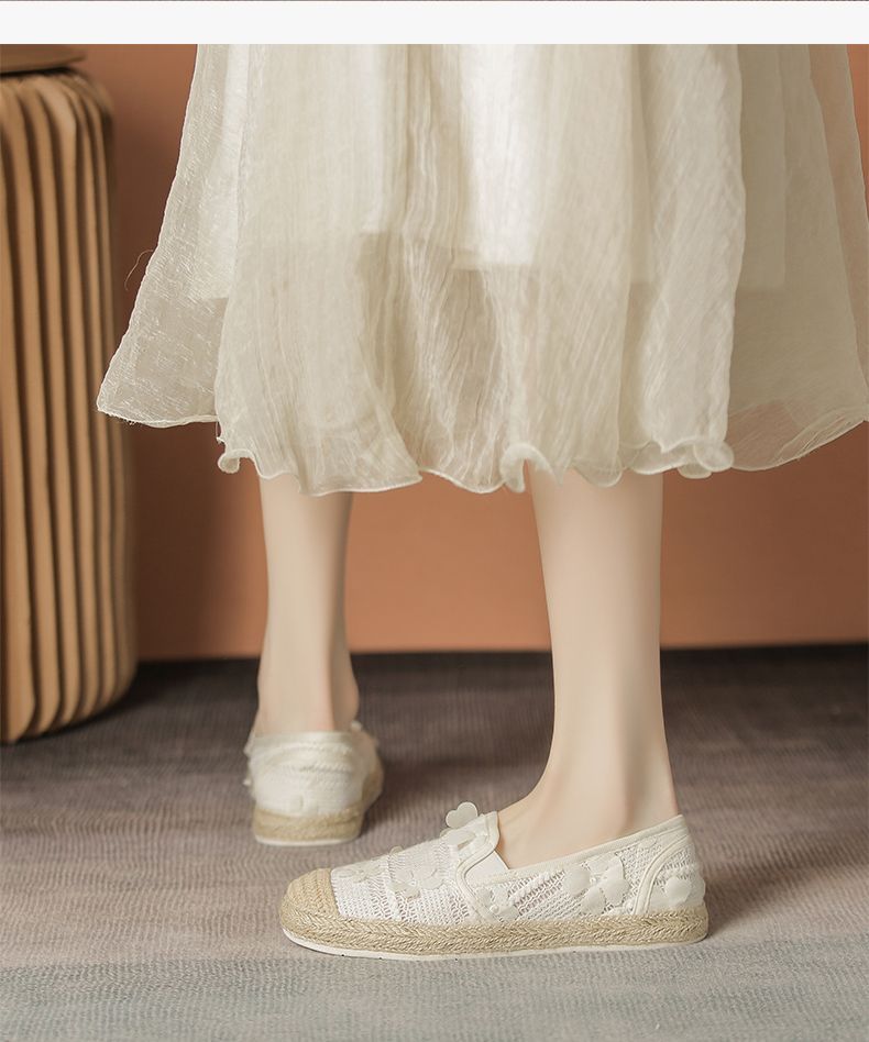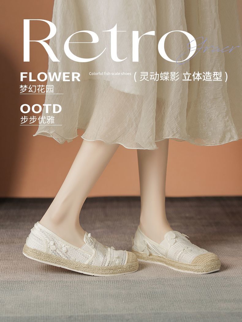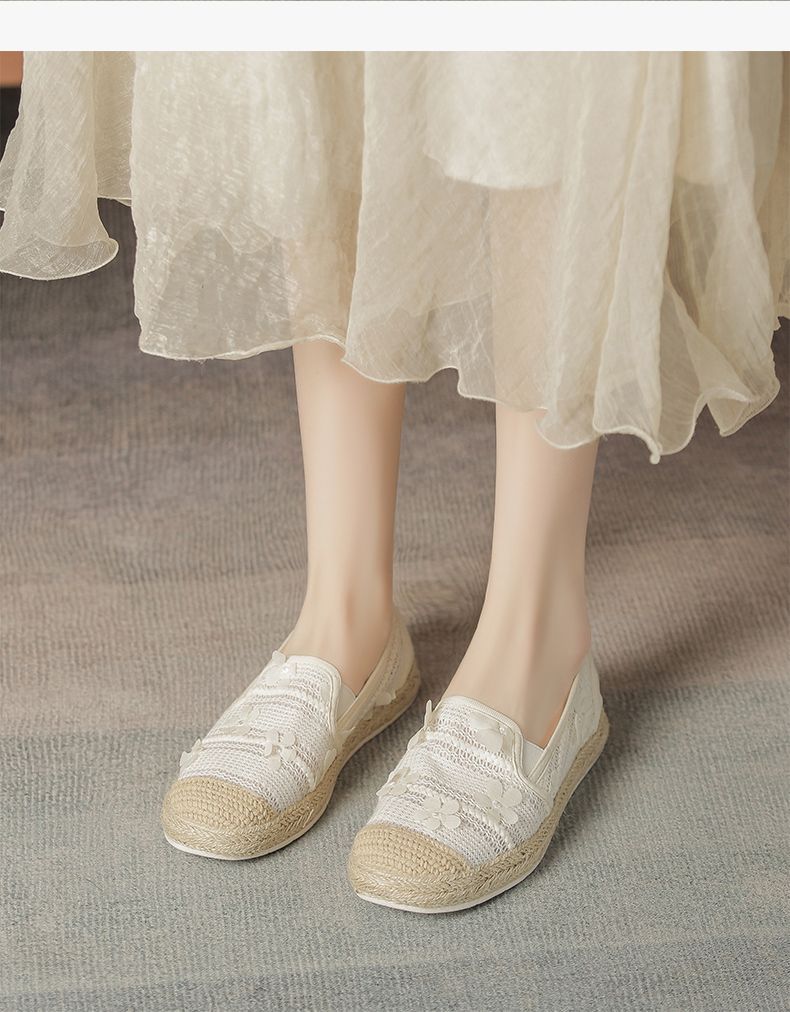 ZHR则则2025新款蕾丝透气软底ins一脚蹬单鞋时尚透气懒人女渔夫鞋