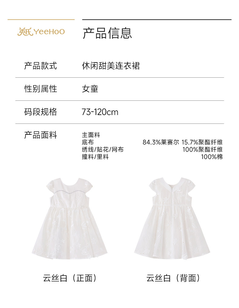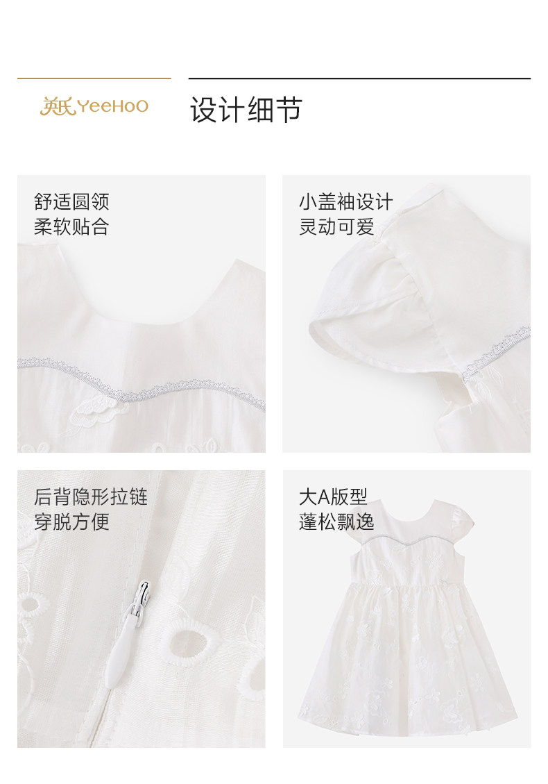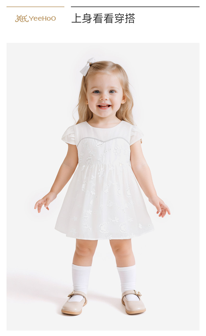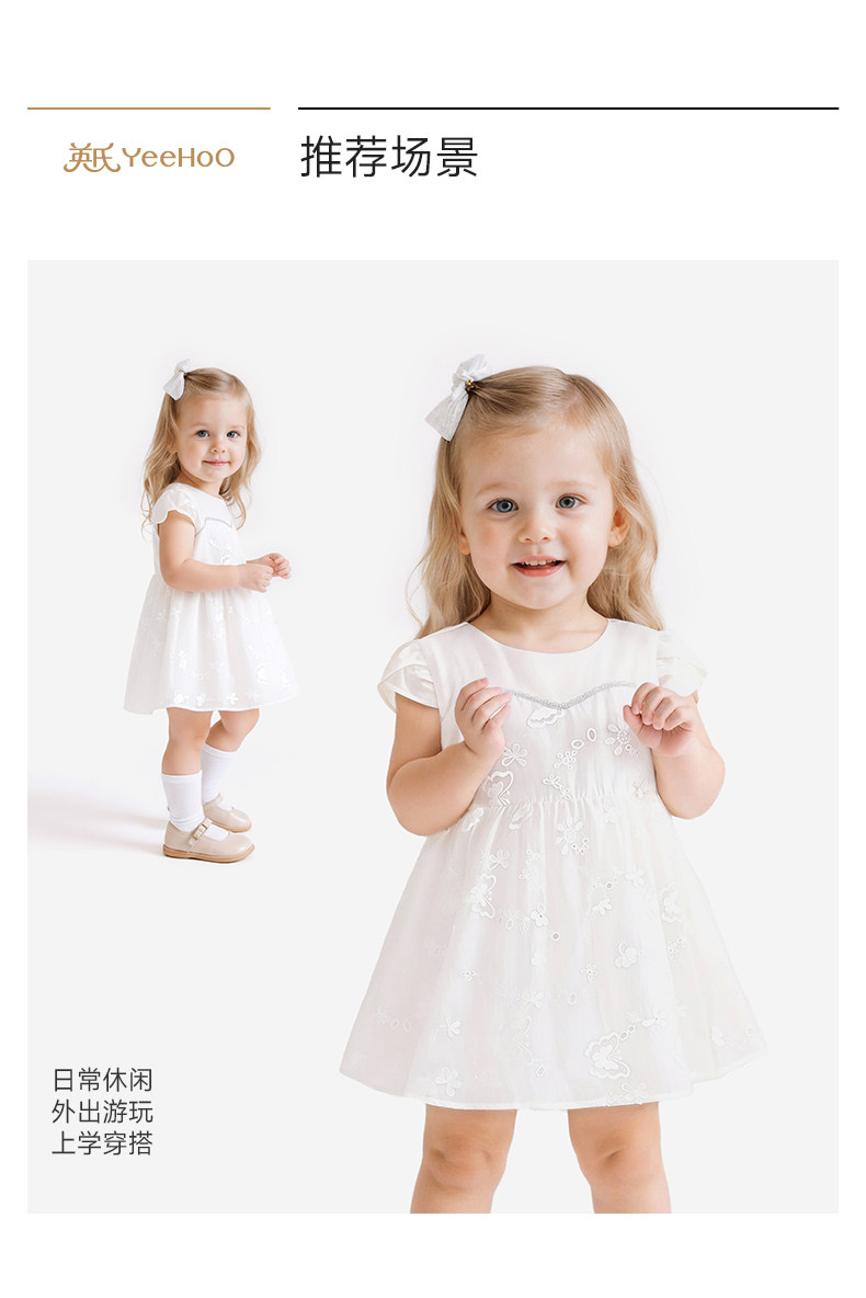 英氏女童裙子夏季新款公主裙甜美小白裙女宝宝连衣裙YRLCJ2S014A