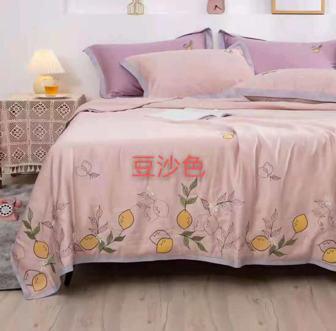 卖点:天丝面料,吸湿透气,手感顺滑舒适,具有良好的透气性透湿性,面料添加柠檬VC,散发淡淡的柠檬香味,给肌肤随时随地补充VC,提高人体免疫力。