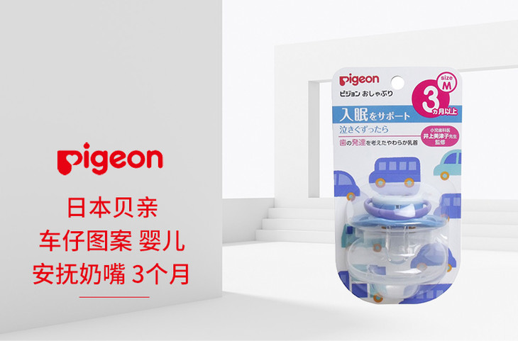 【一般贸易】日本Pigeon/贝亲 车仔图案 婴儿安抚奶嘴 3个月